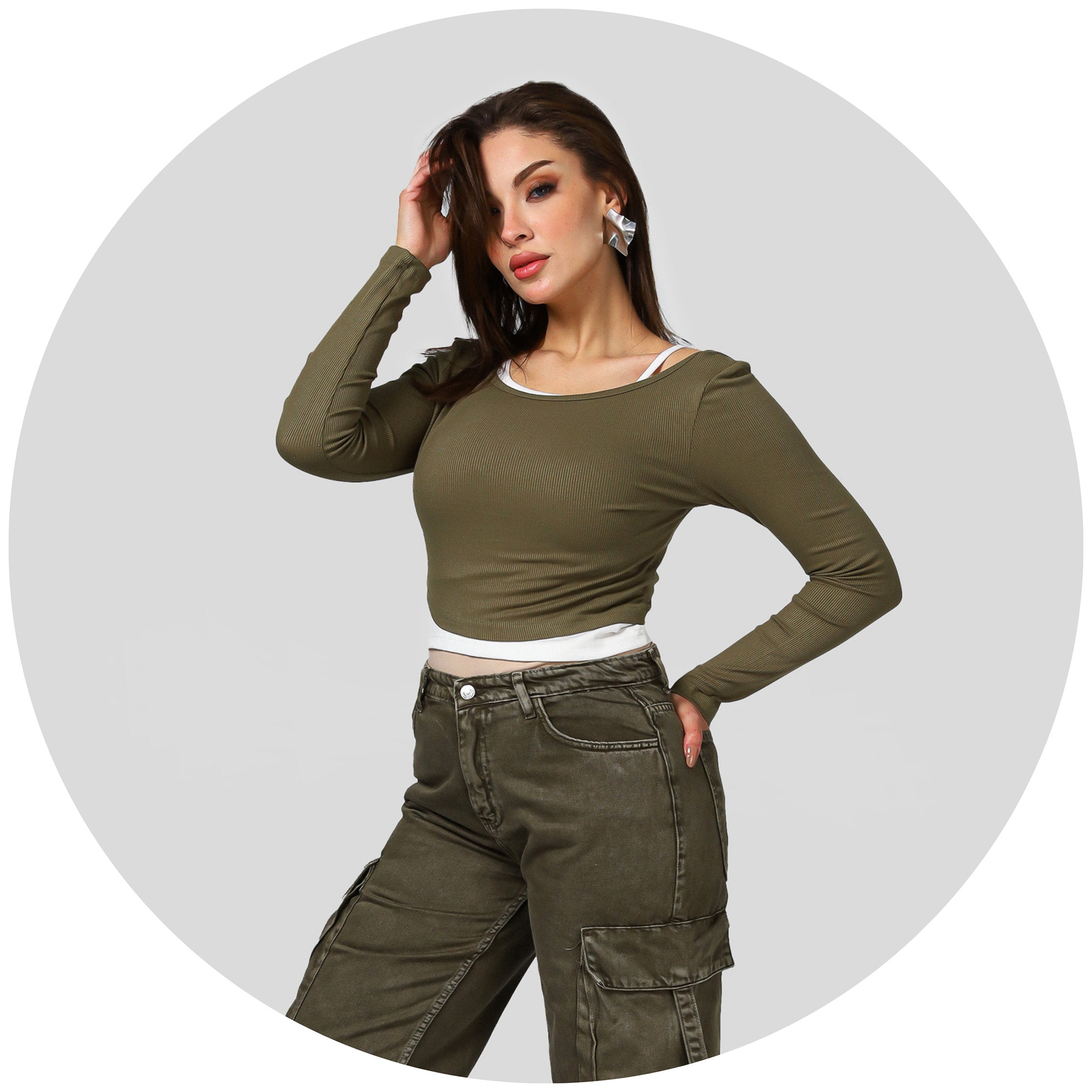 Ruffled Ribbed Knit Lace-Trim Blouse s15183000