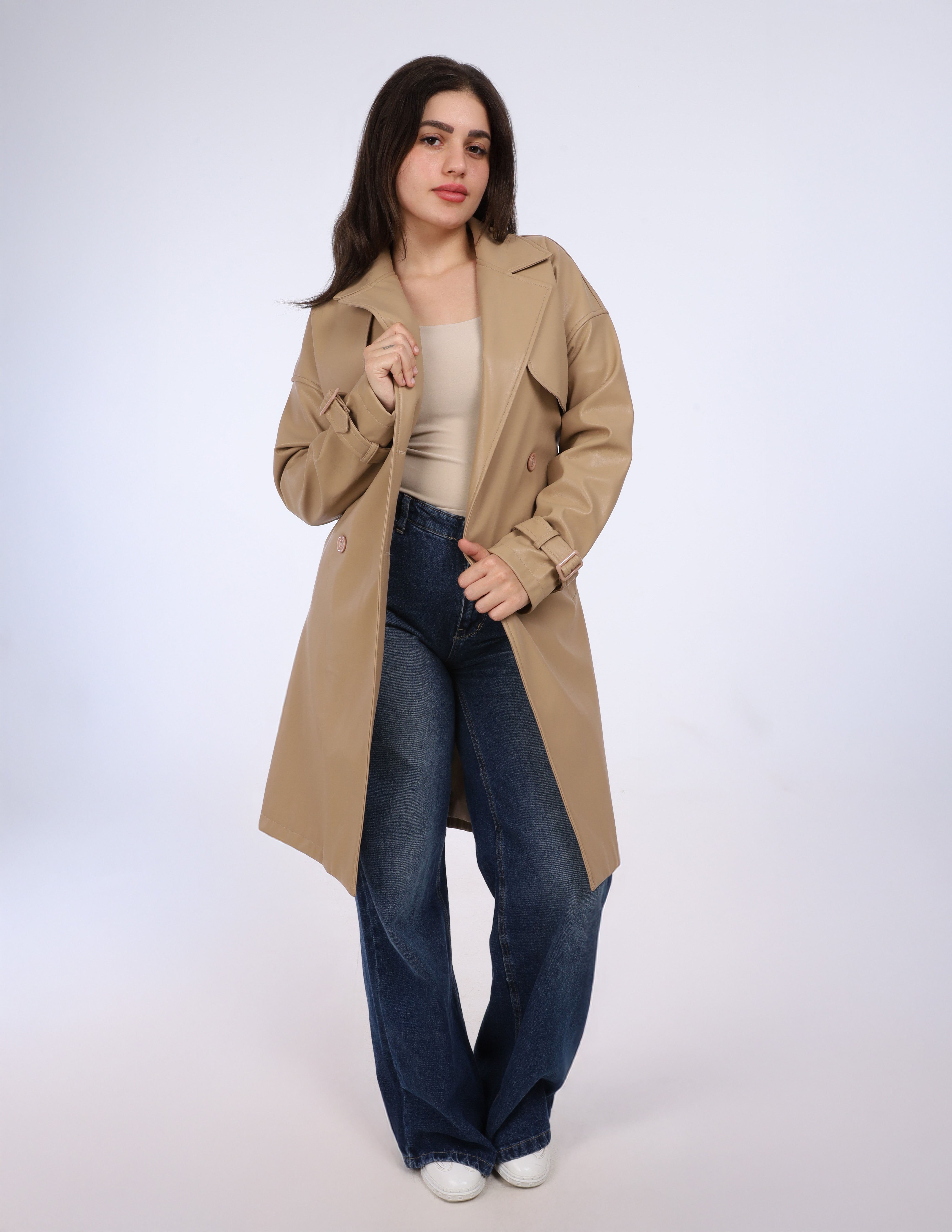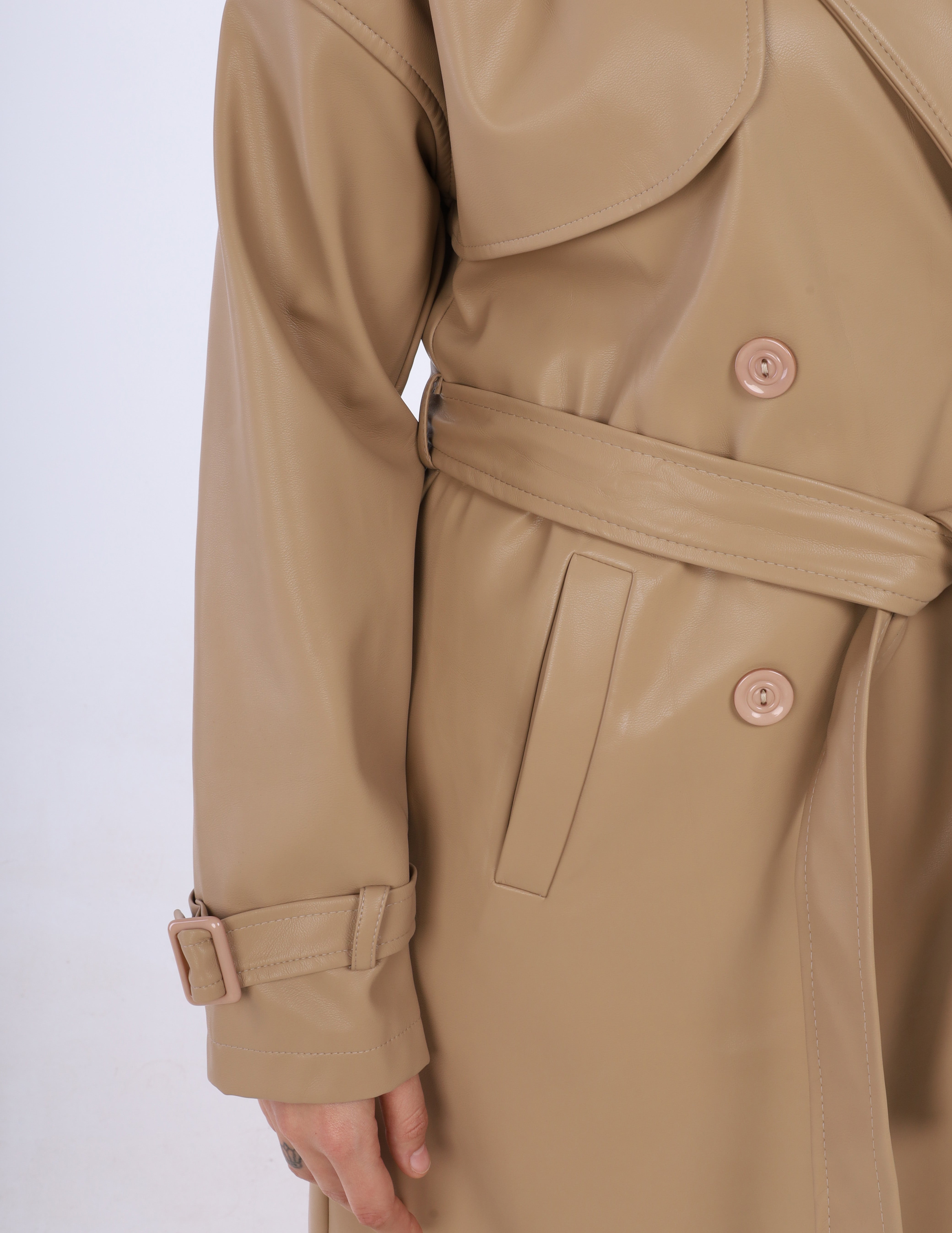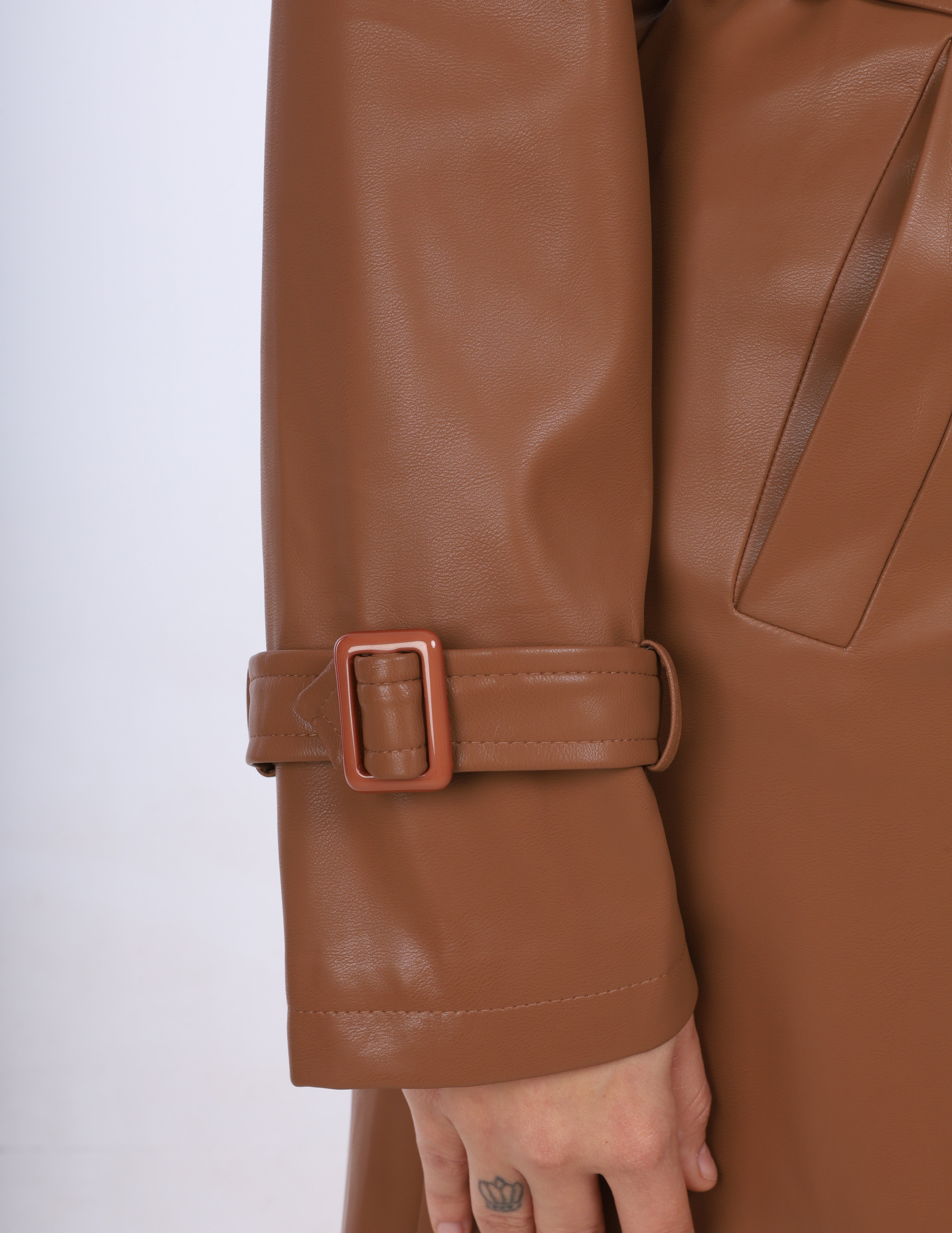 Faux Leather Midi Skirt with X-Button Detail w163040