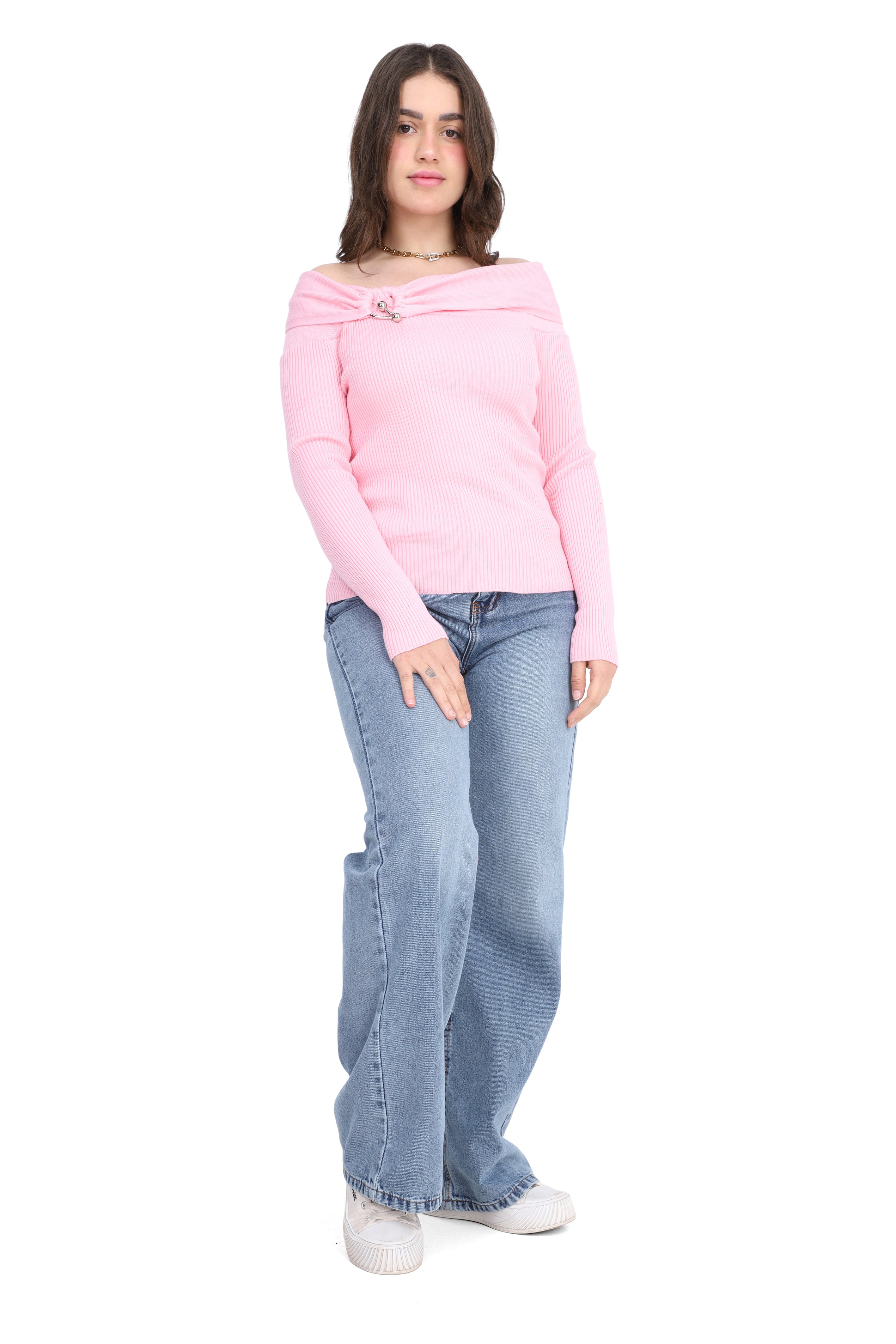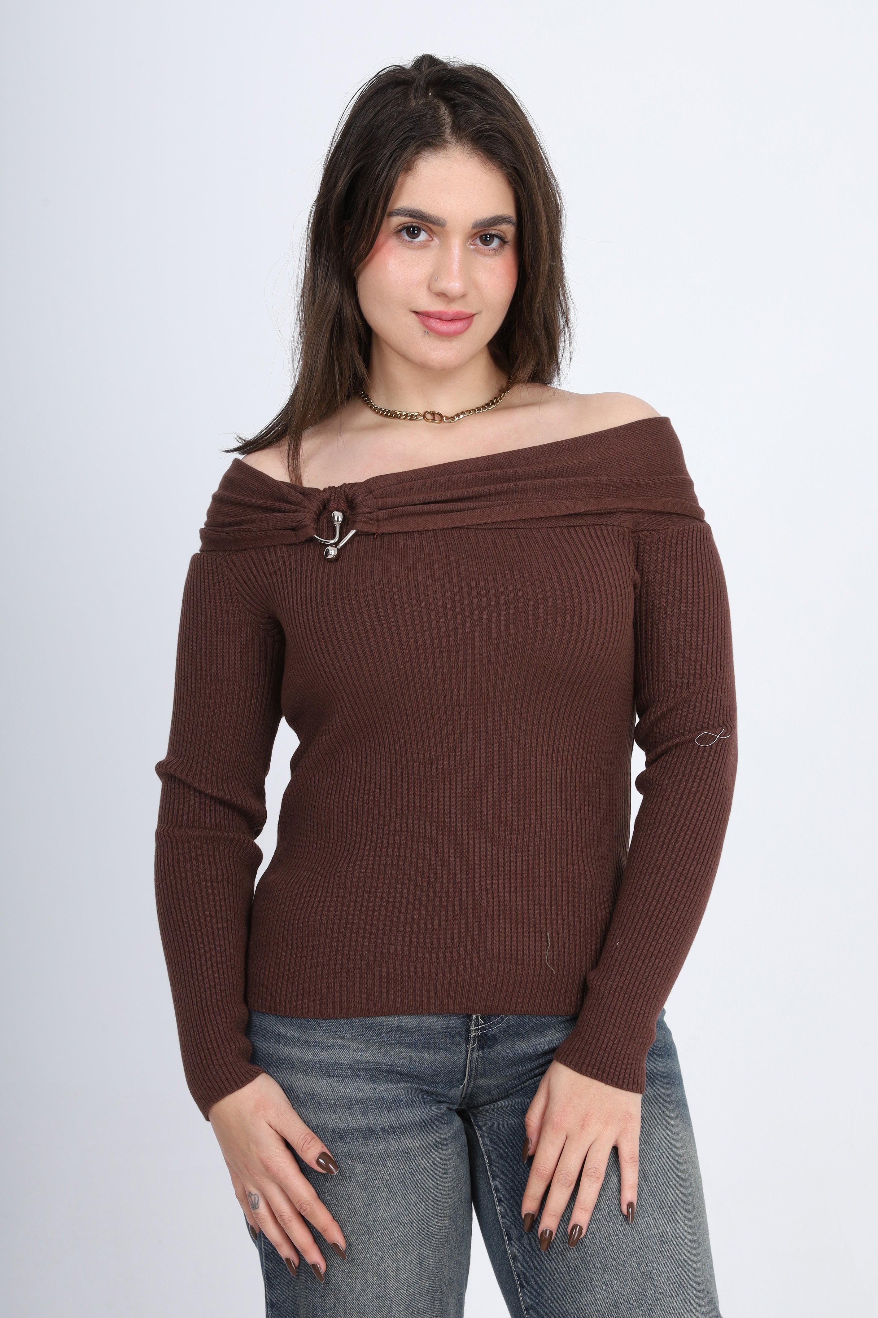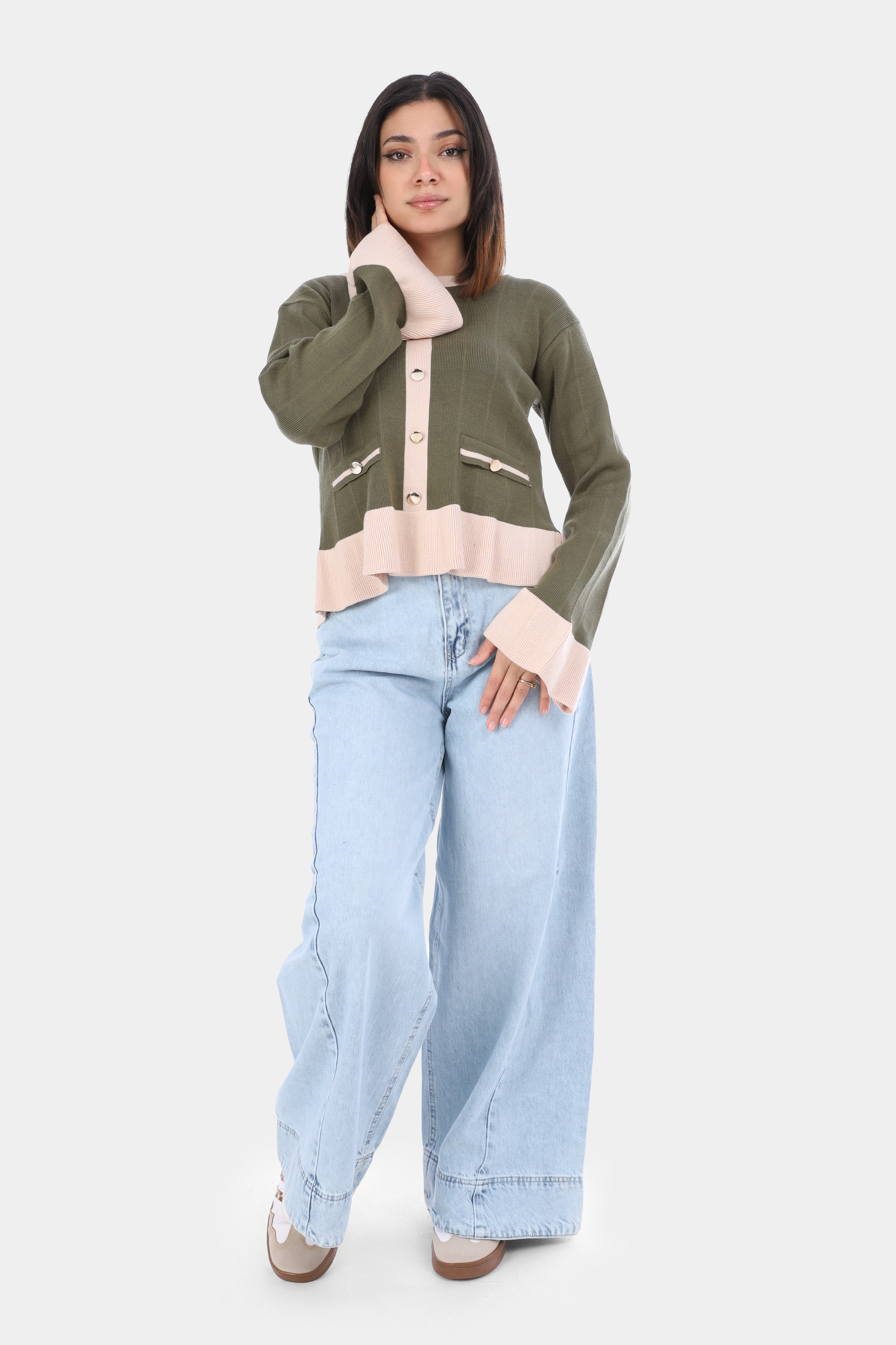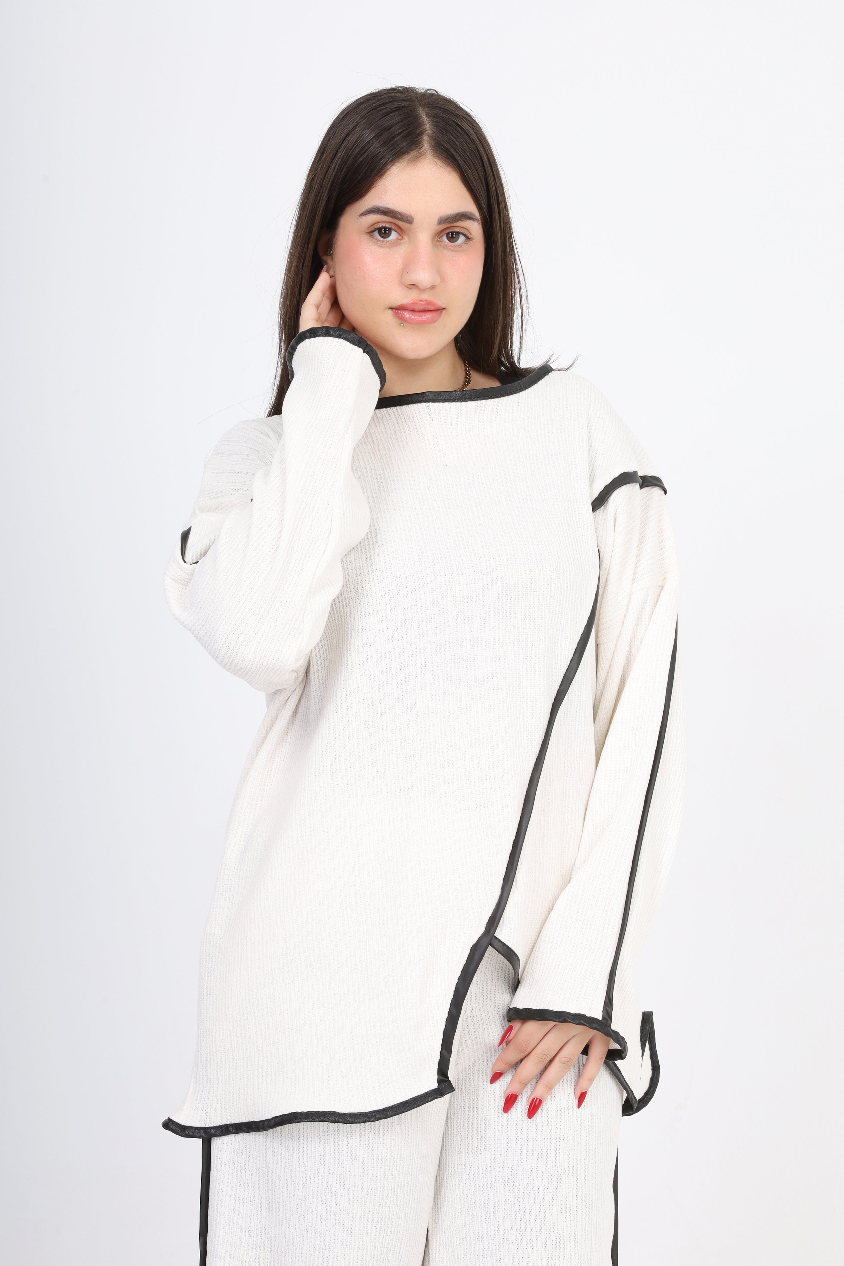 Contrast Trim Knit Blouse with Tie Sleeves w163273