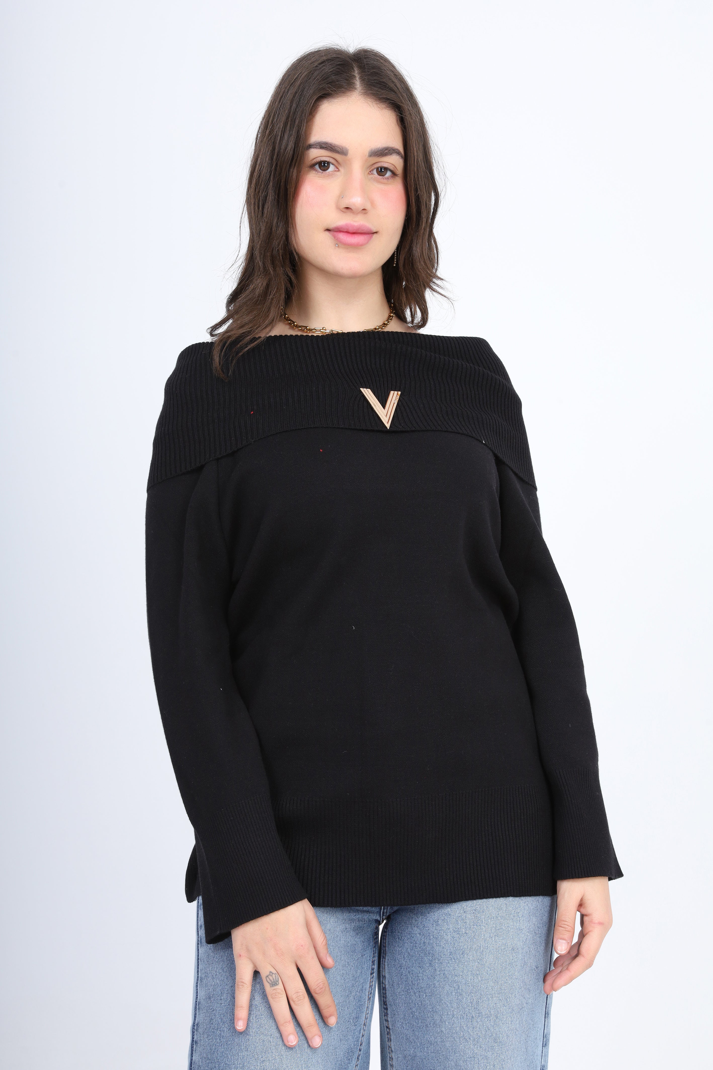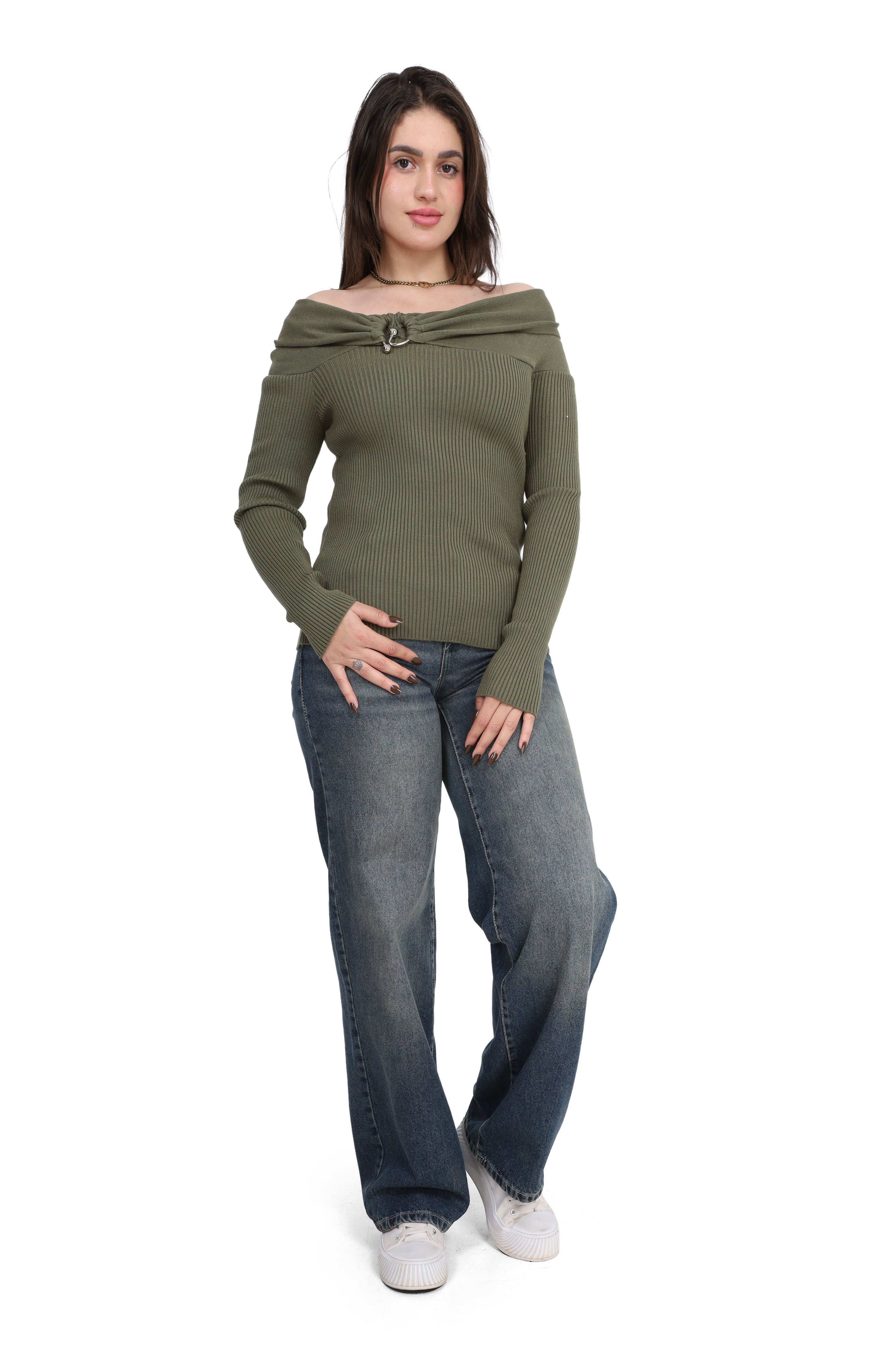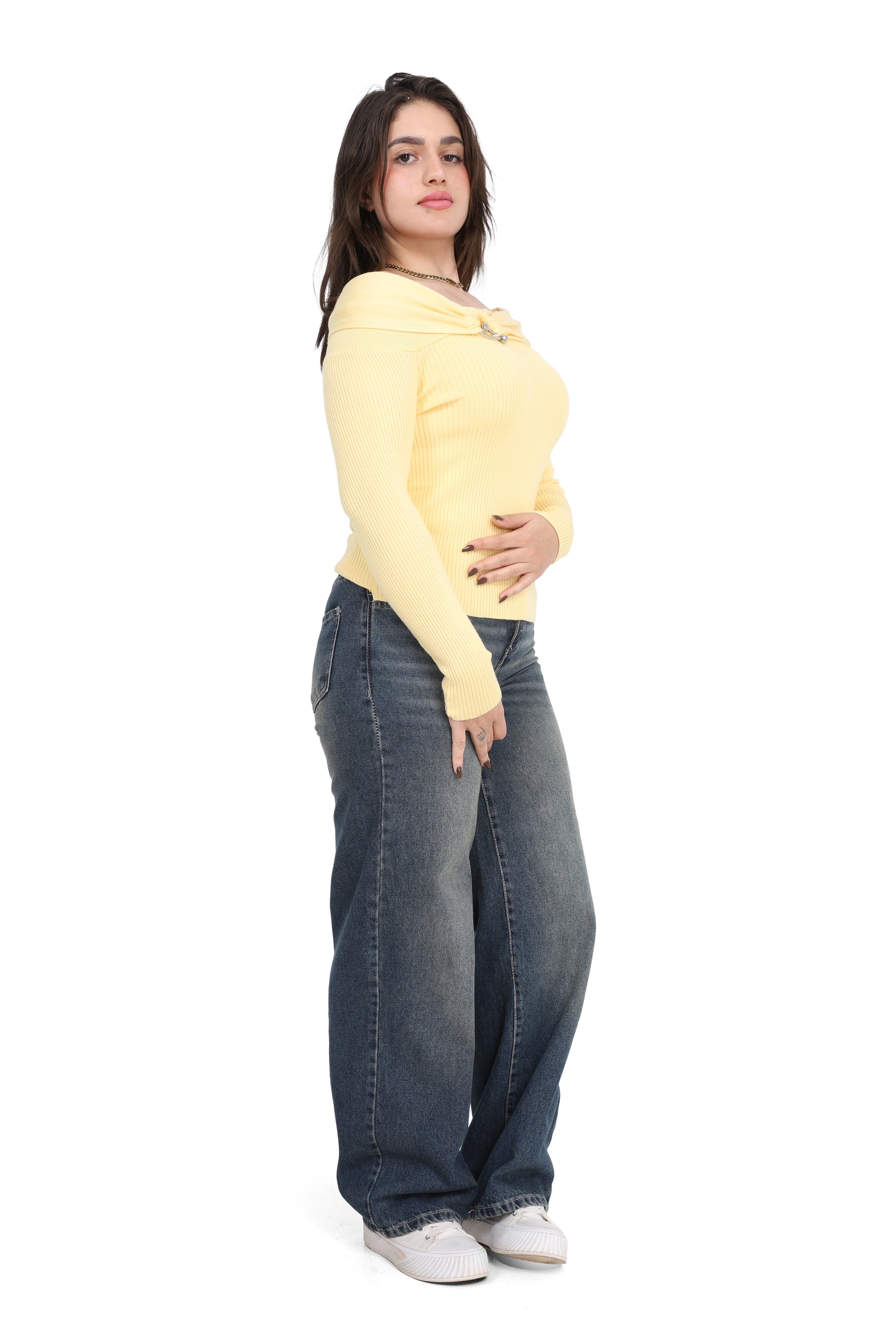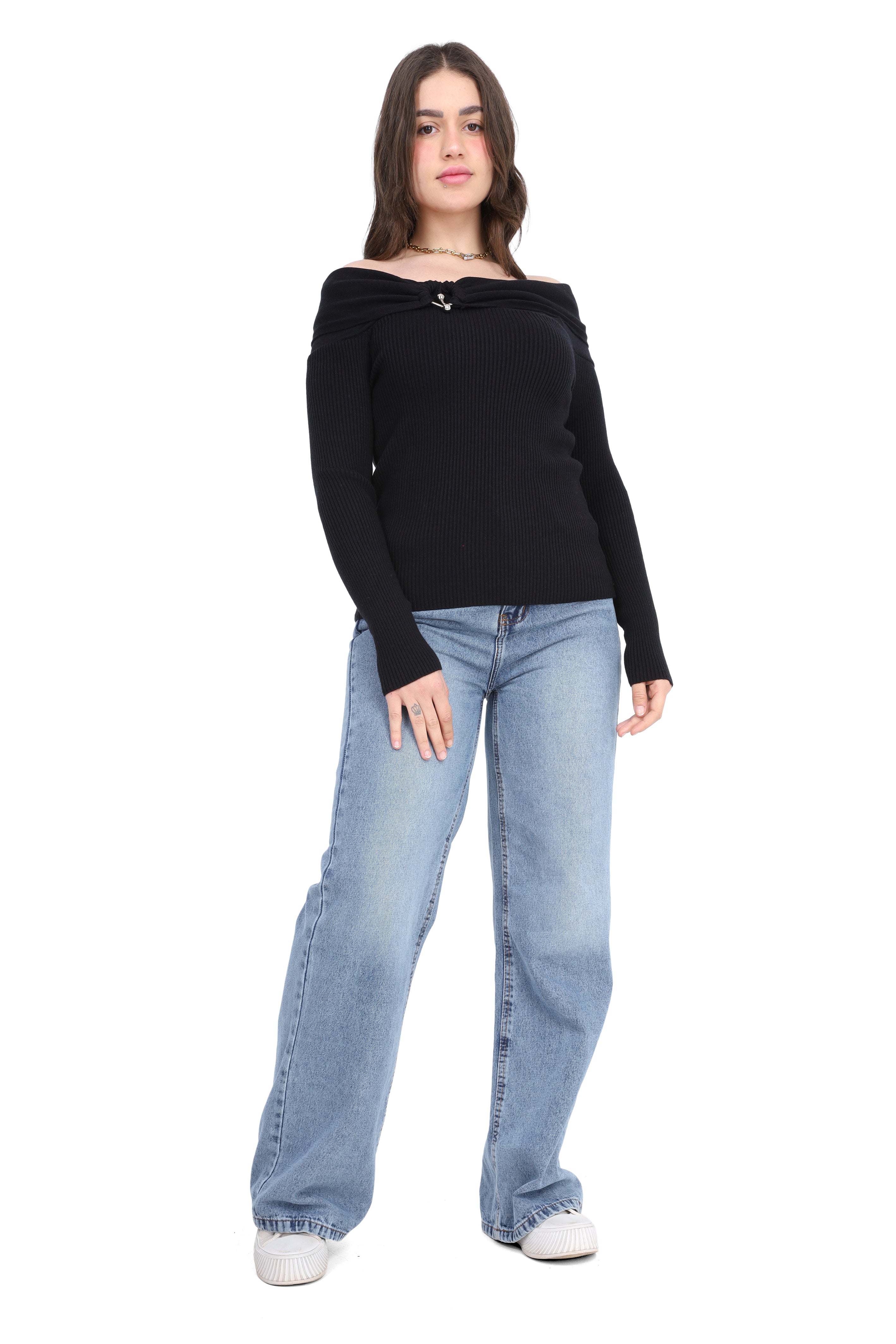 Contrast Trim Knit Blouse with Tie Sleeves w163273