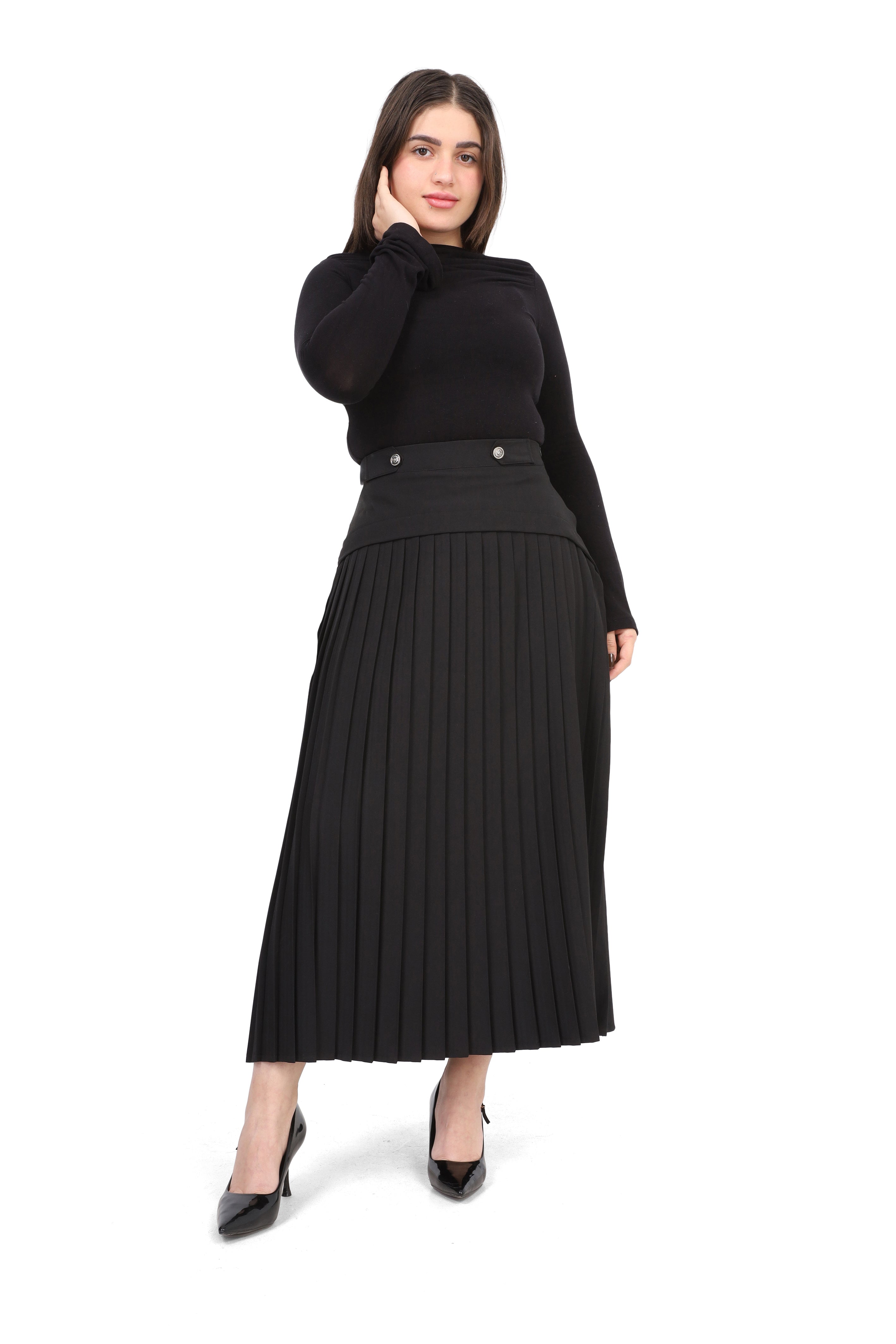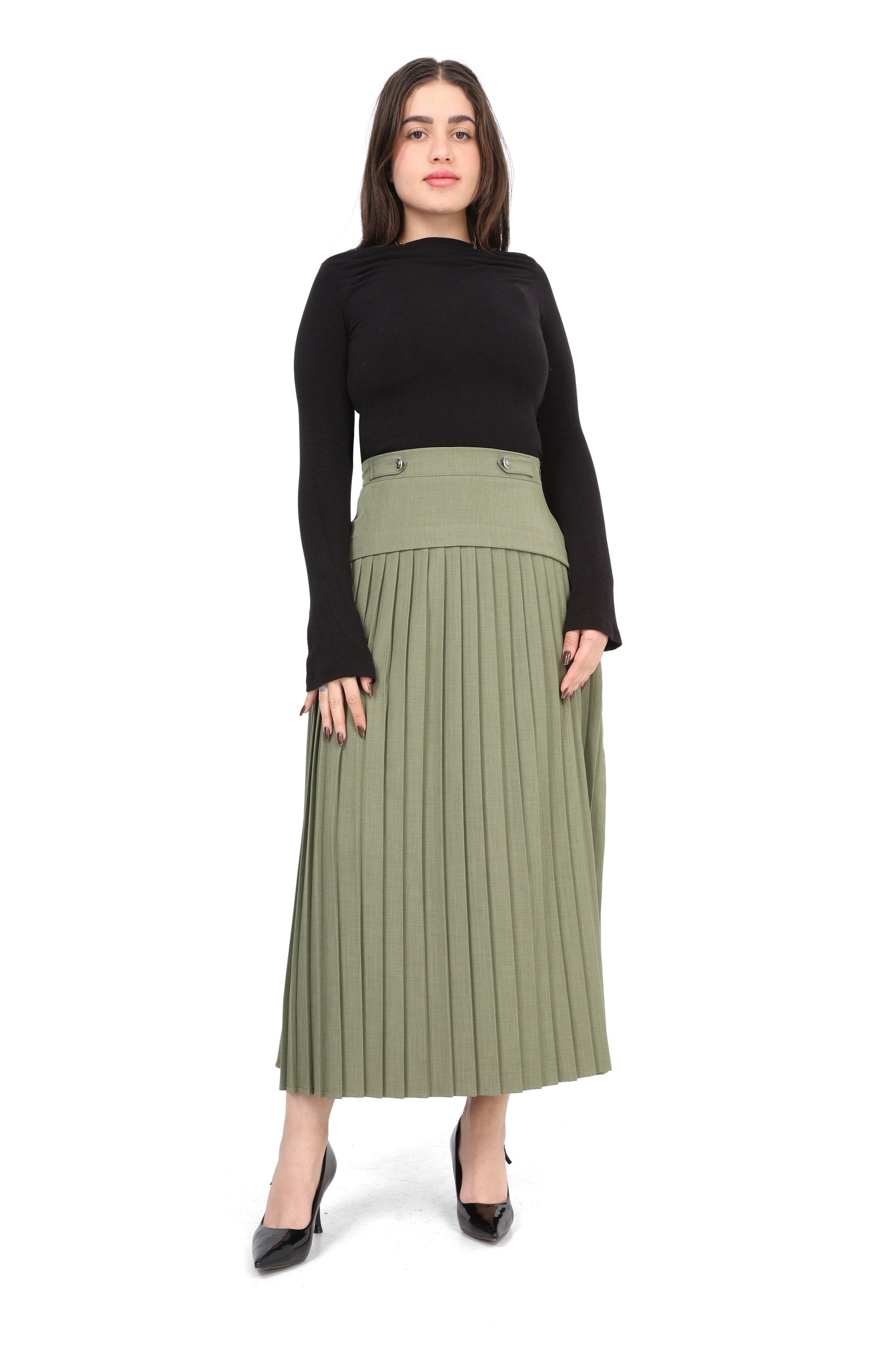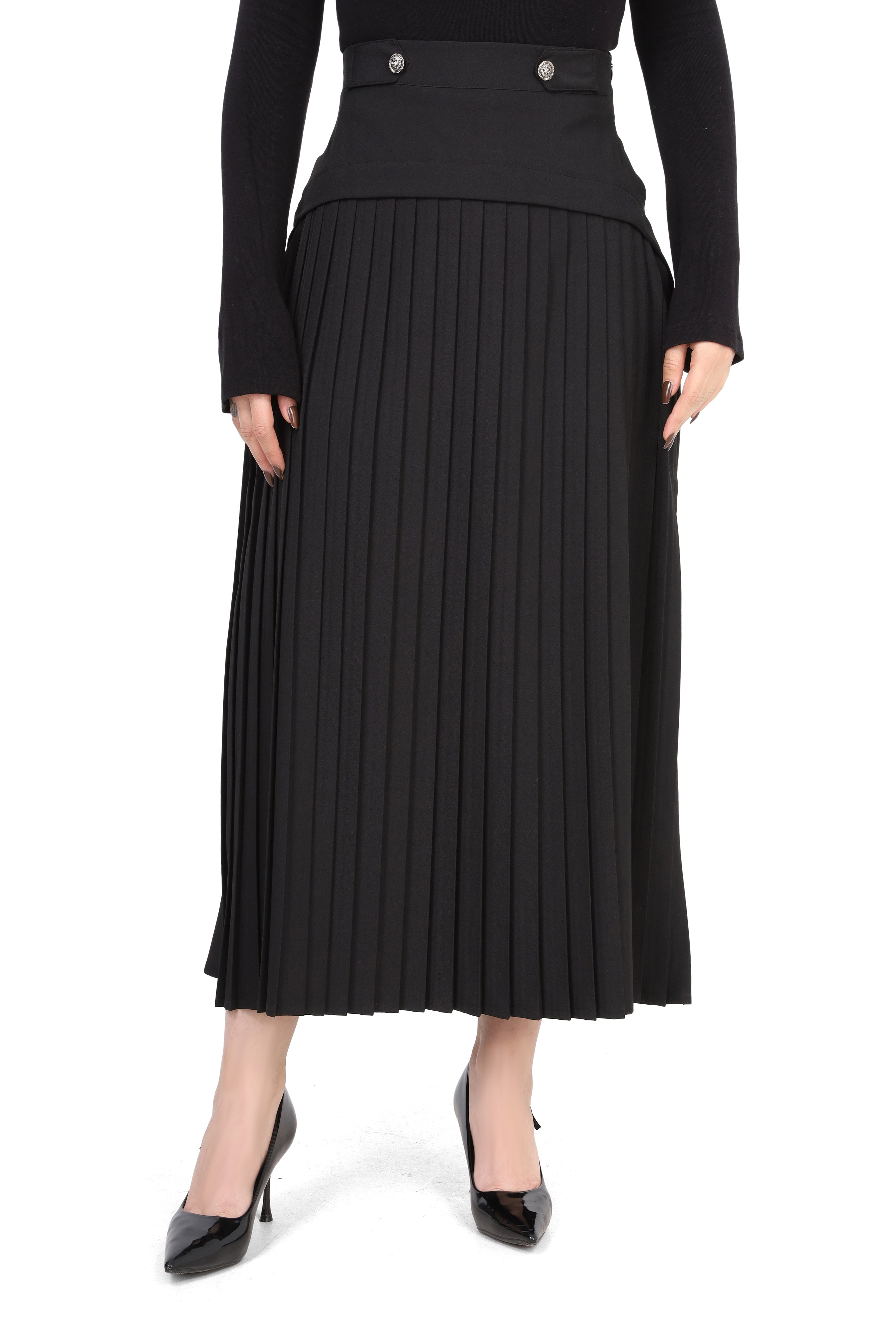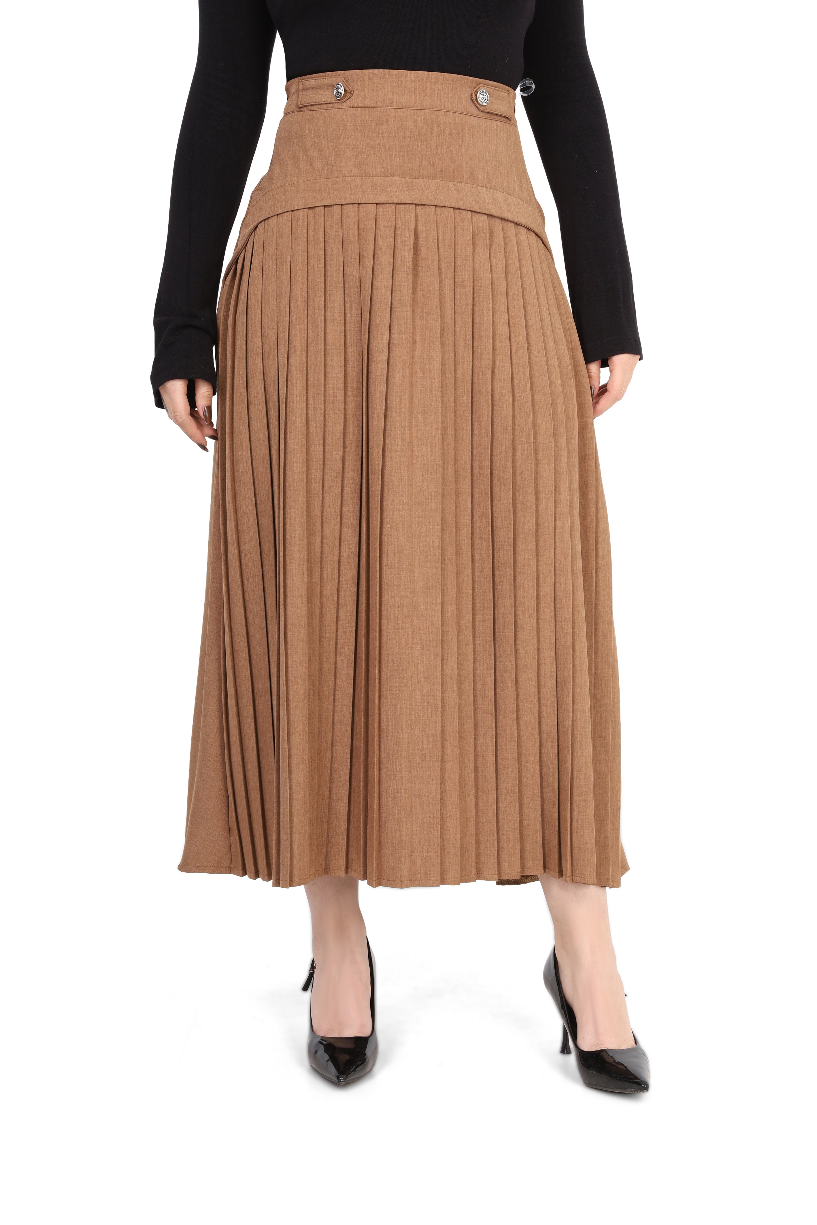 Pleated Midi Skirt with Button Detail 2000/029