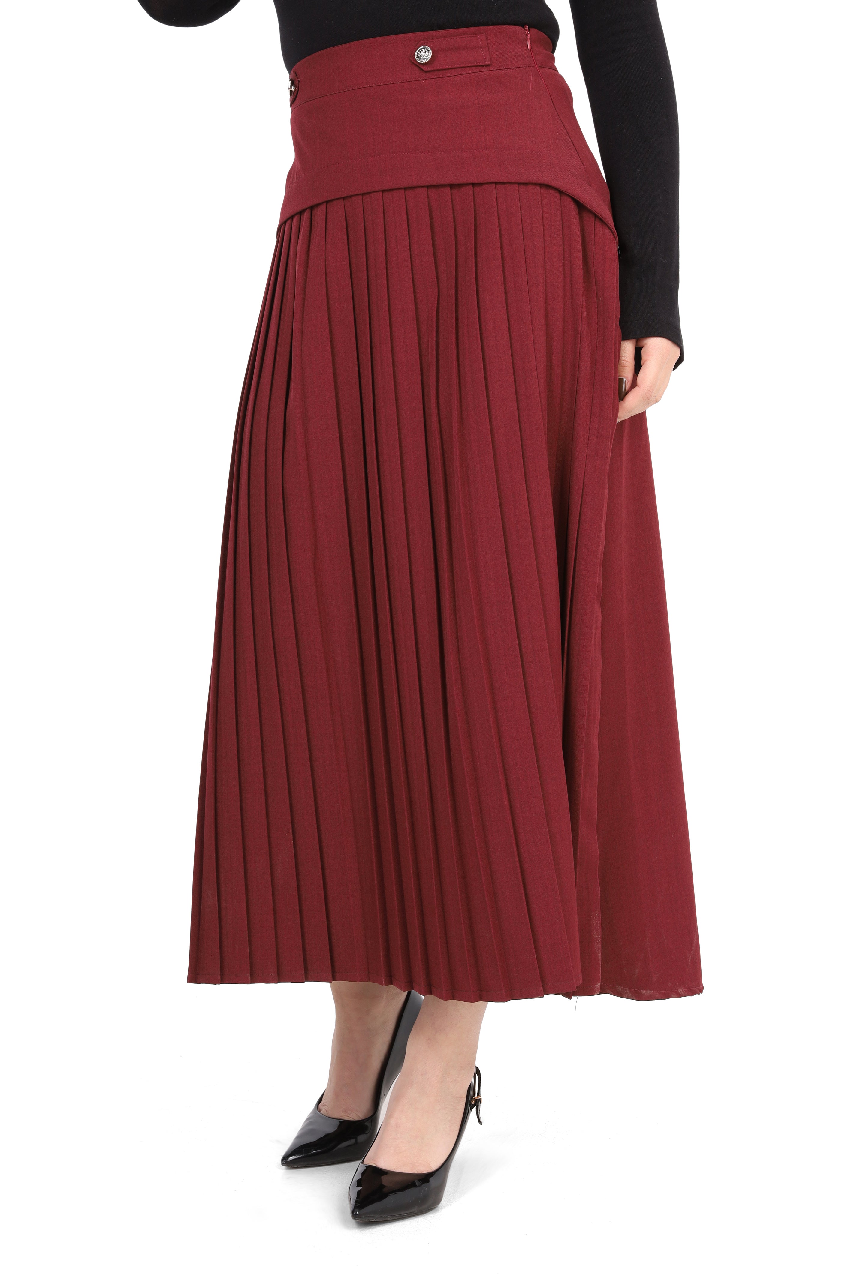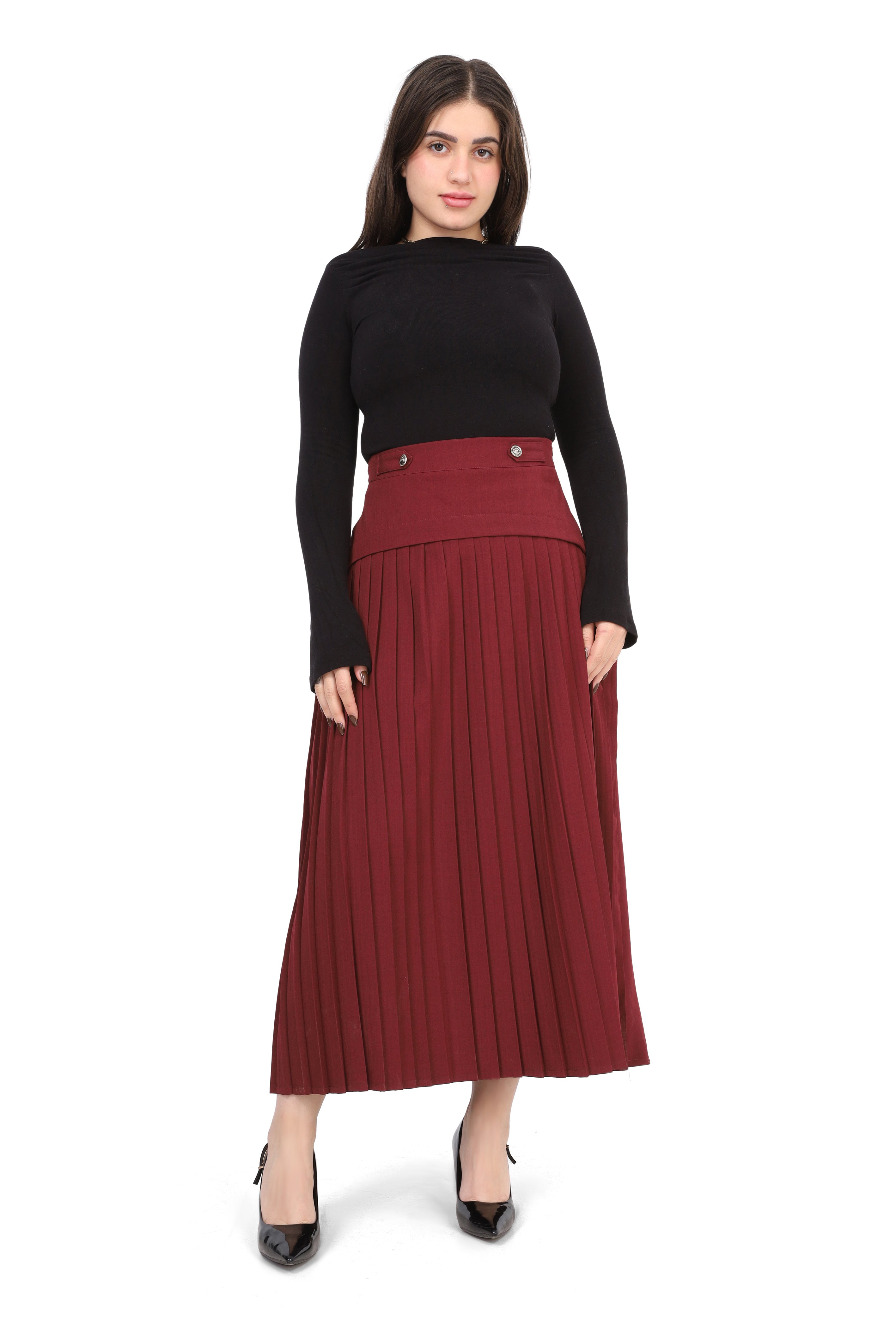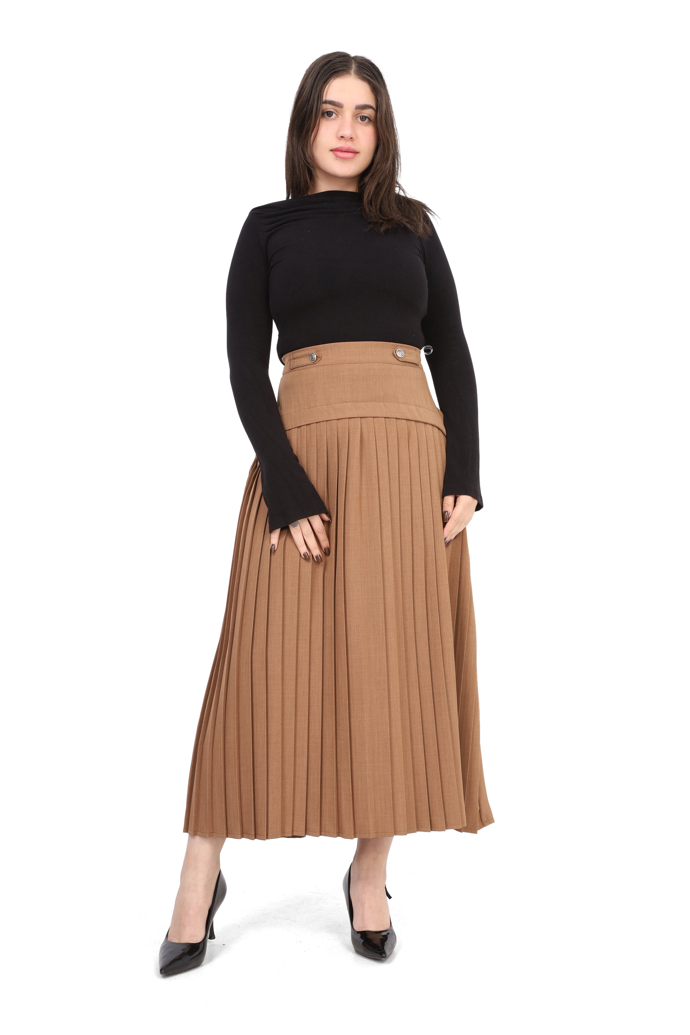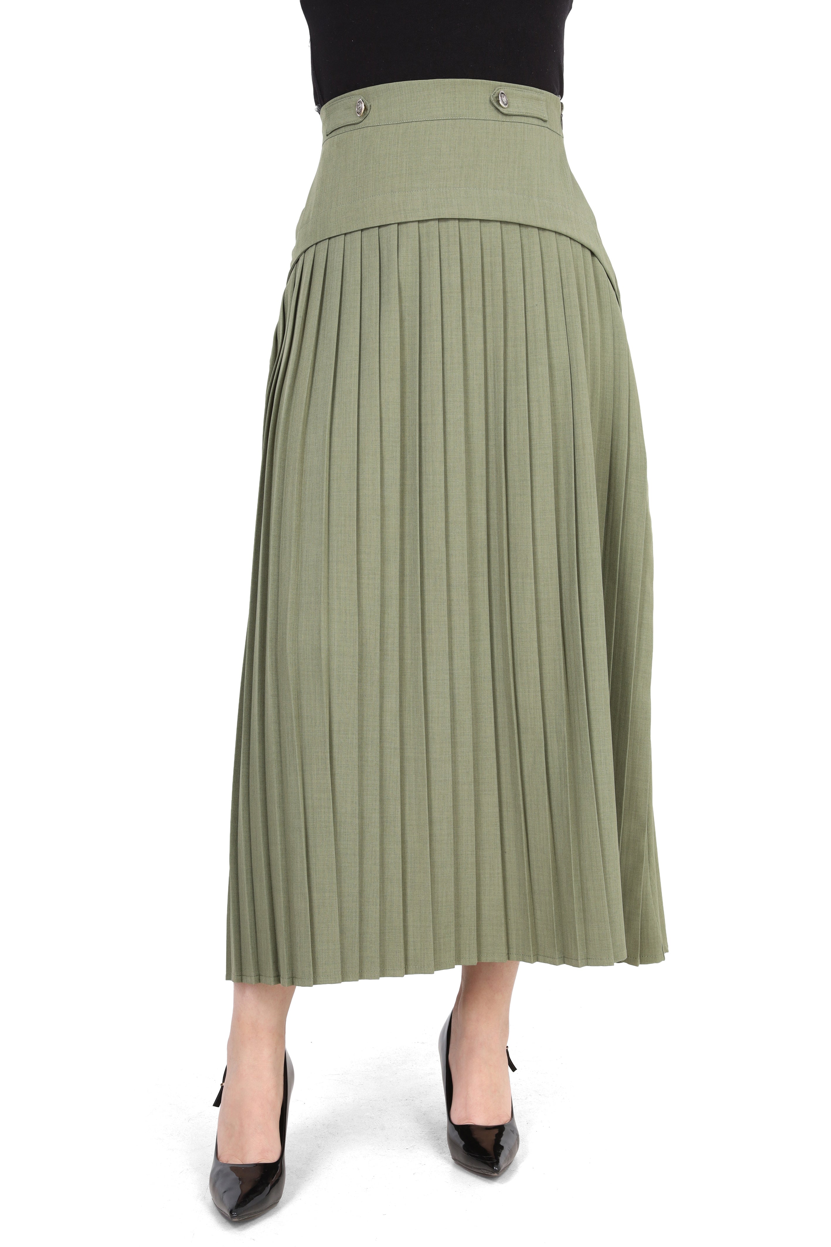 Pleated Midi Skirt with Button Detail 2000/029