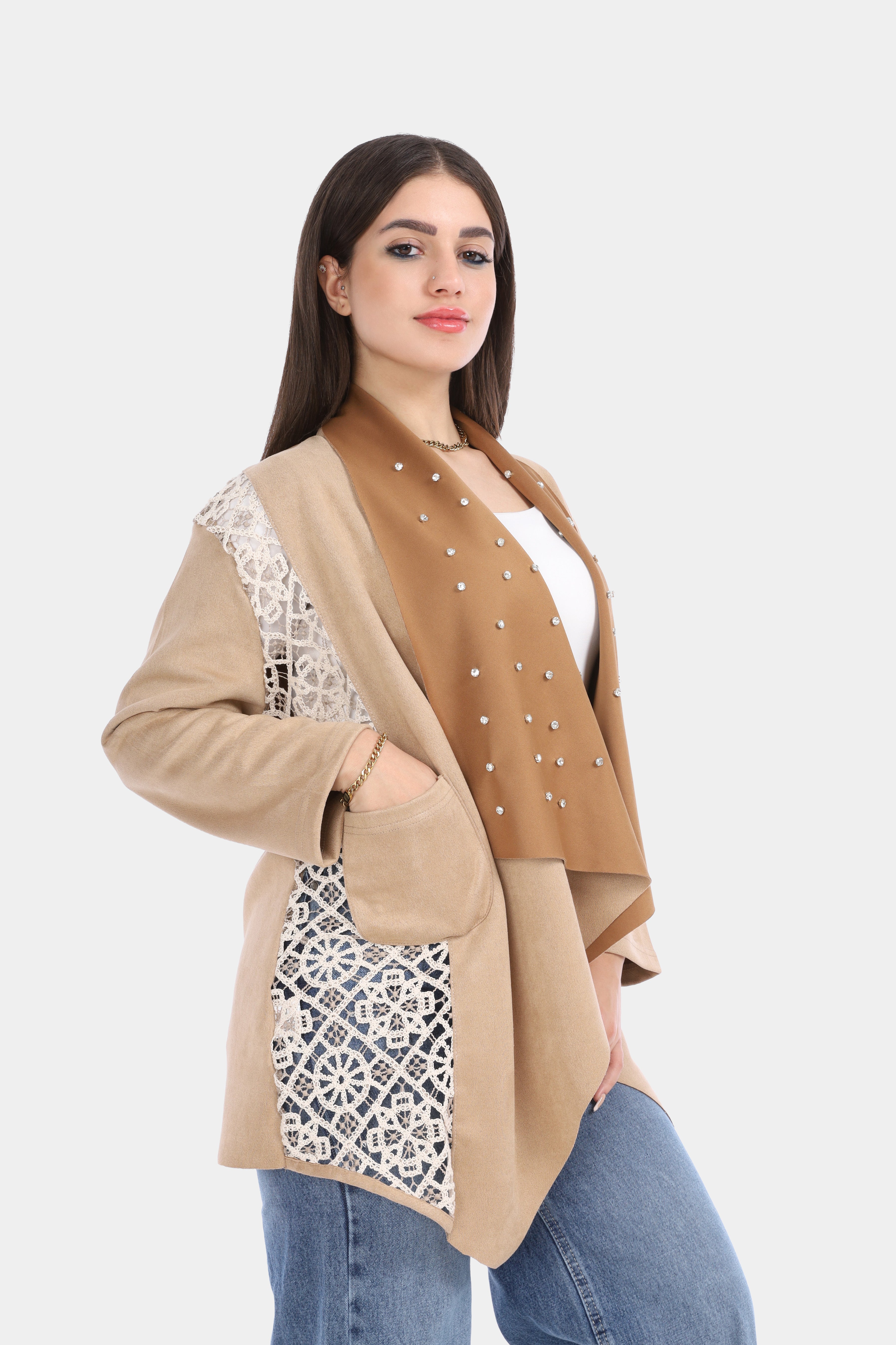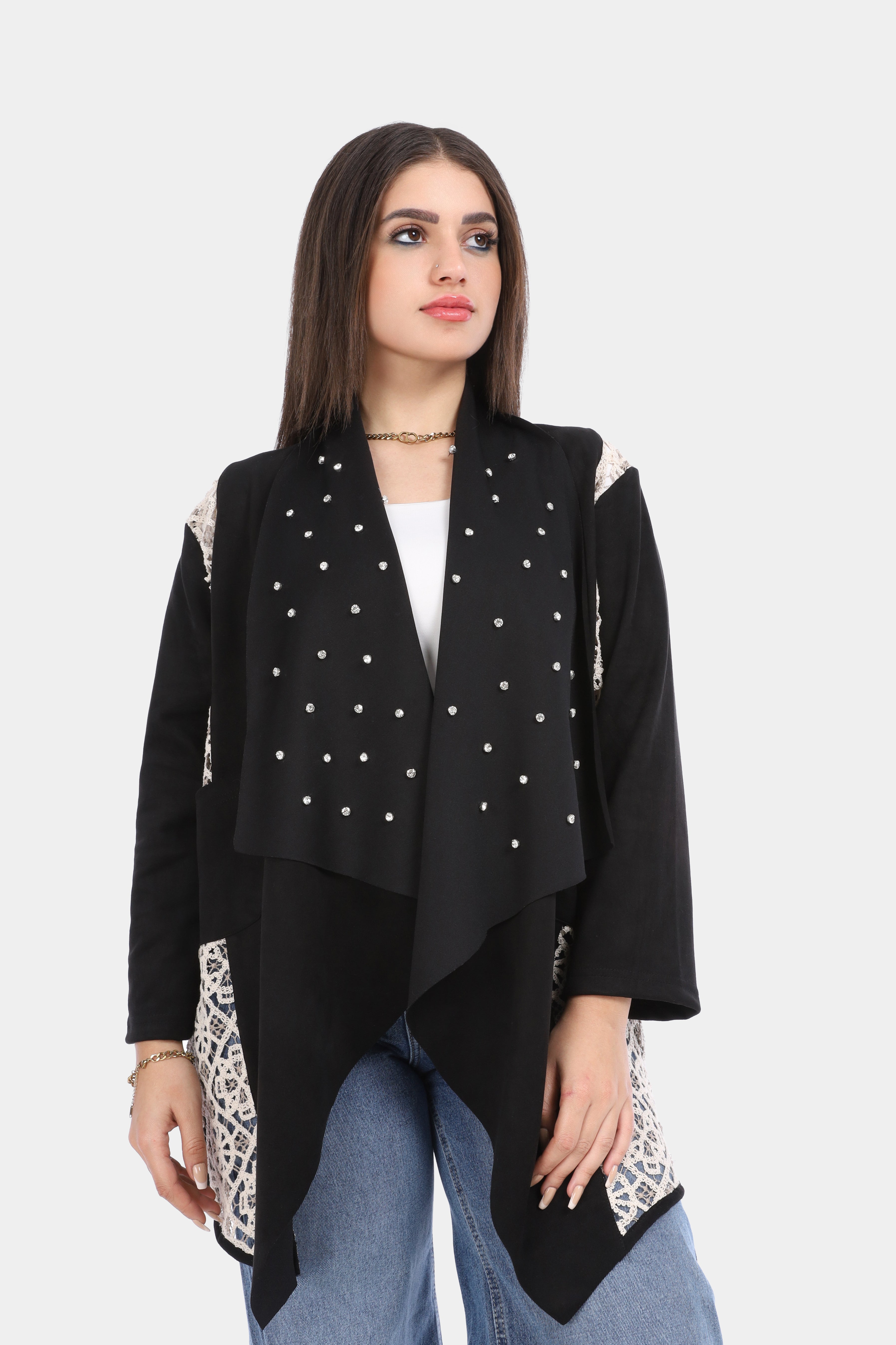 Open Front Lace Panel Cardigan 2001/027