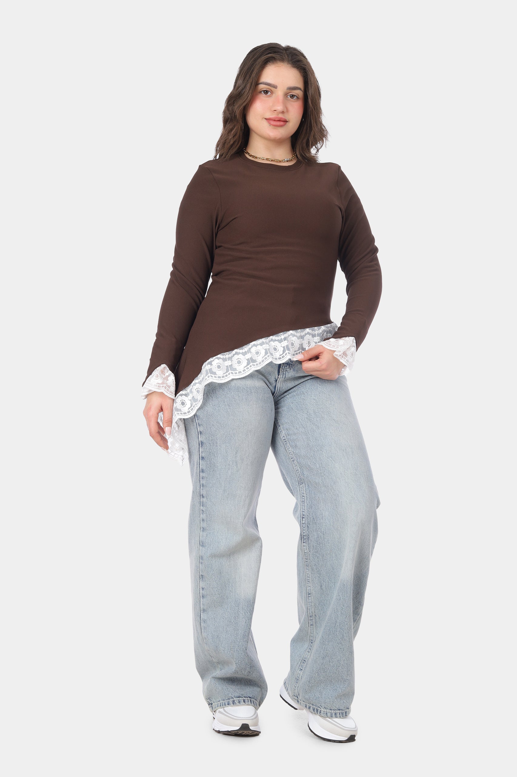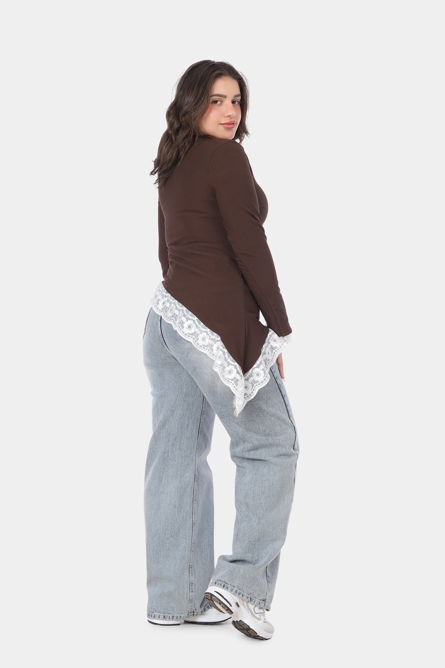 Ribbed Cardigan With Lace Trim Top 2002/018