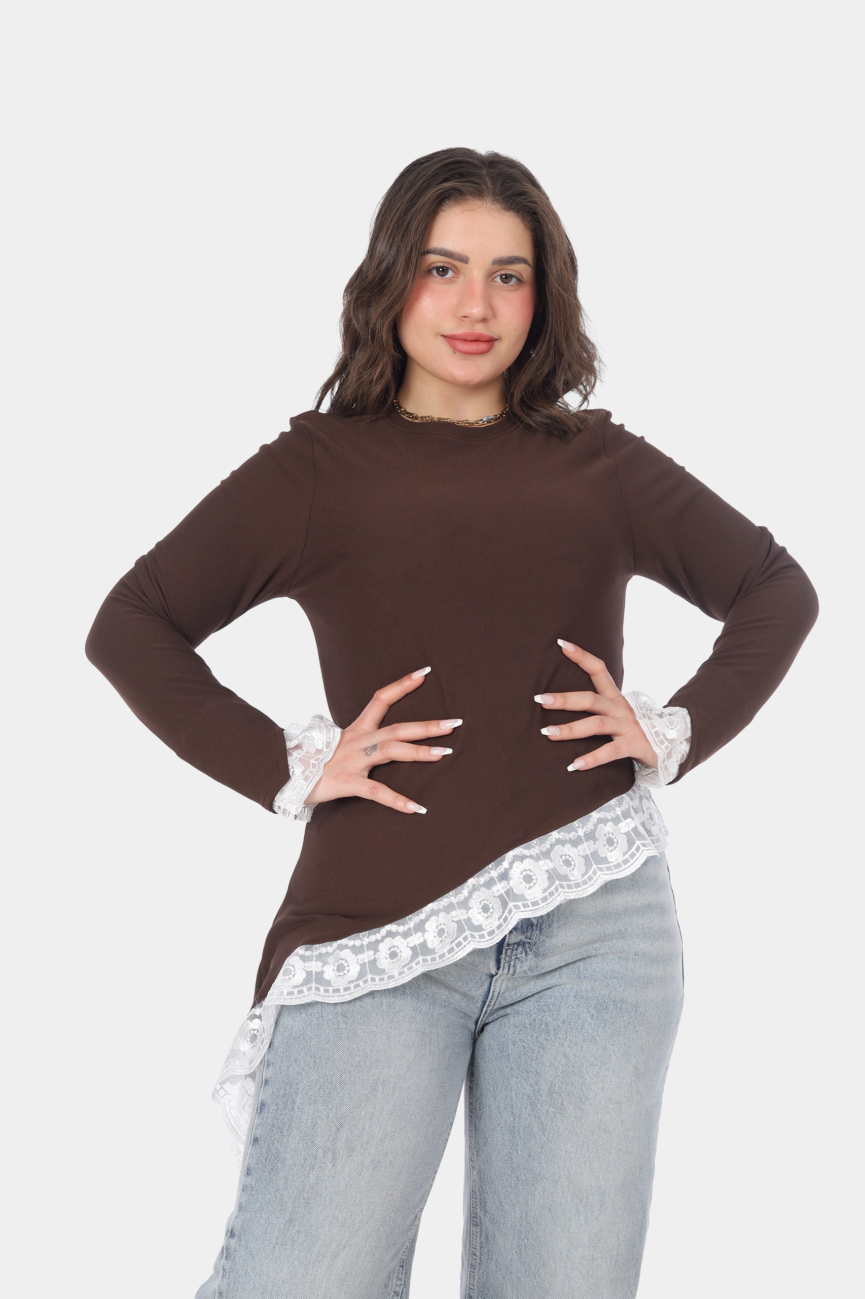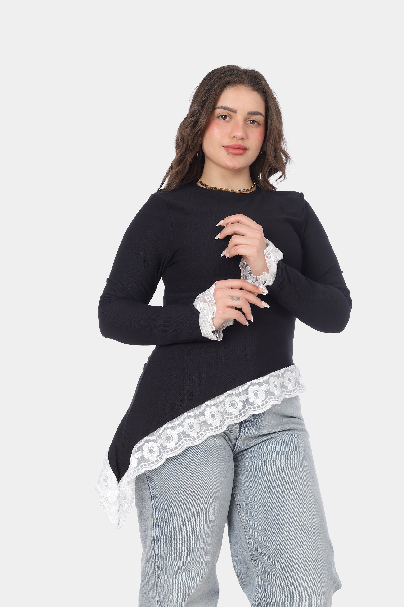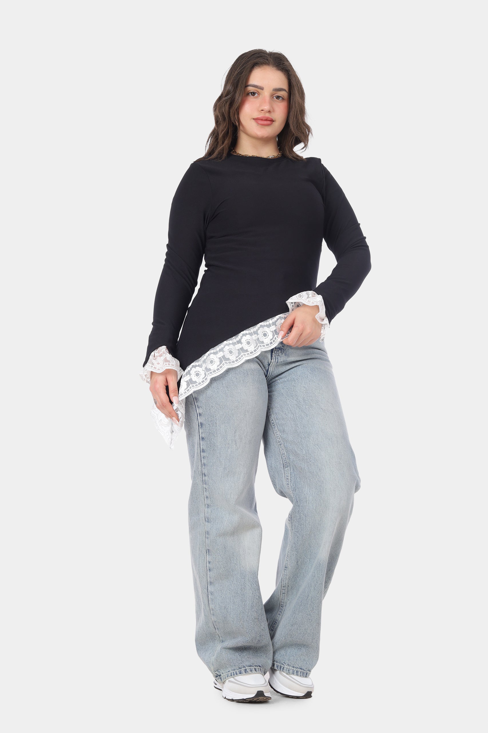 Ruffled Sleeve Lace Trim Blouse 2002/048