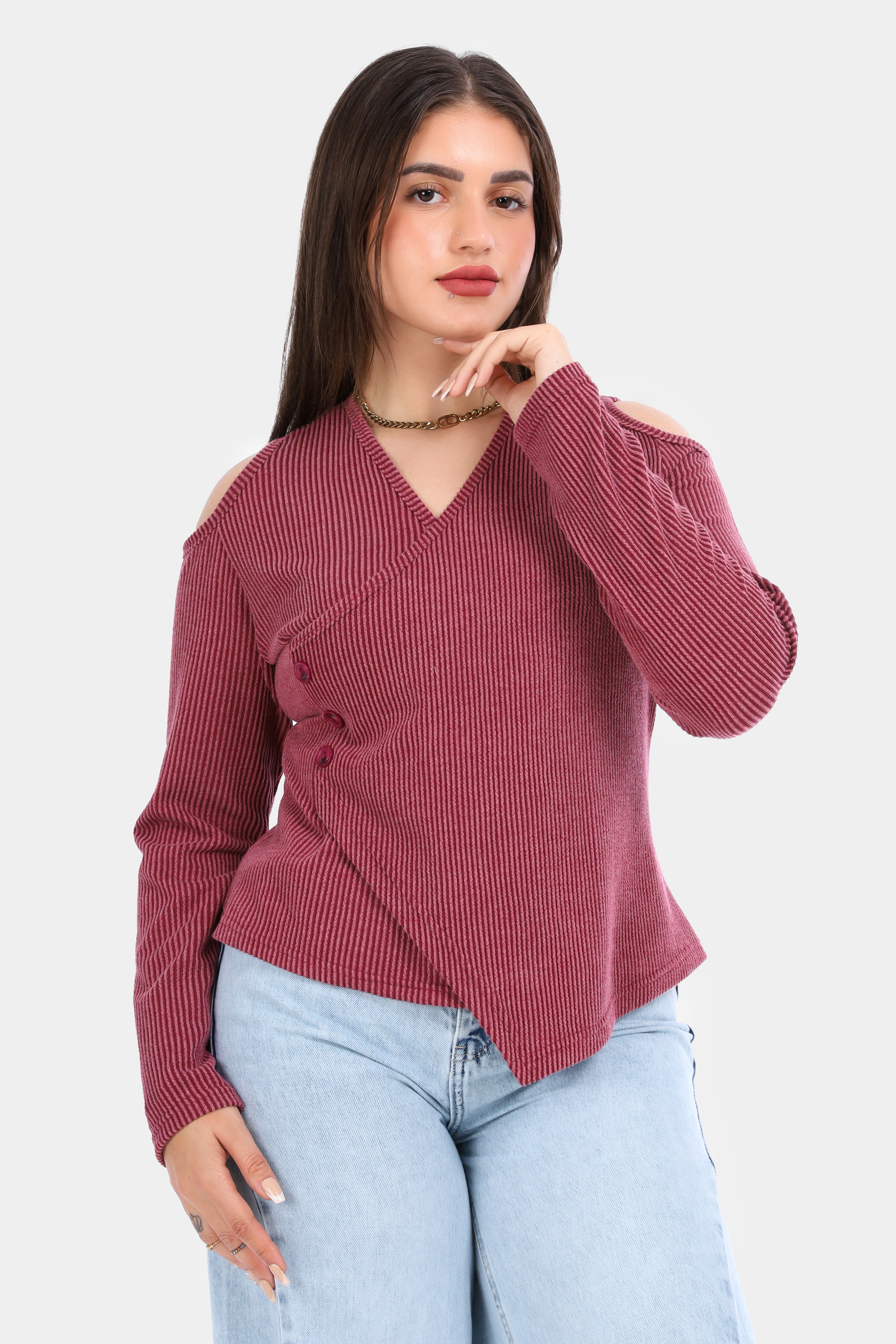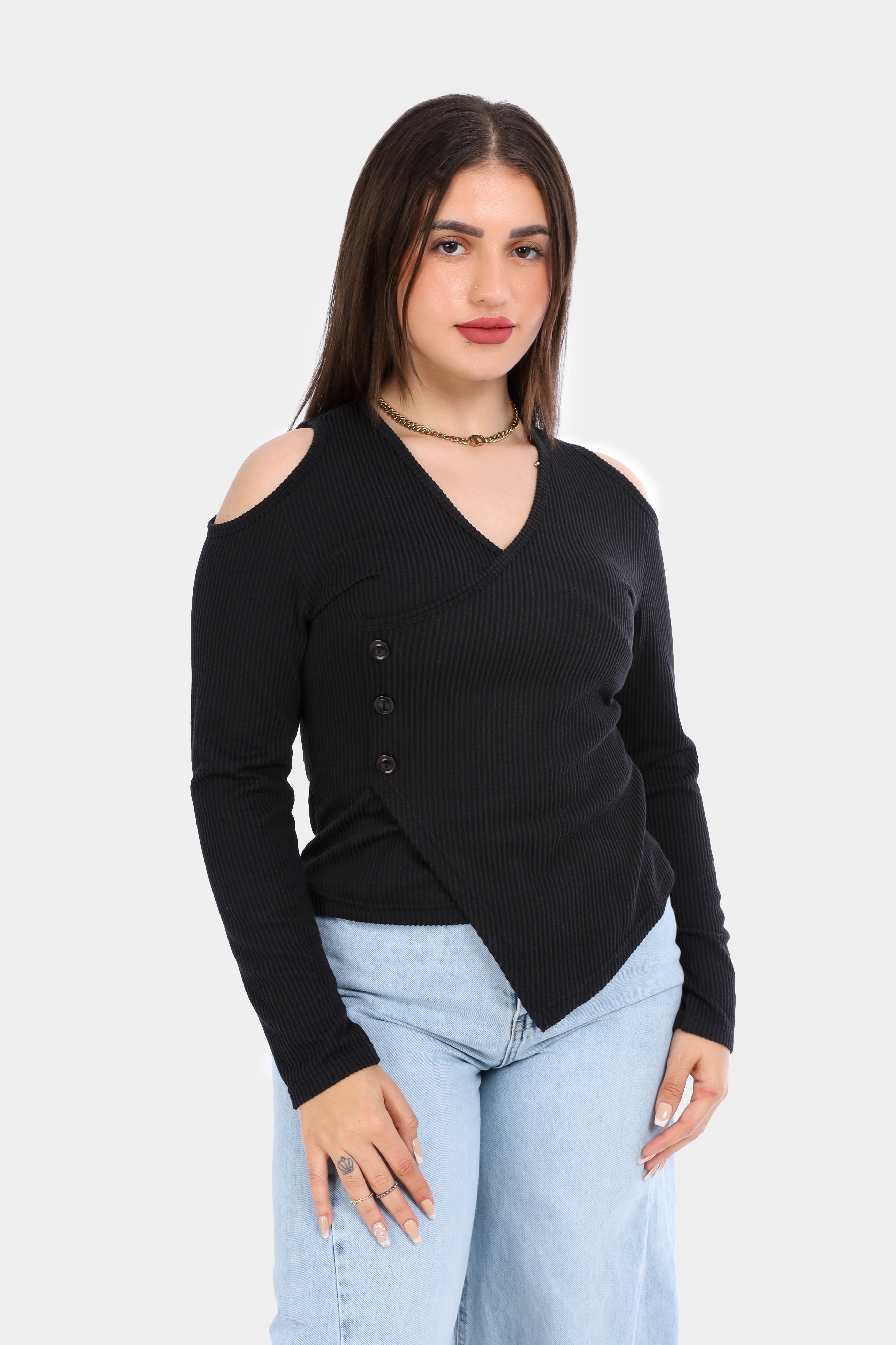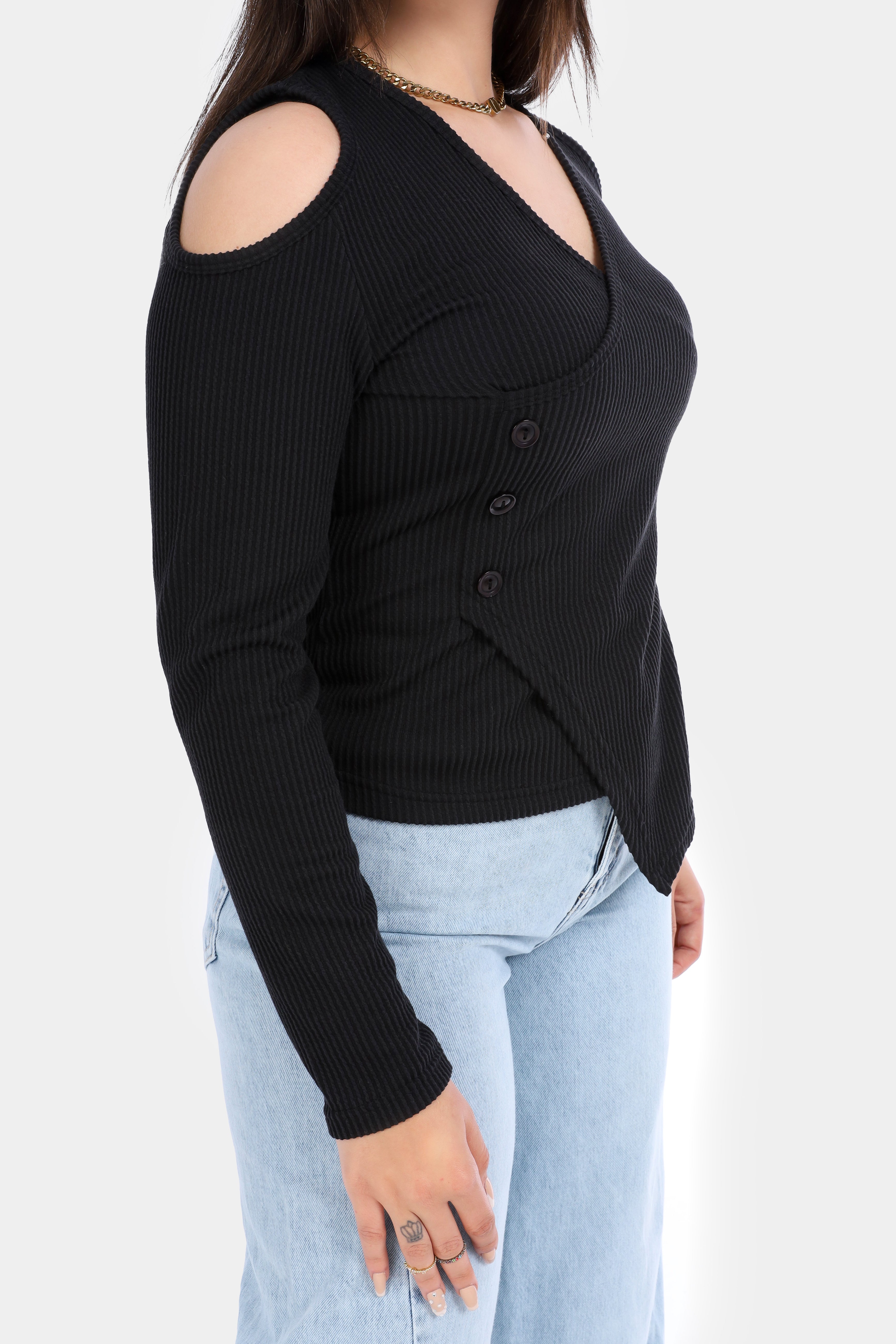 Ribbed Cold Shoulder Wrap Top 2003/011