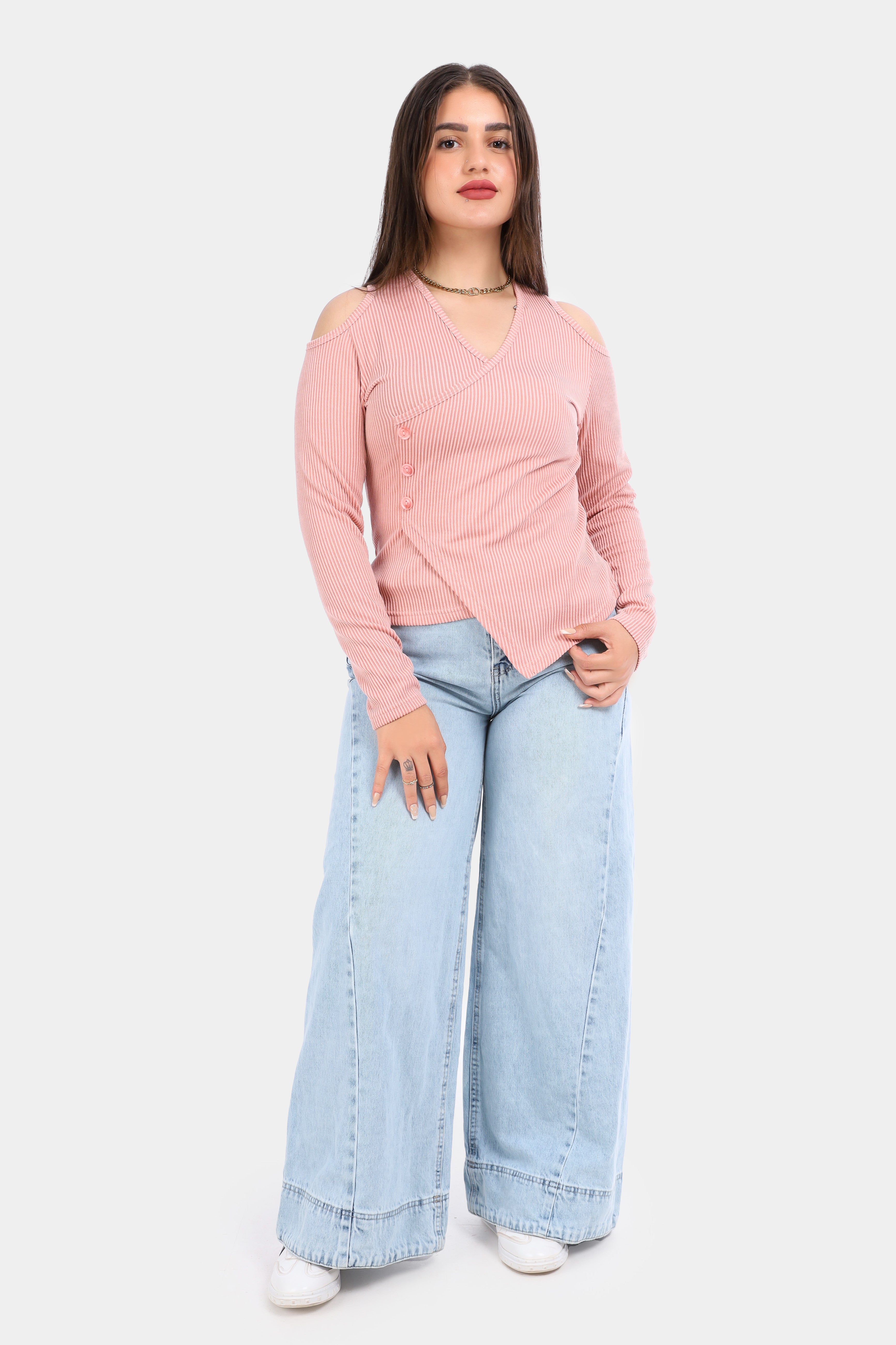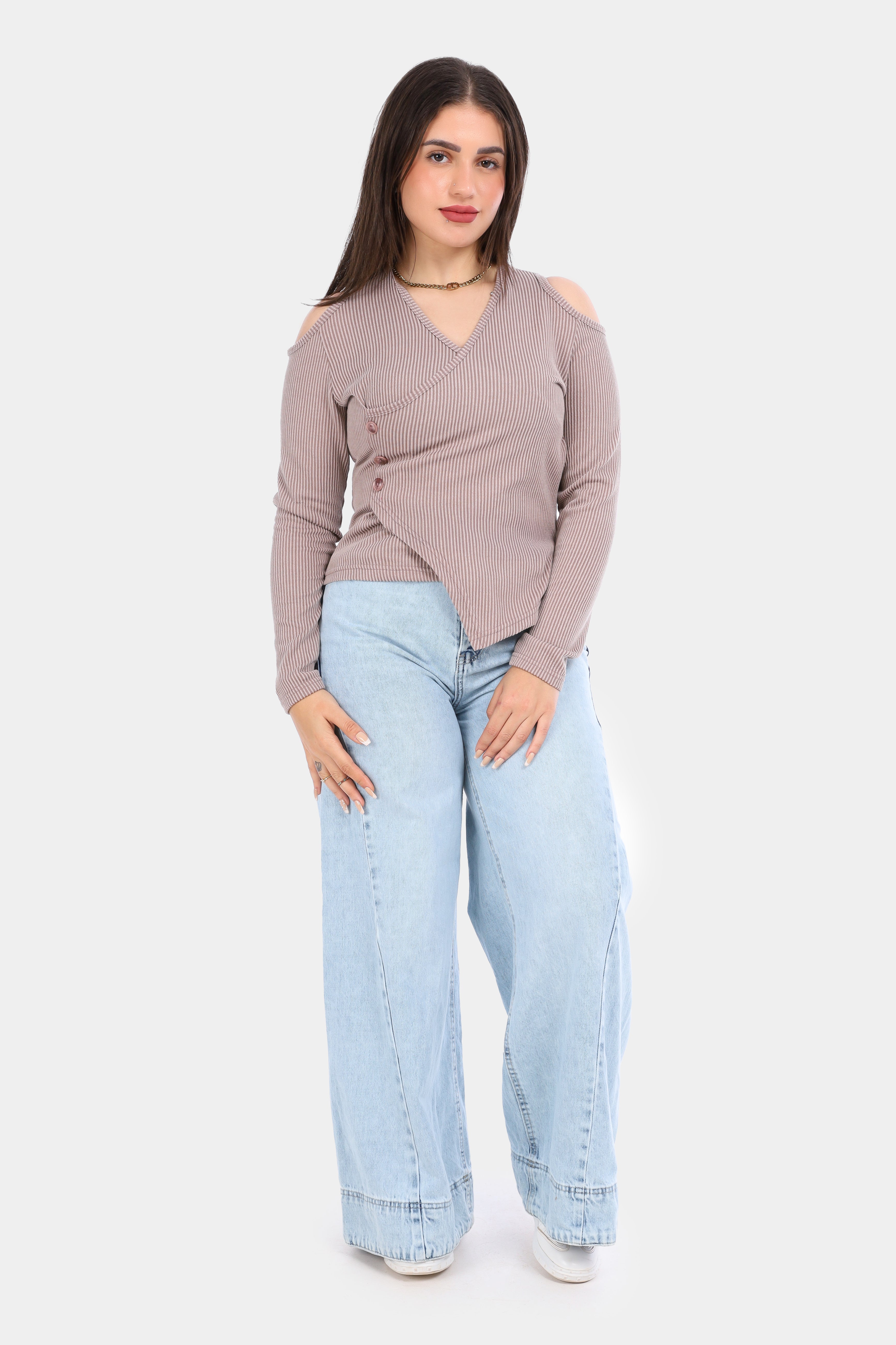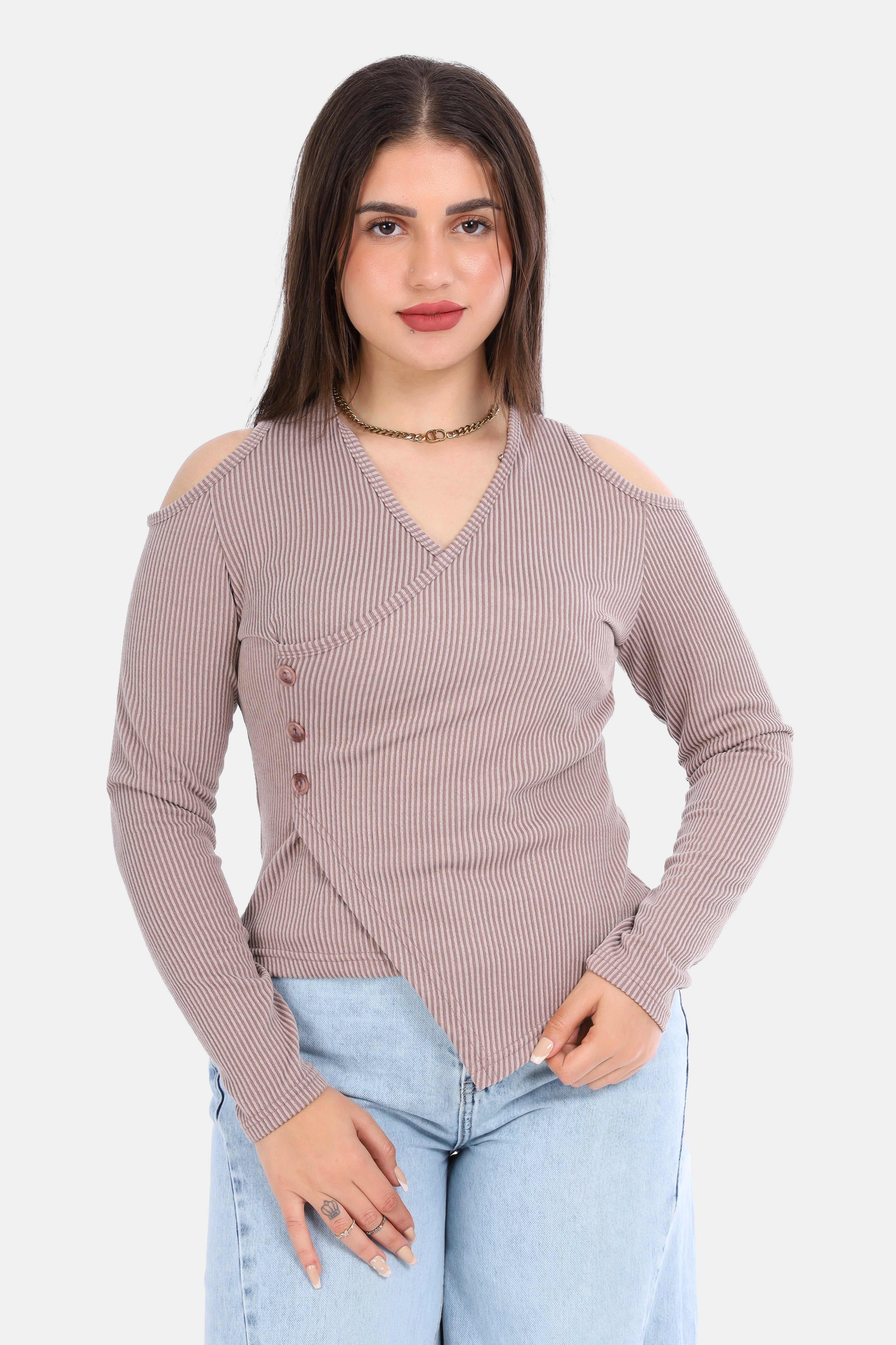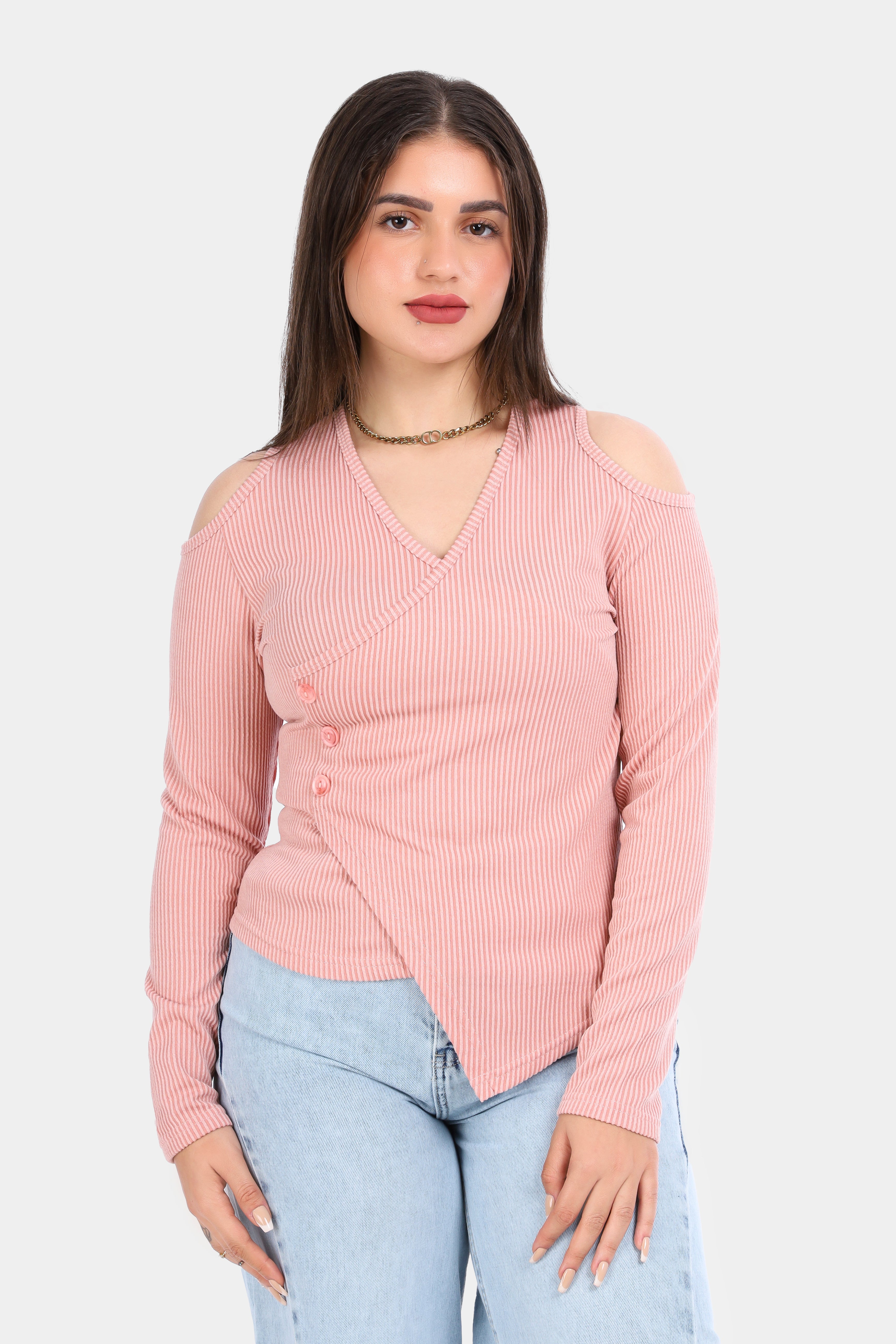 Ribbed Cold Shoulder Wrap Top 2003/011