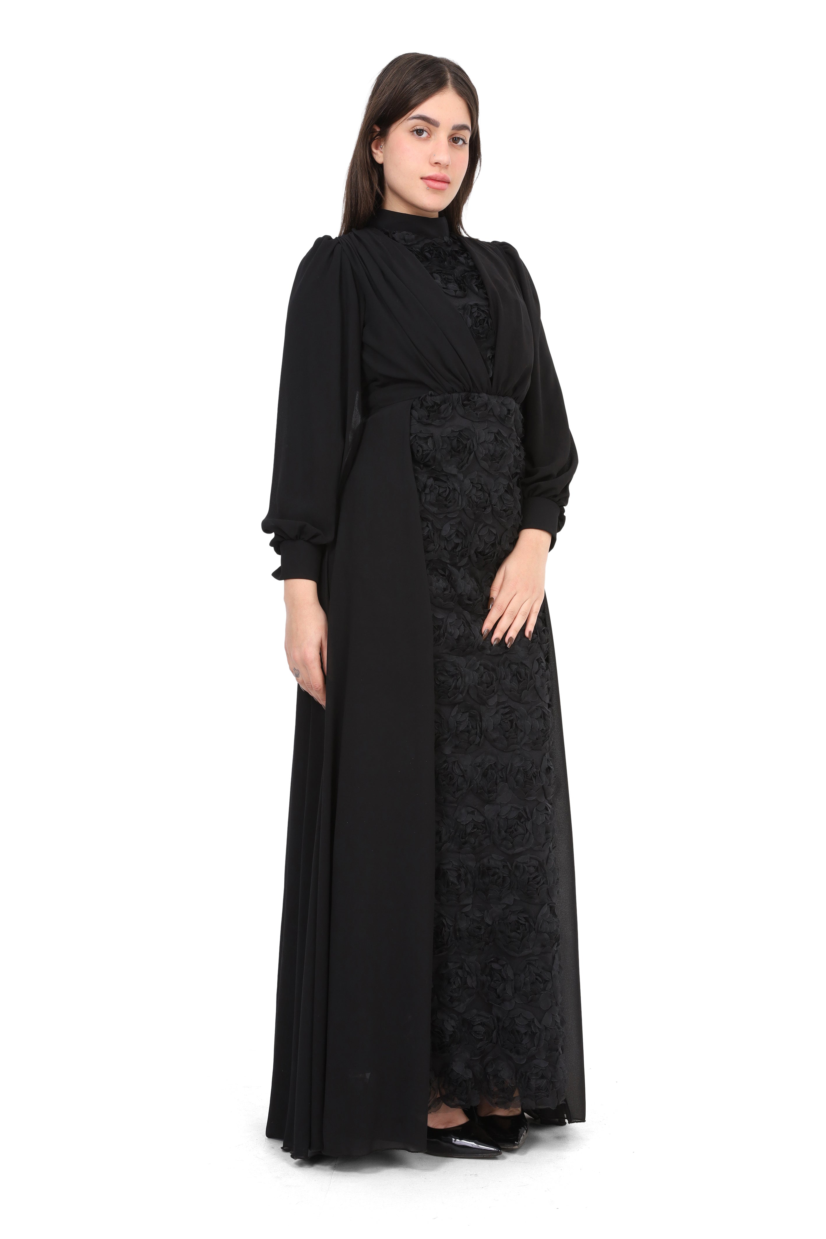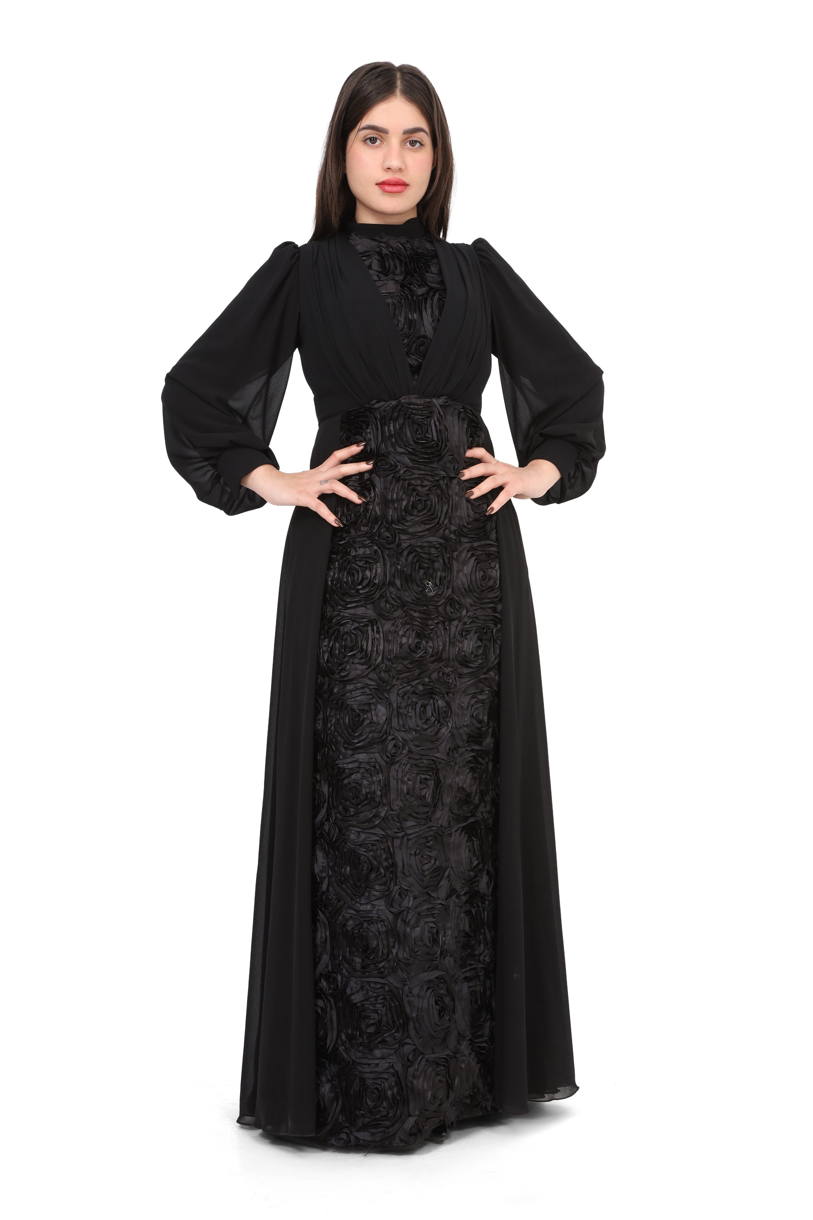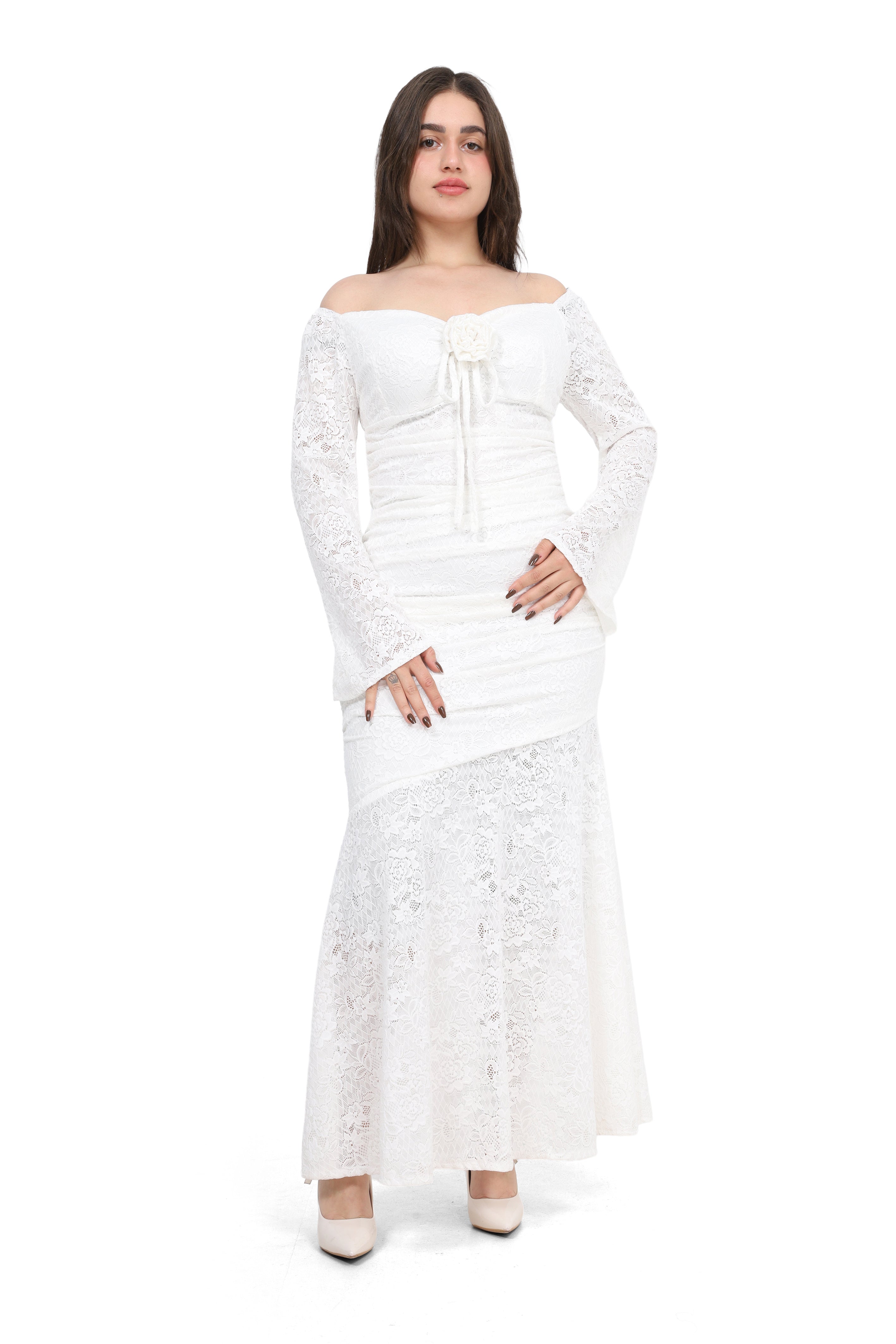 Elegant Off-Shoulder Rose Detail Dress w164883