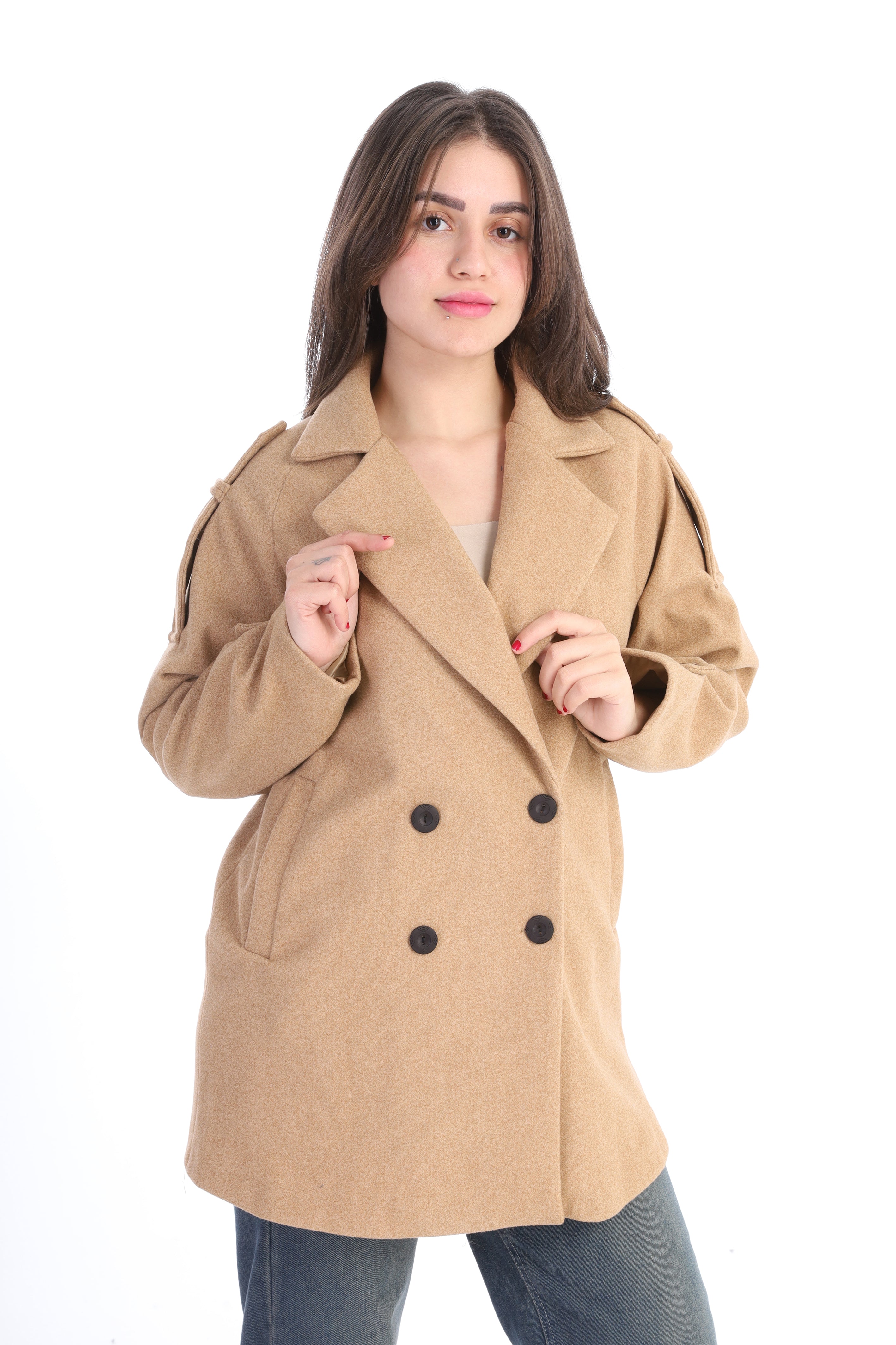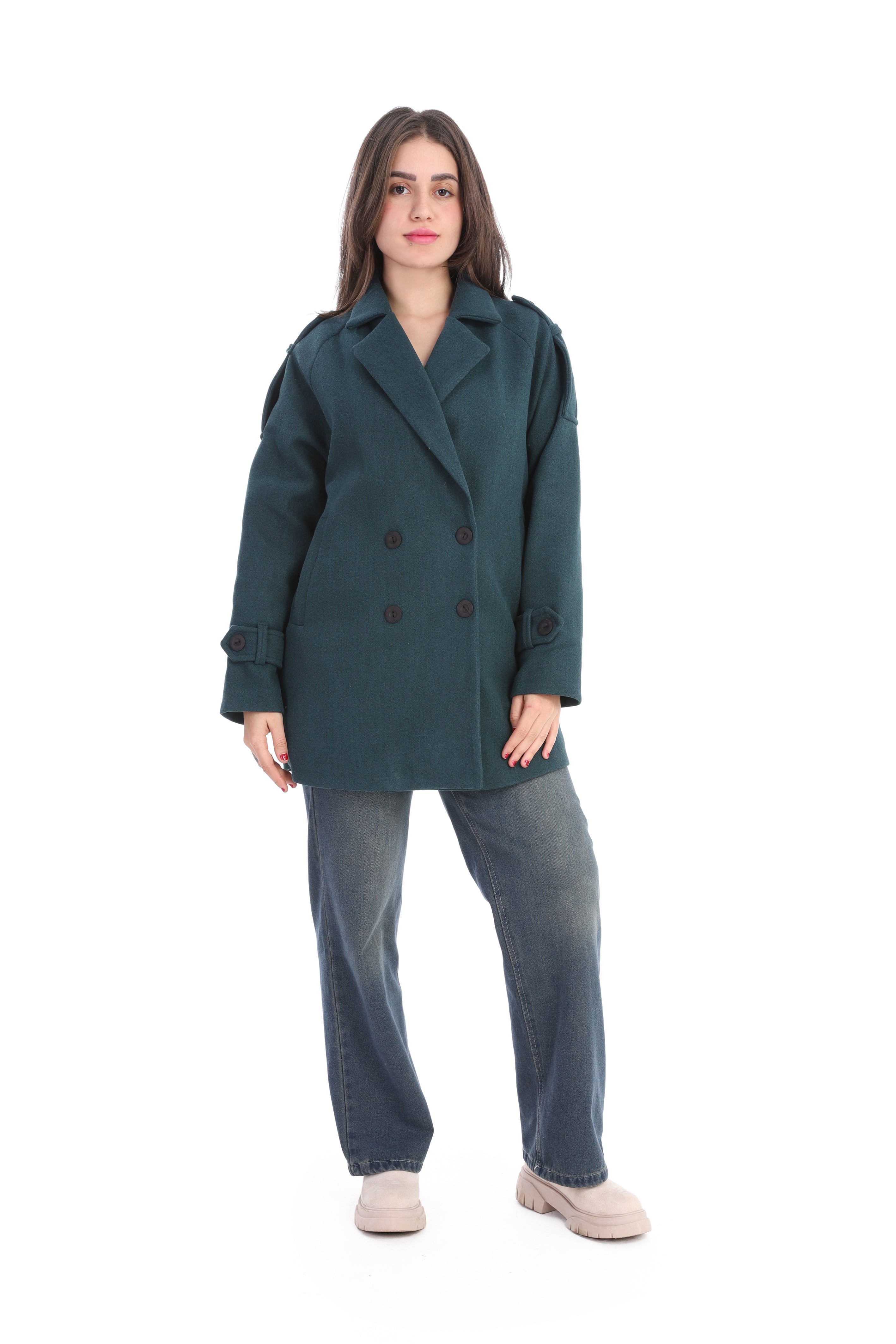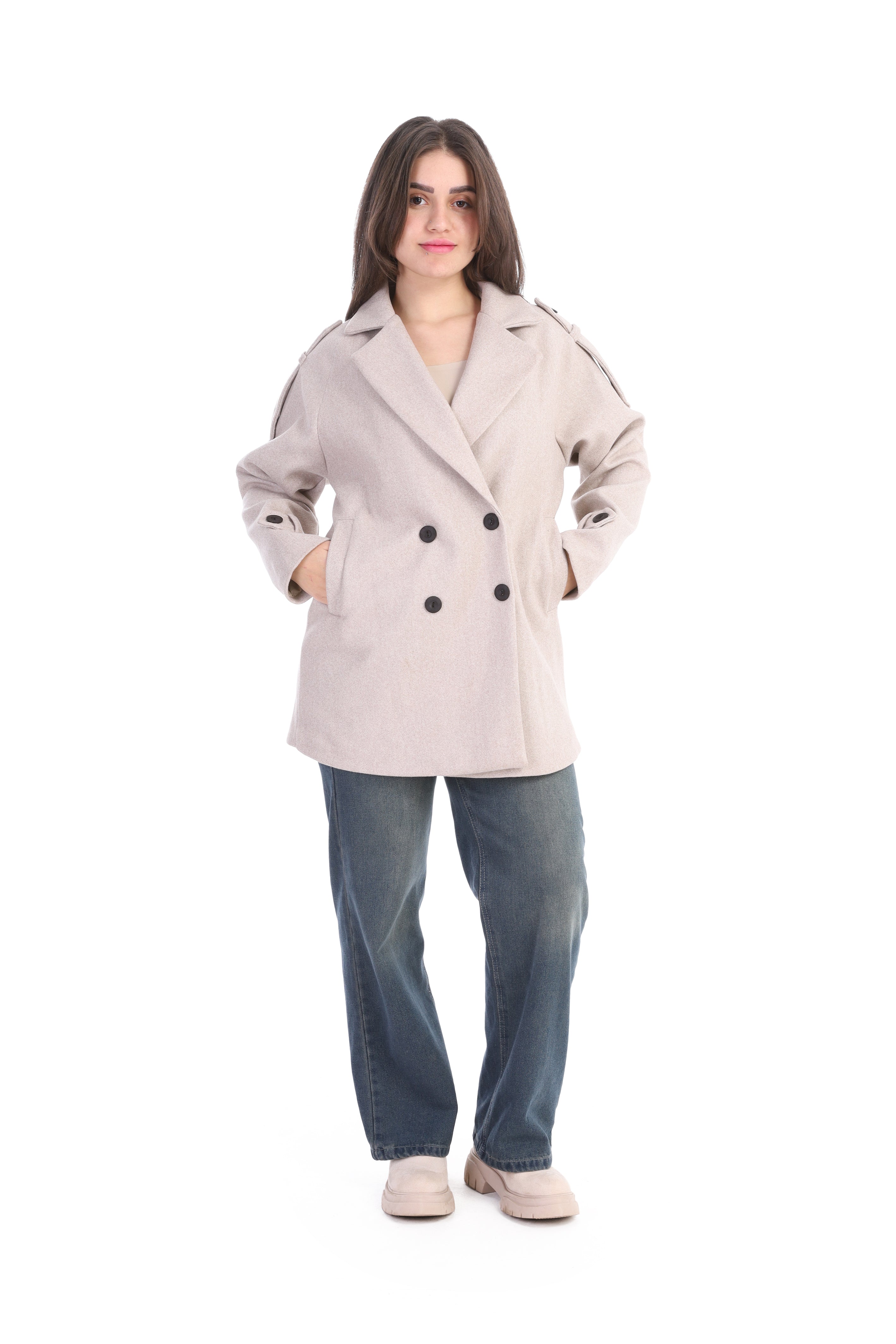 Double-Breasted Wool Blend Mid-Length Coat w1631/355