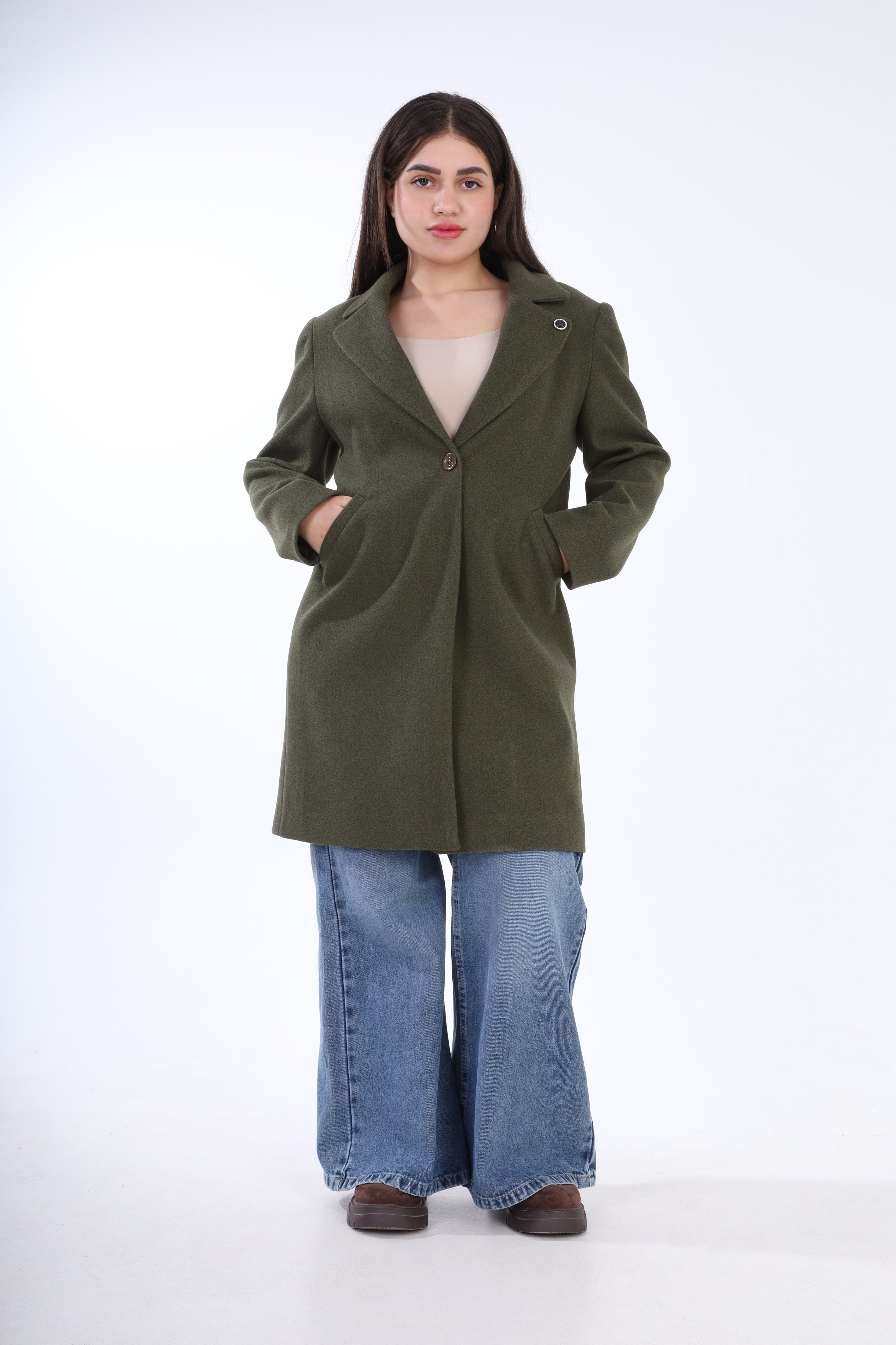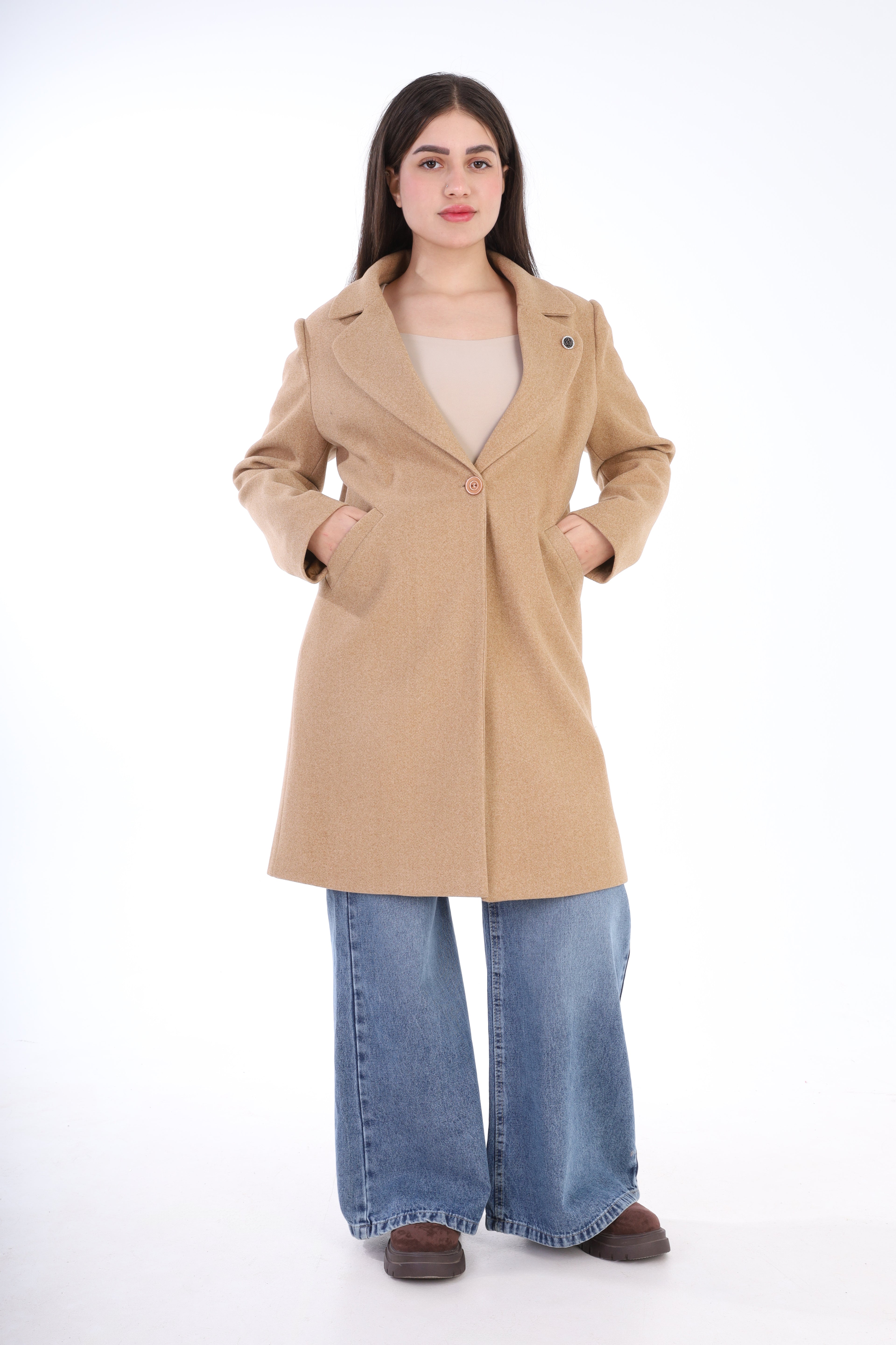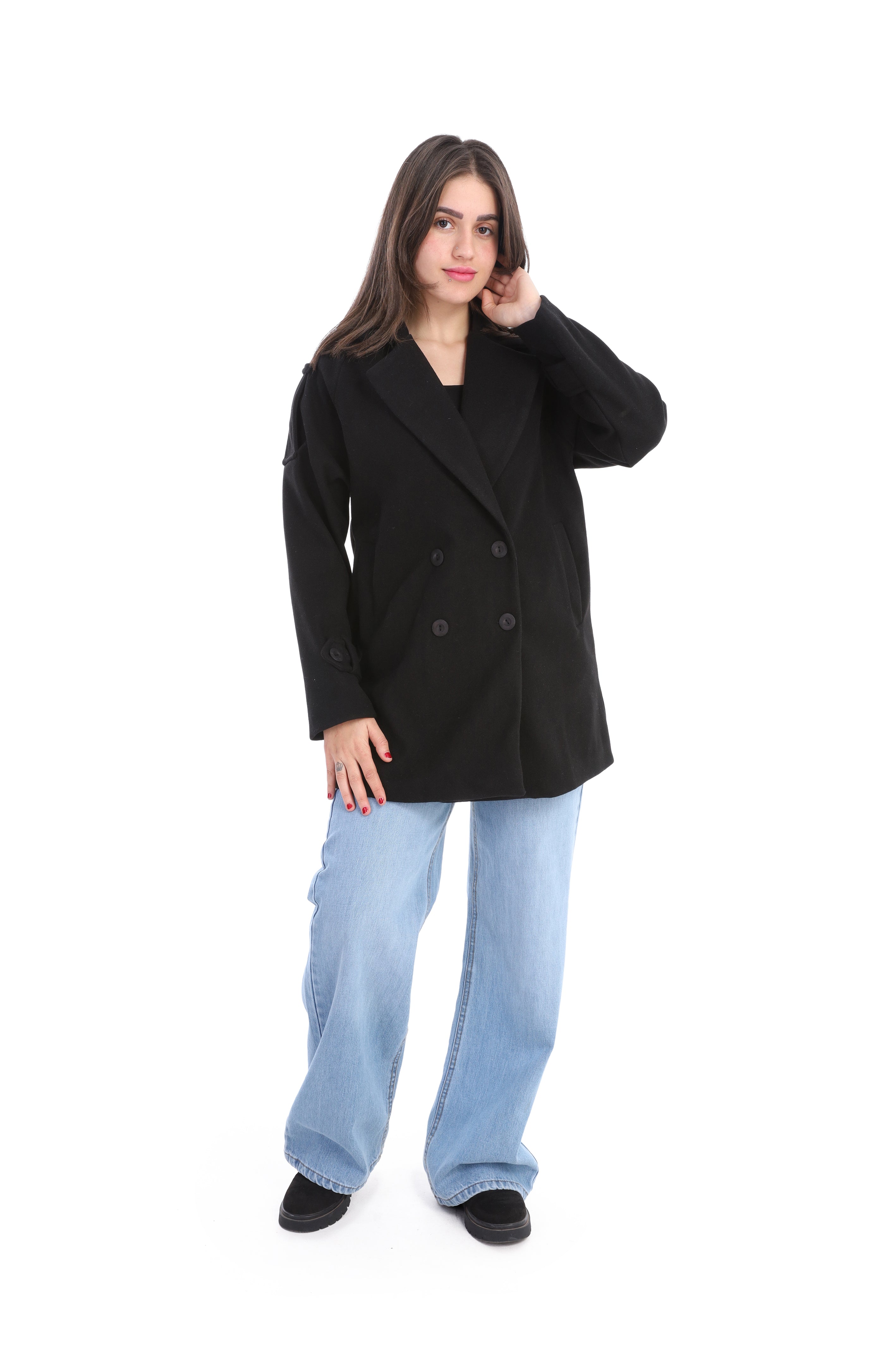 Double-Breasted Wool Blend Mid-Length Coat w1631/355