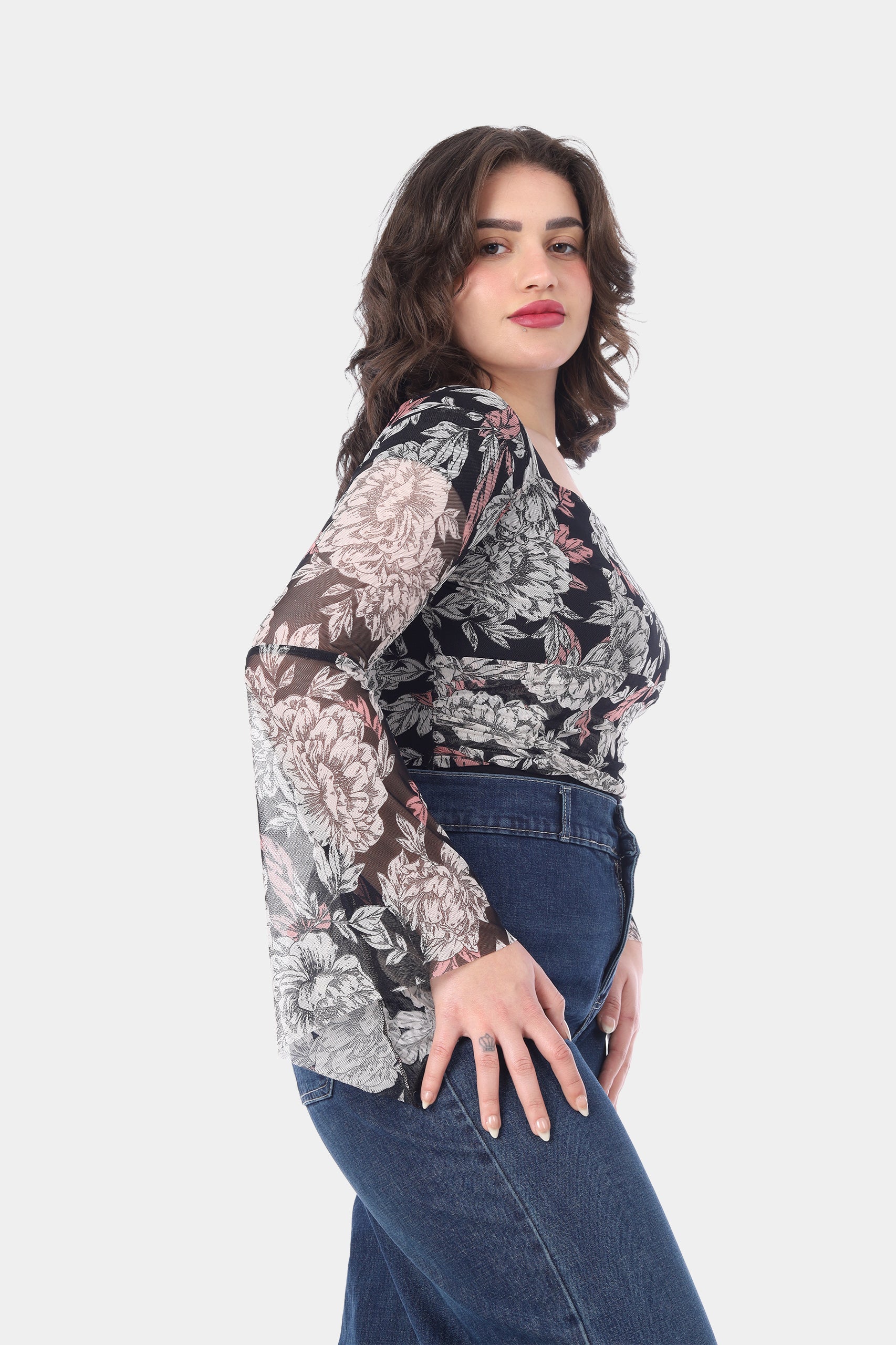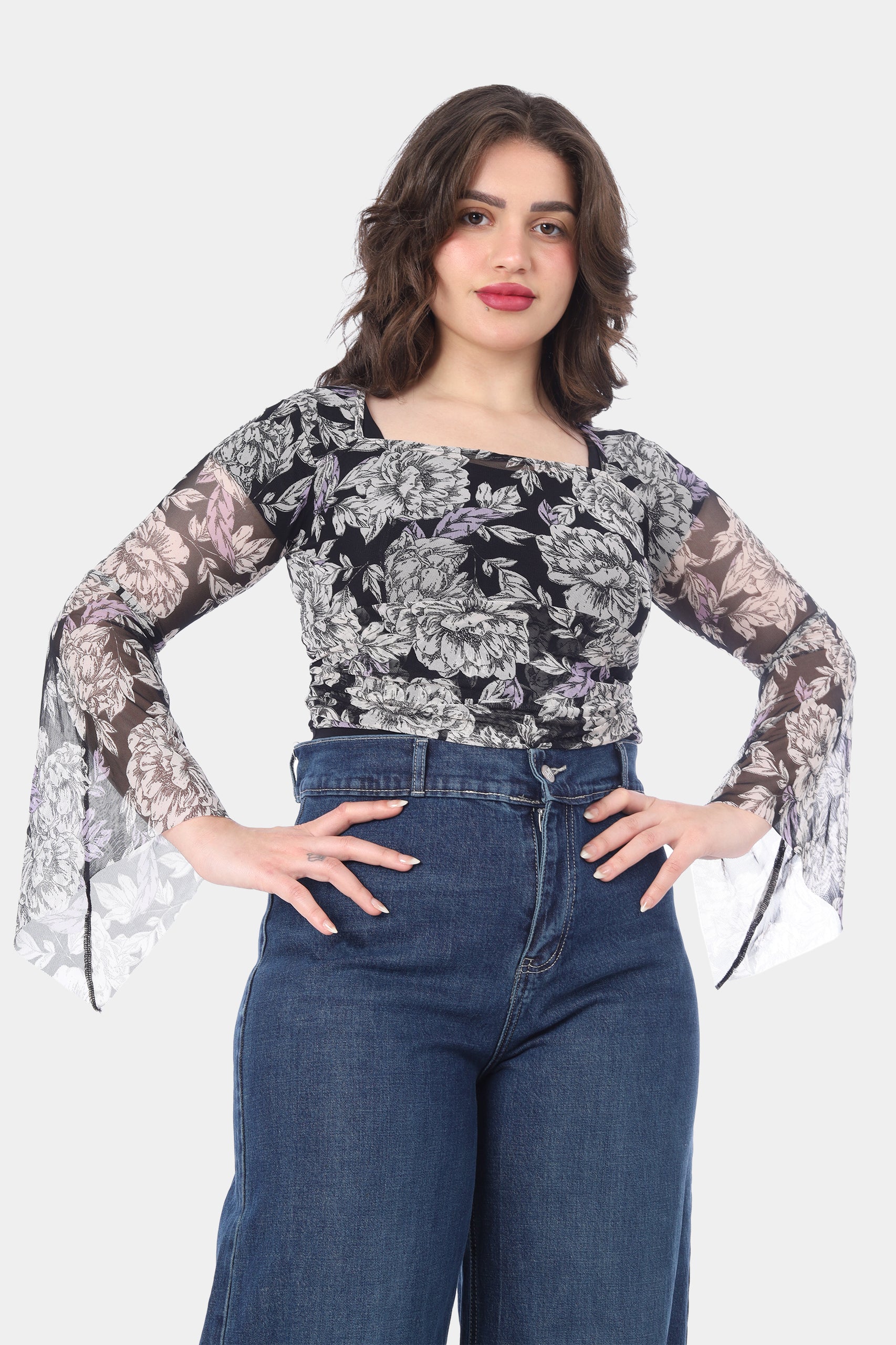Cropped V-Neck Blouse with Wide Sleeves s1523597