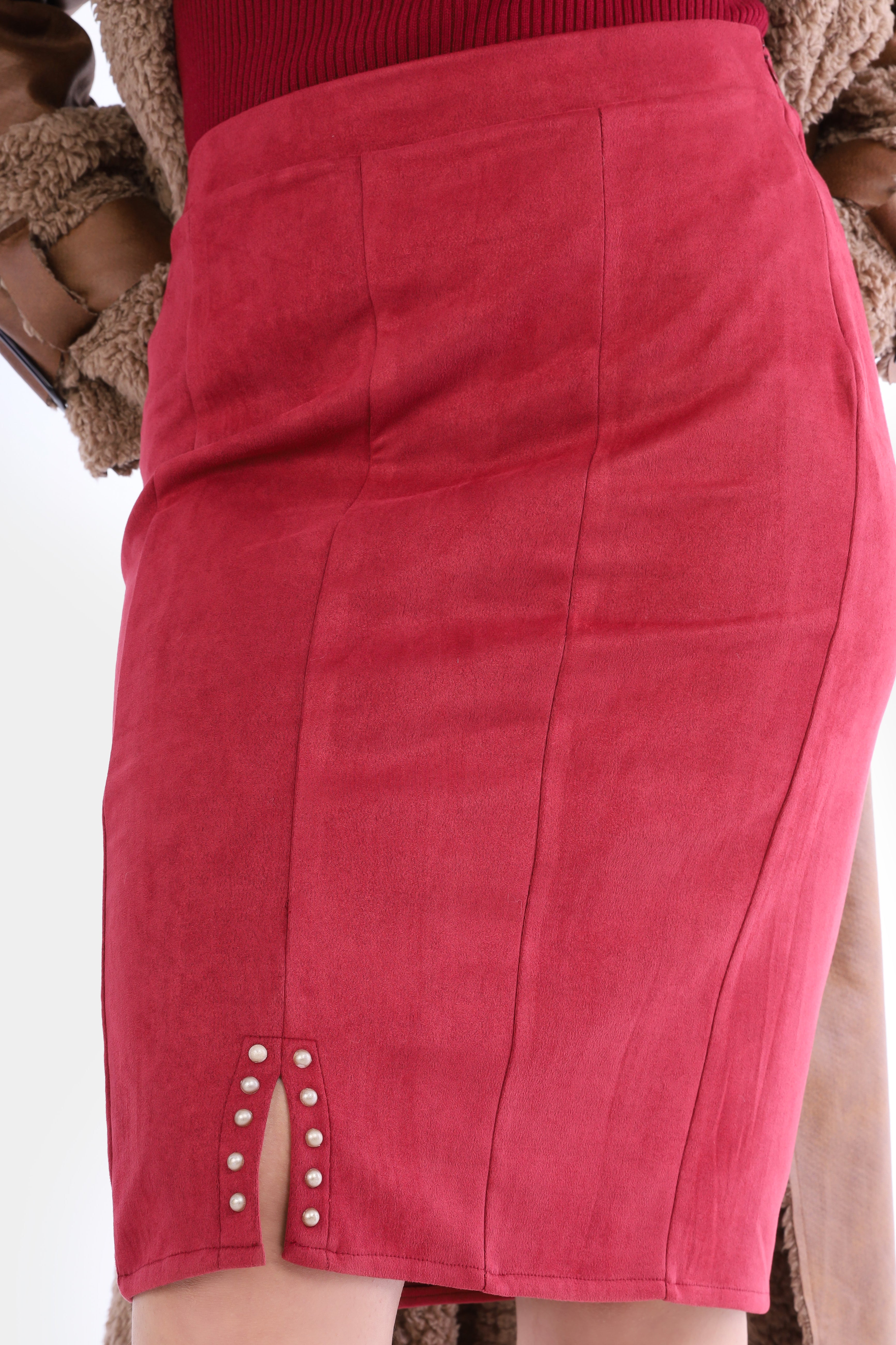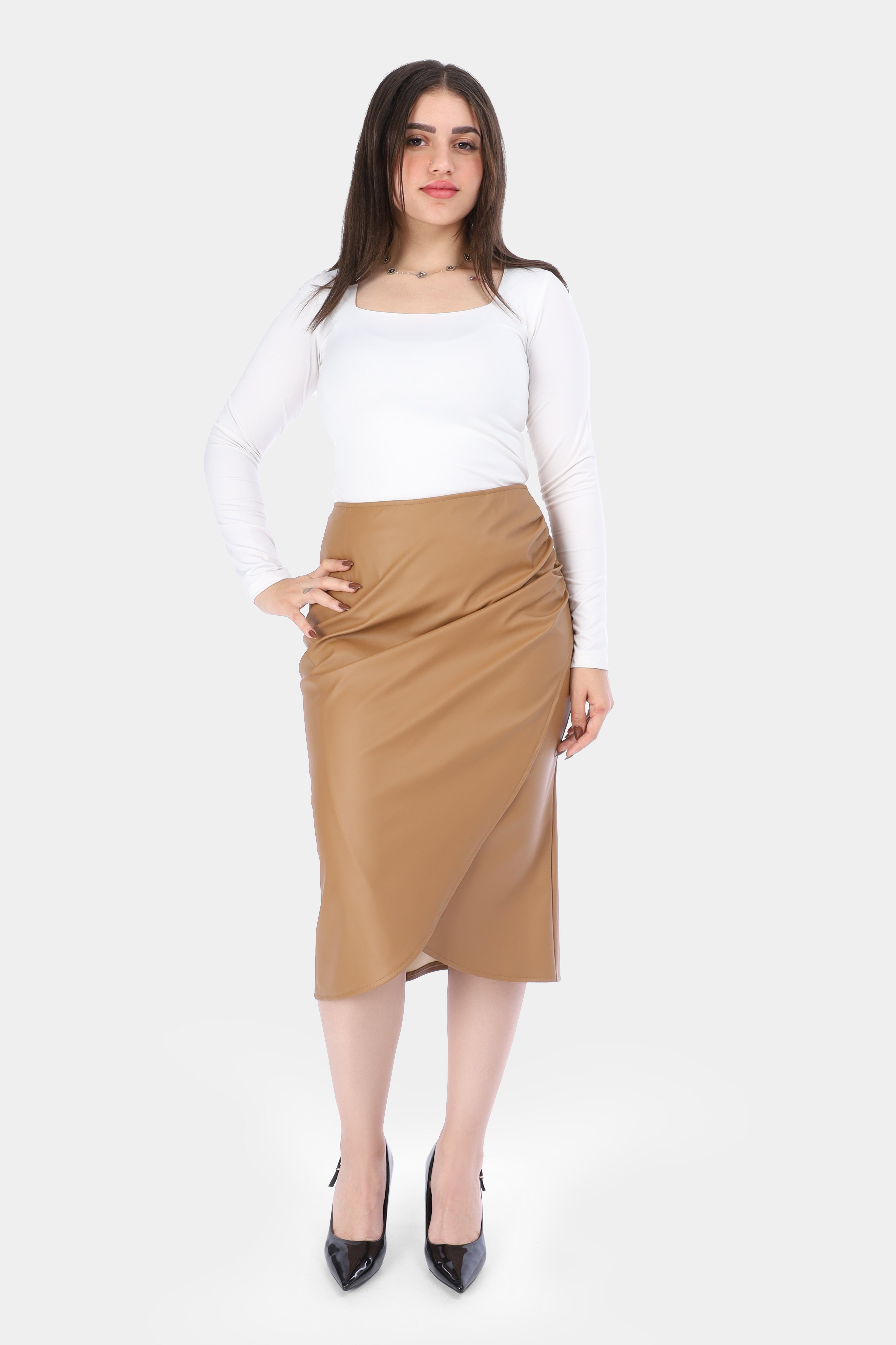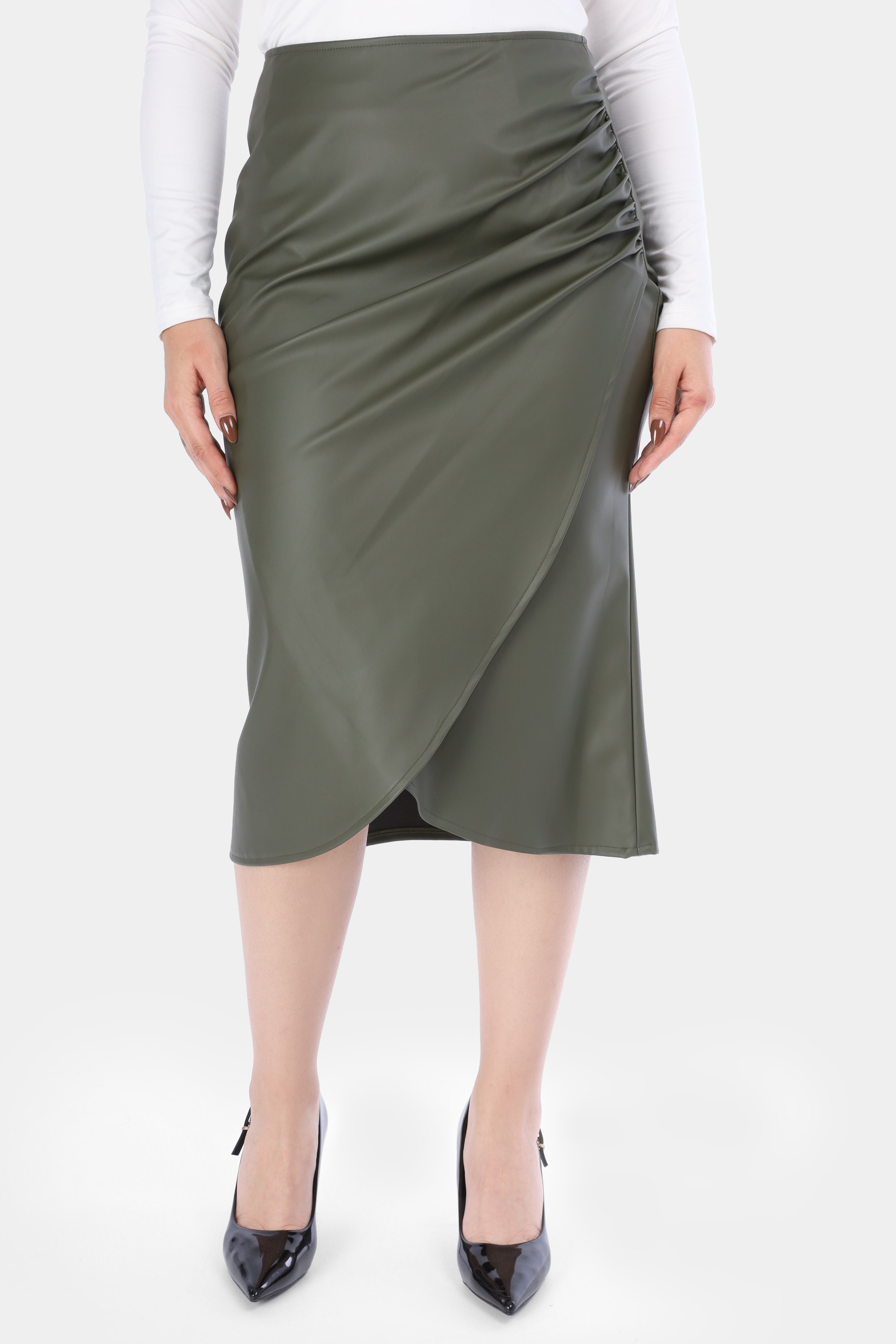 Wrap-Style Faux Leather Midi Skirt w1630/80