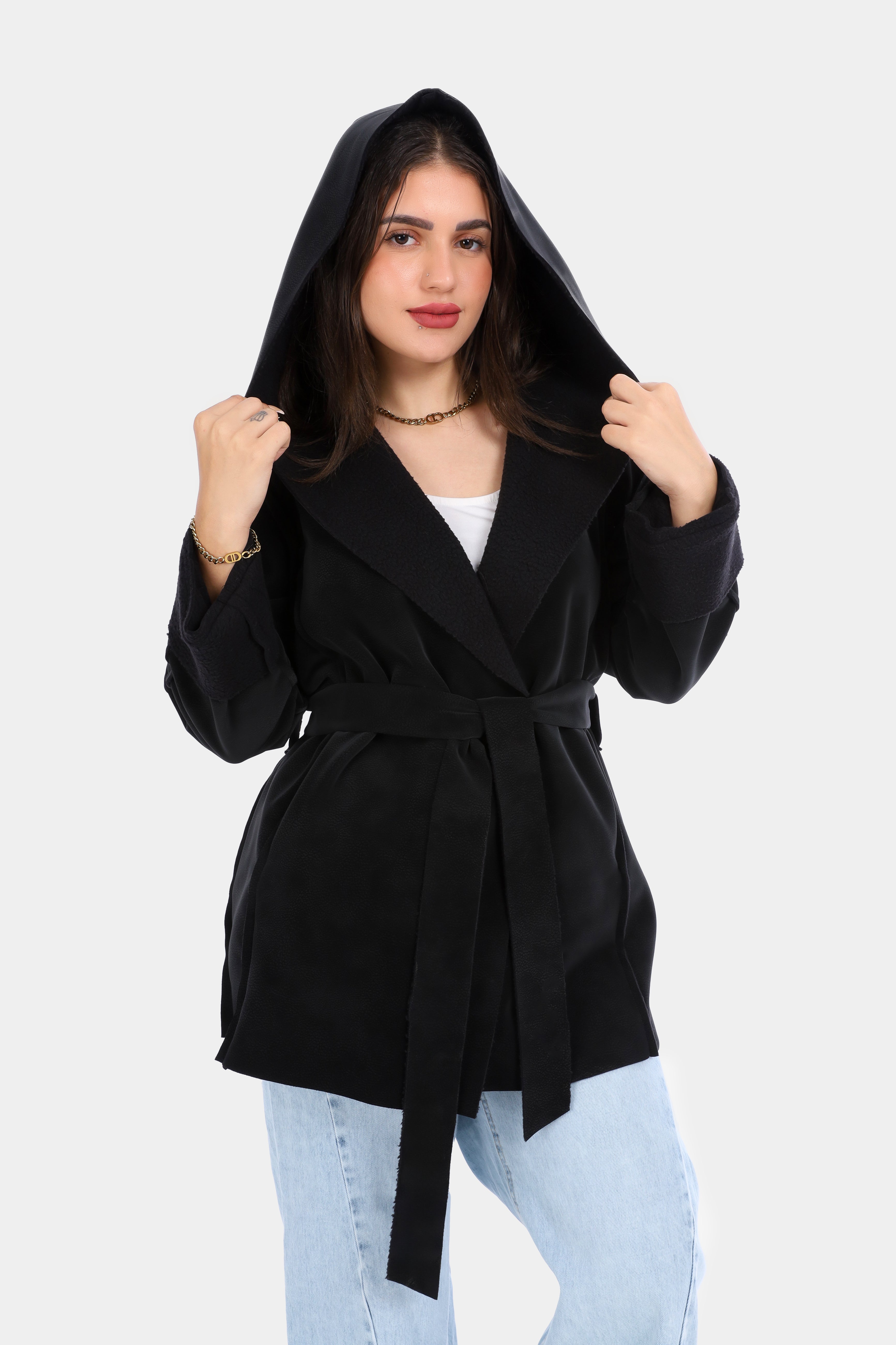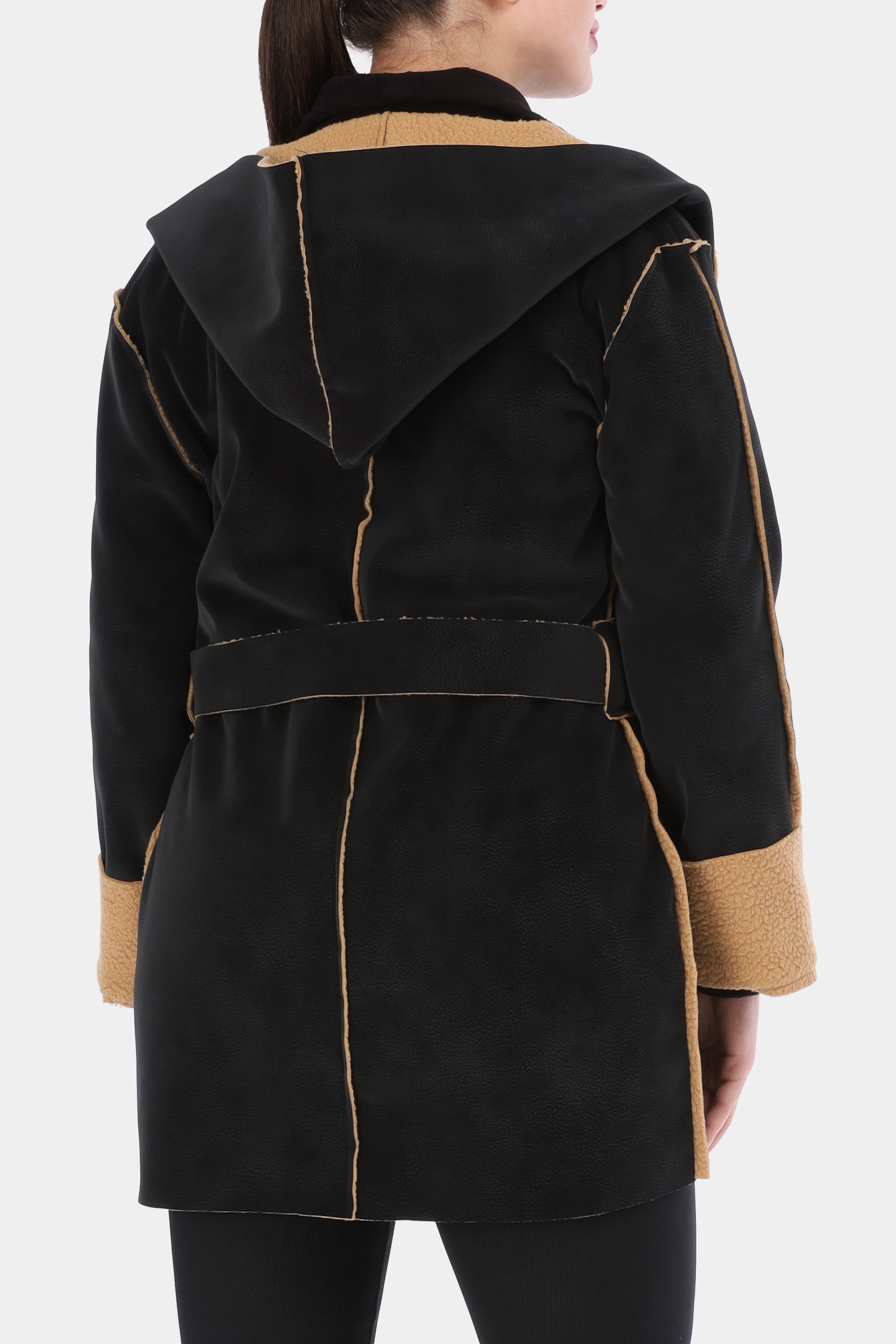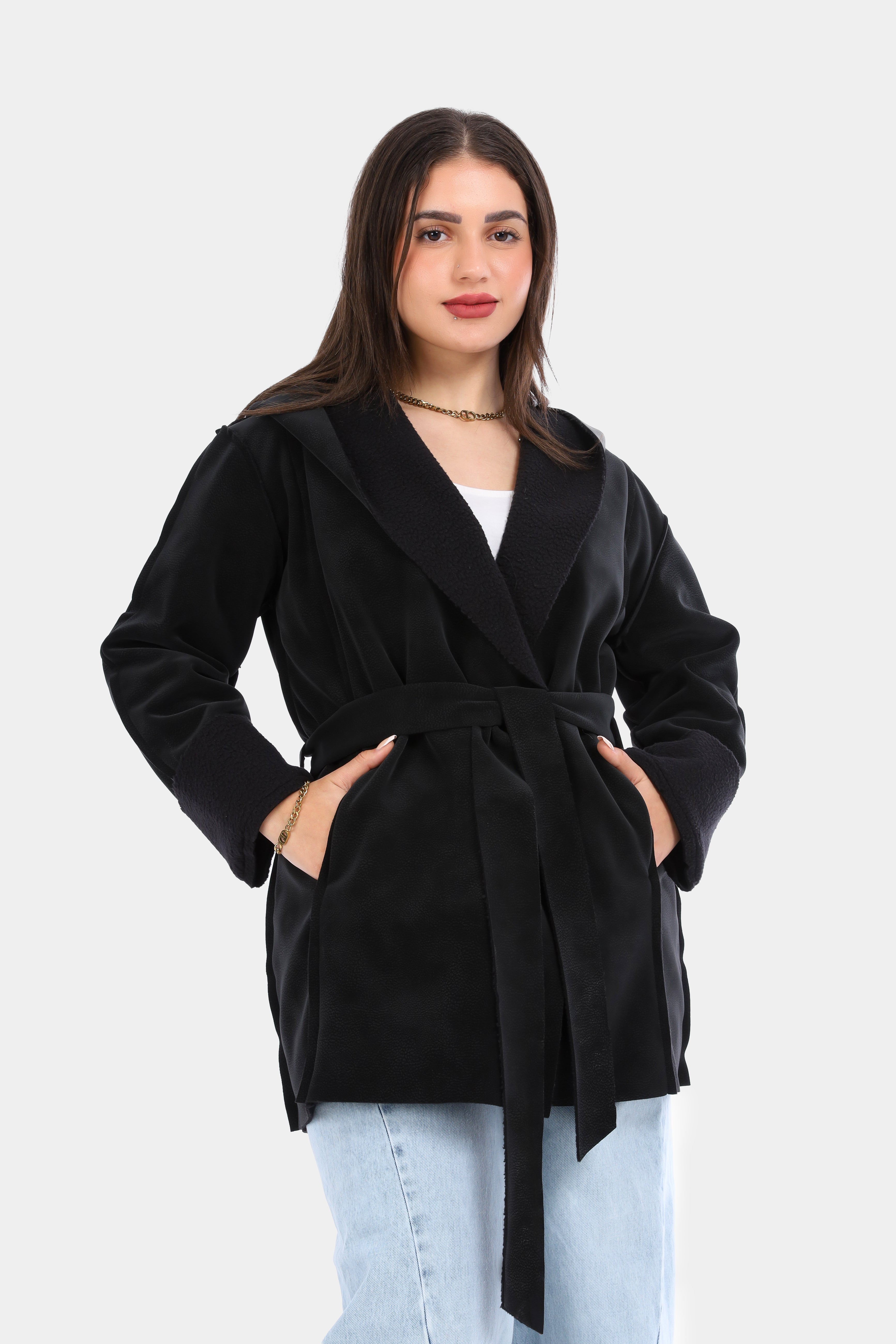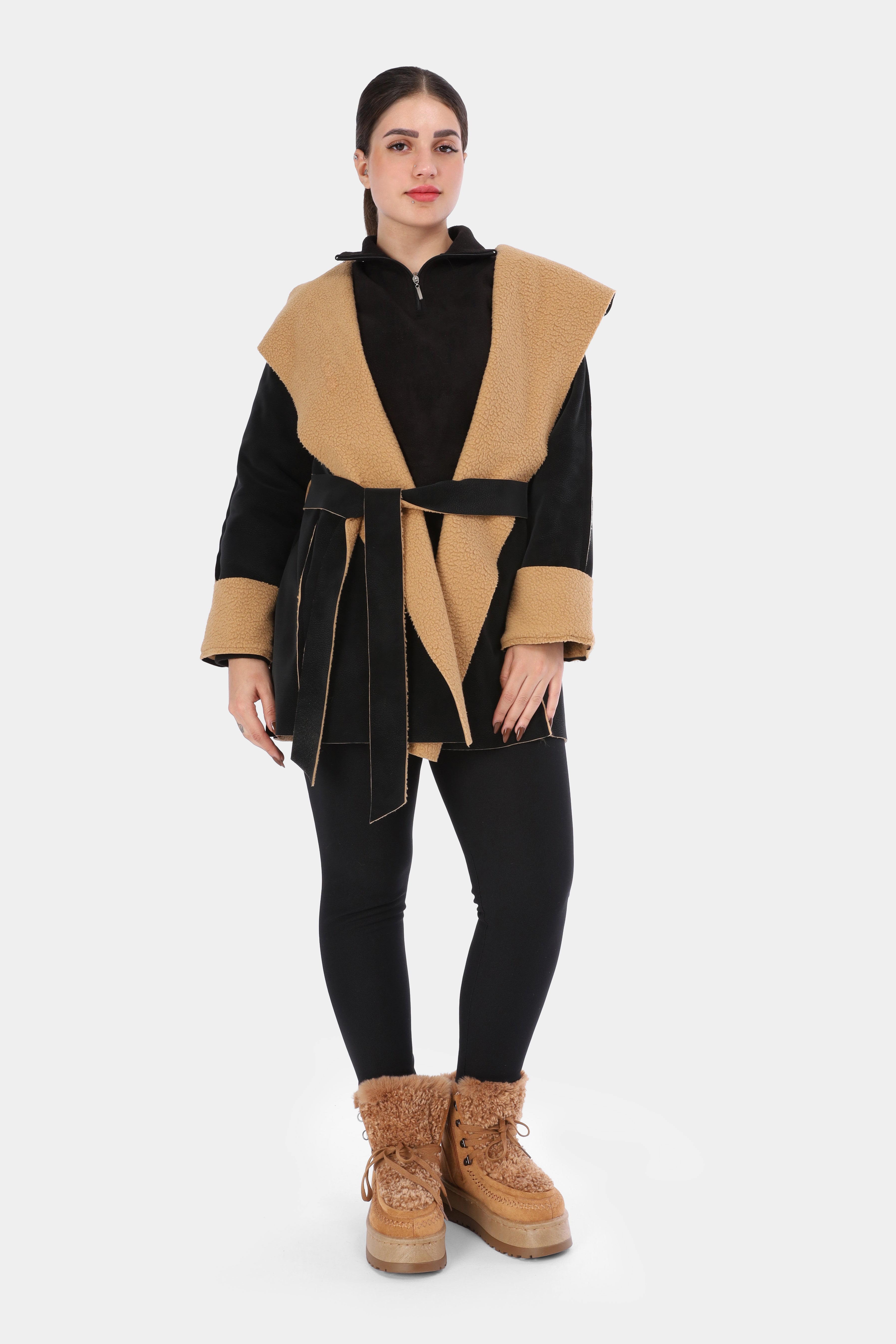 Faux Fur Jacket with Double-Side Belt Detail w1631/351