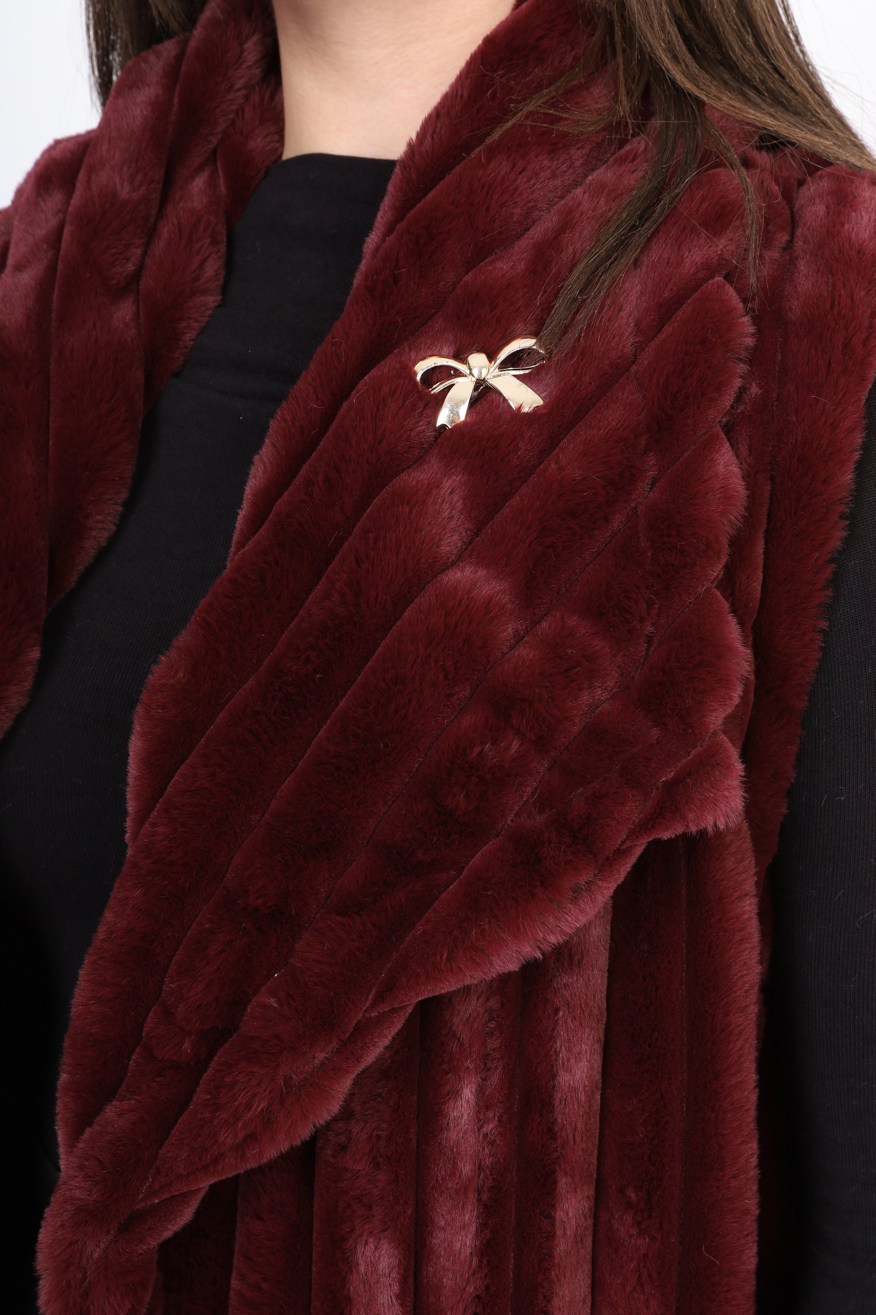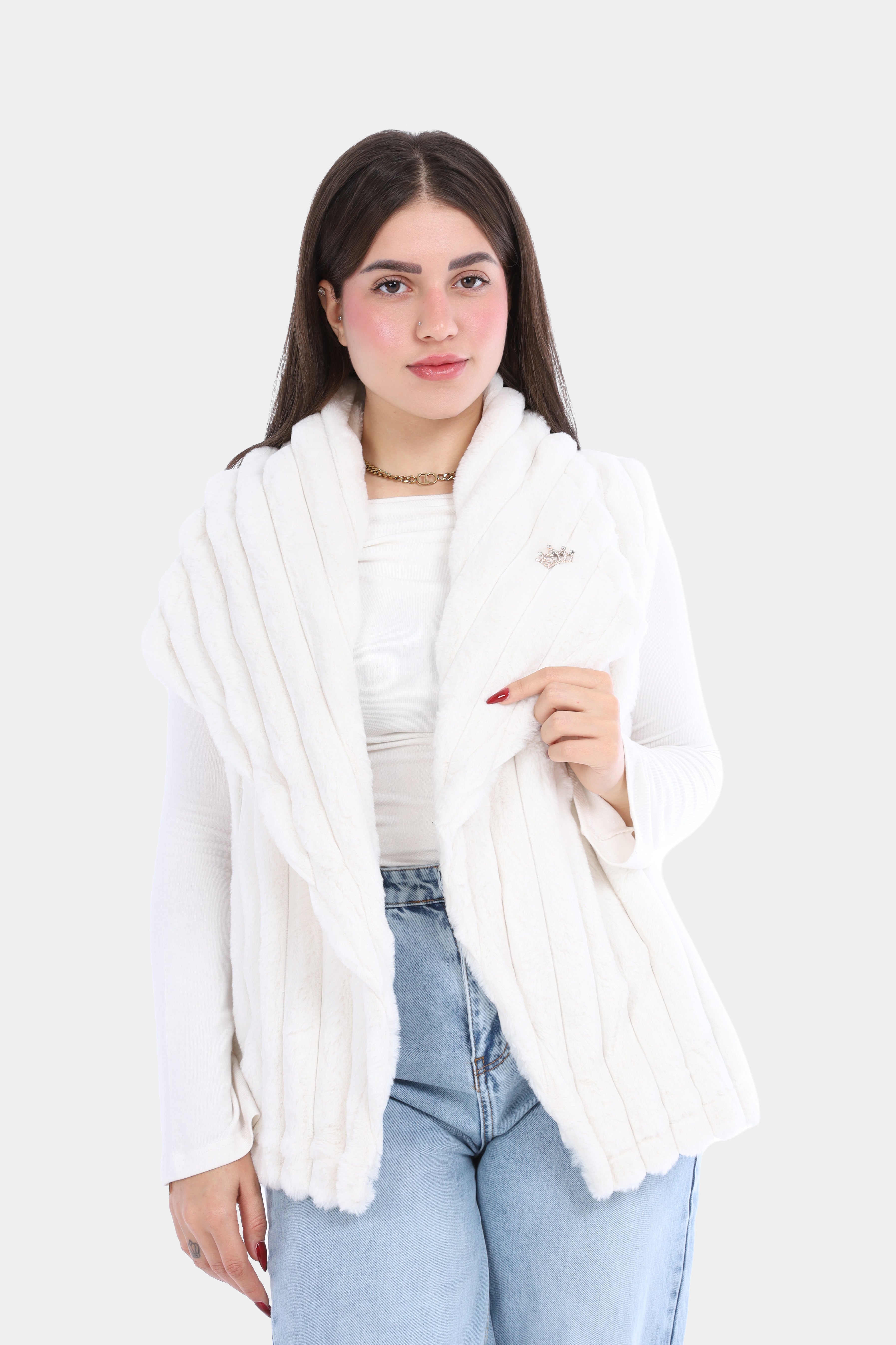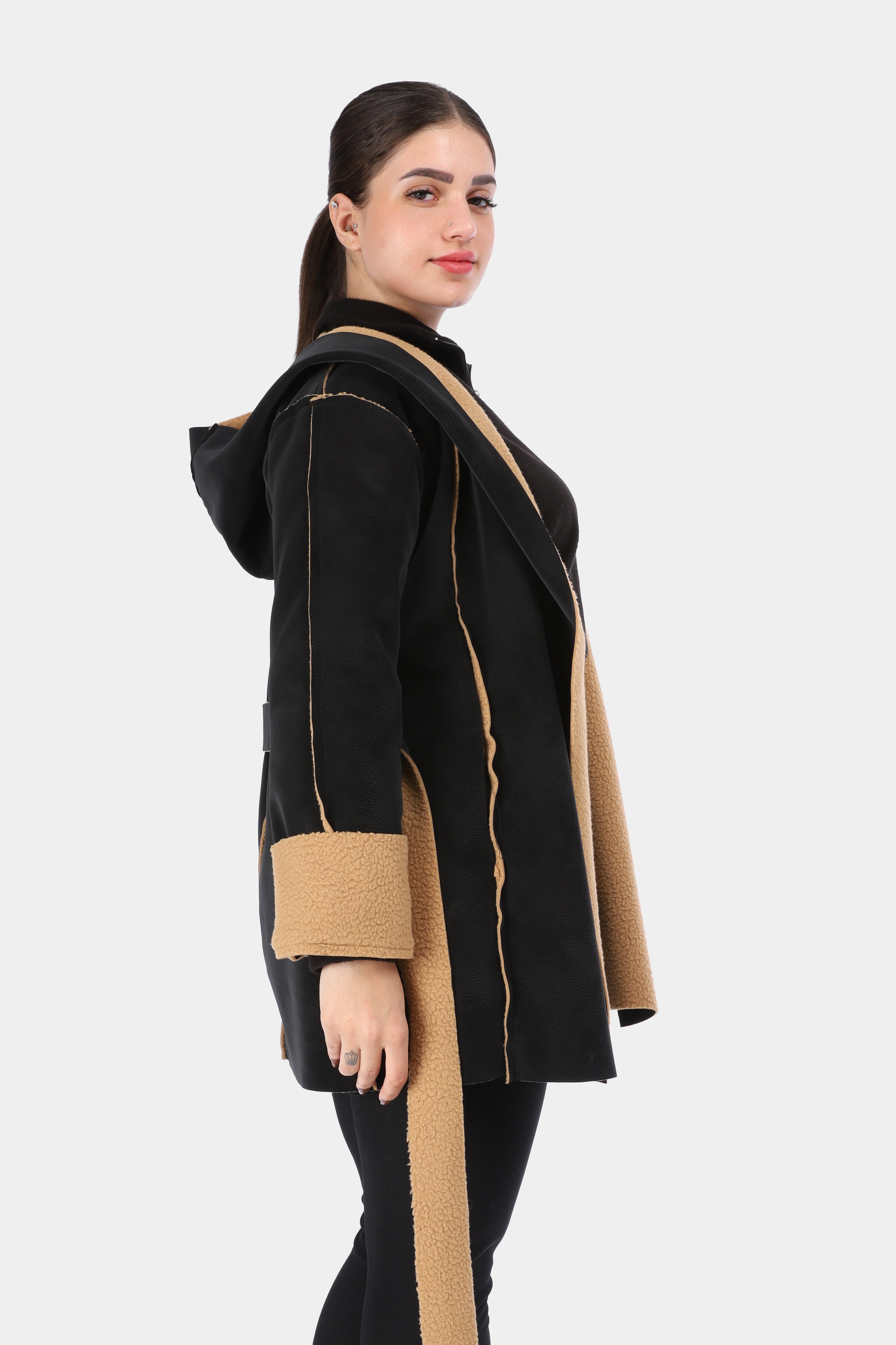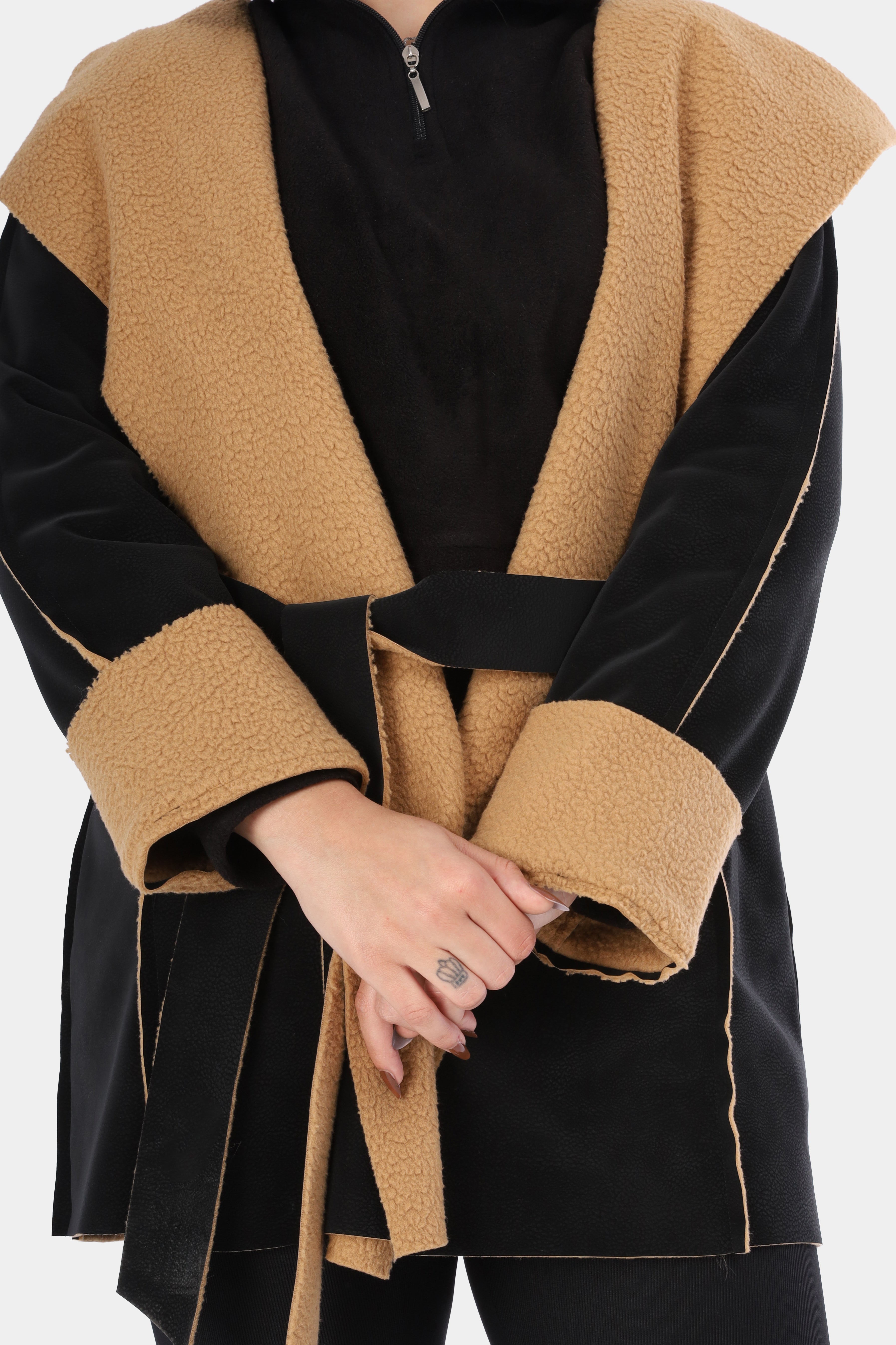Faux Fur Jacket with Double-Side Belt Detail w1631/351