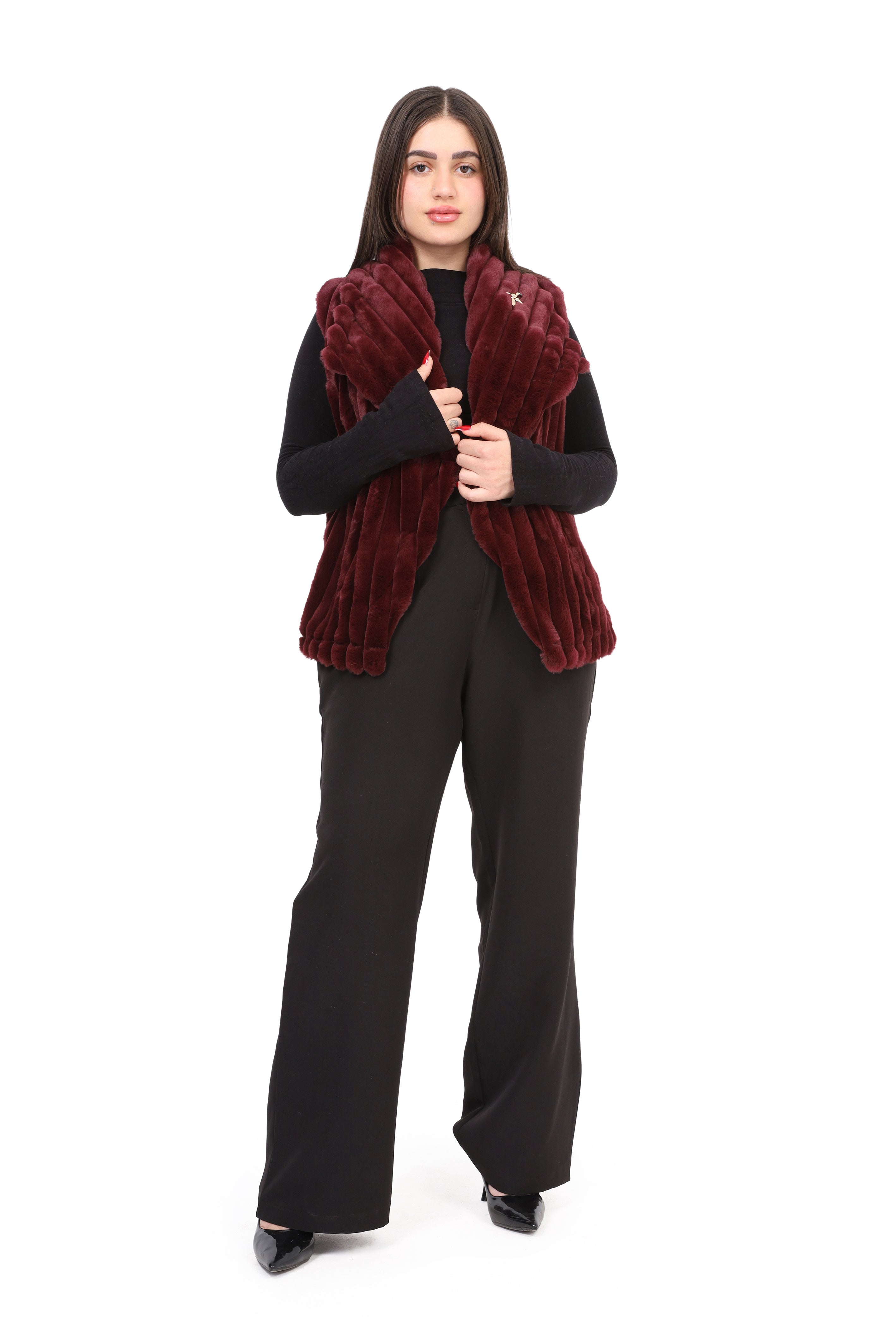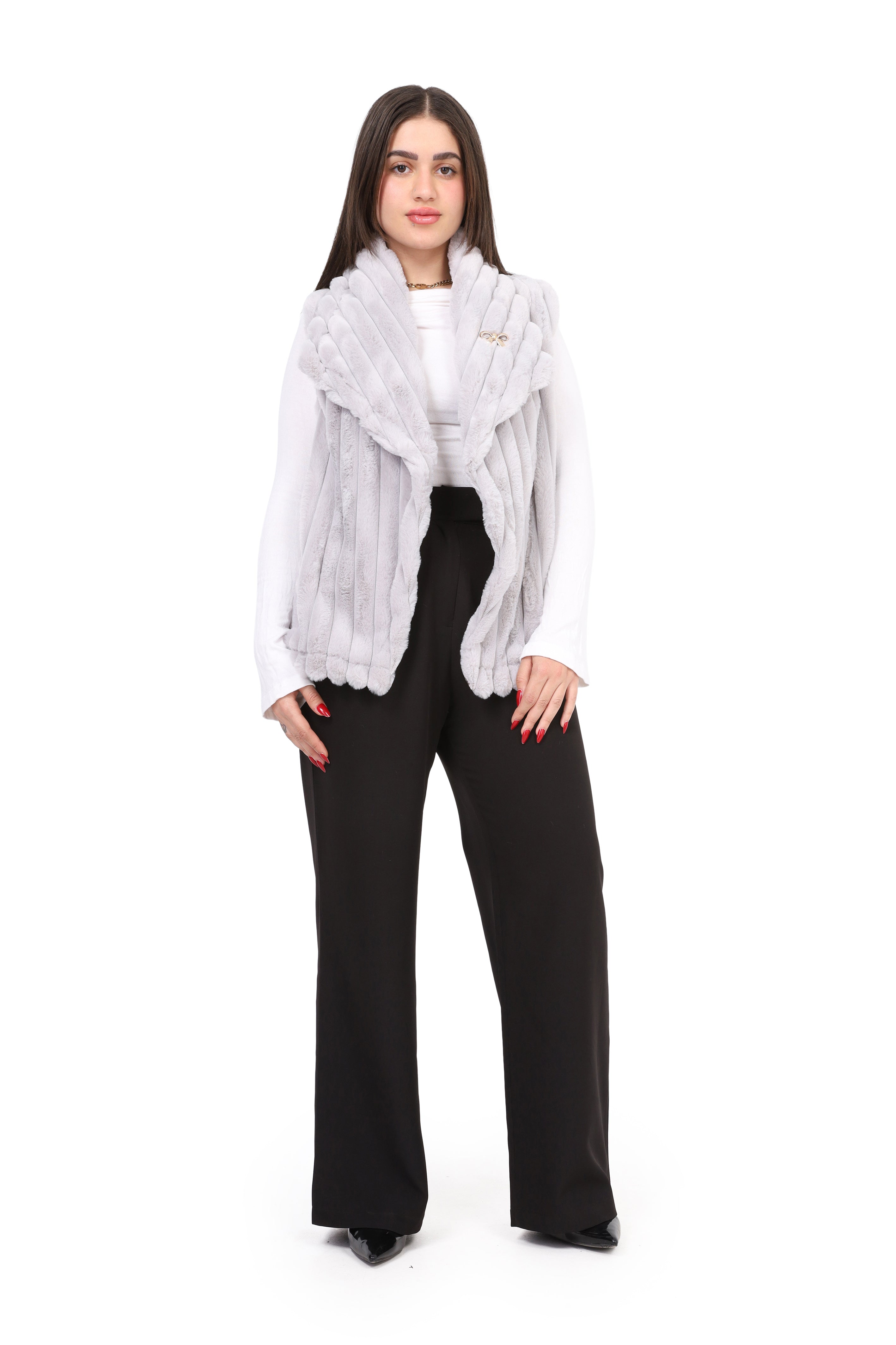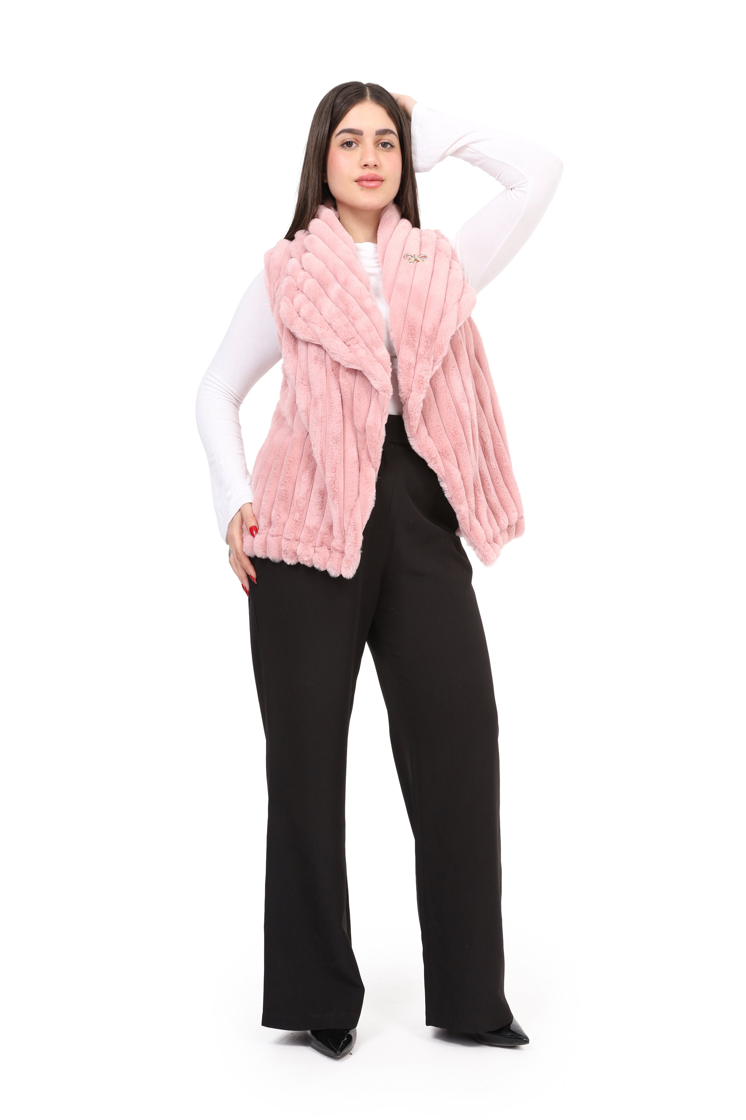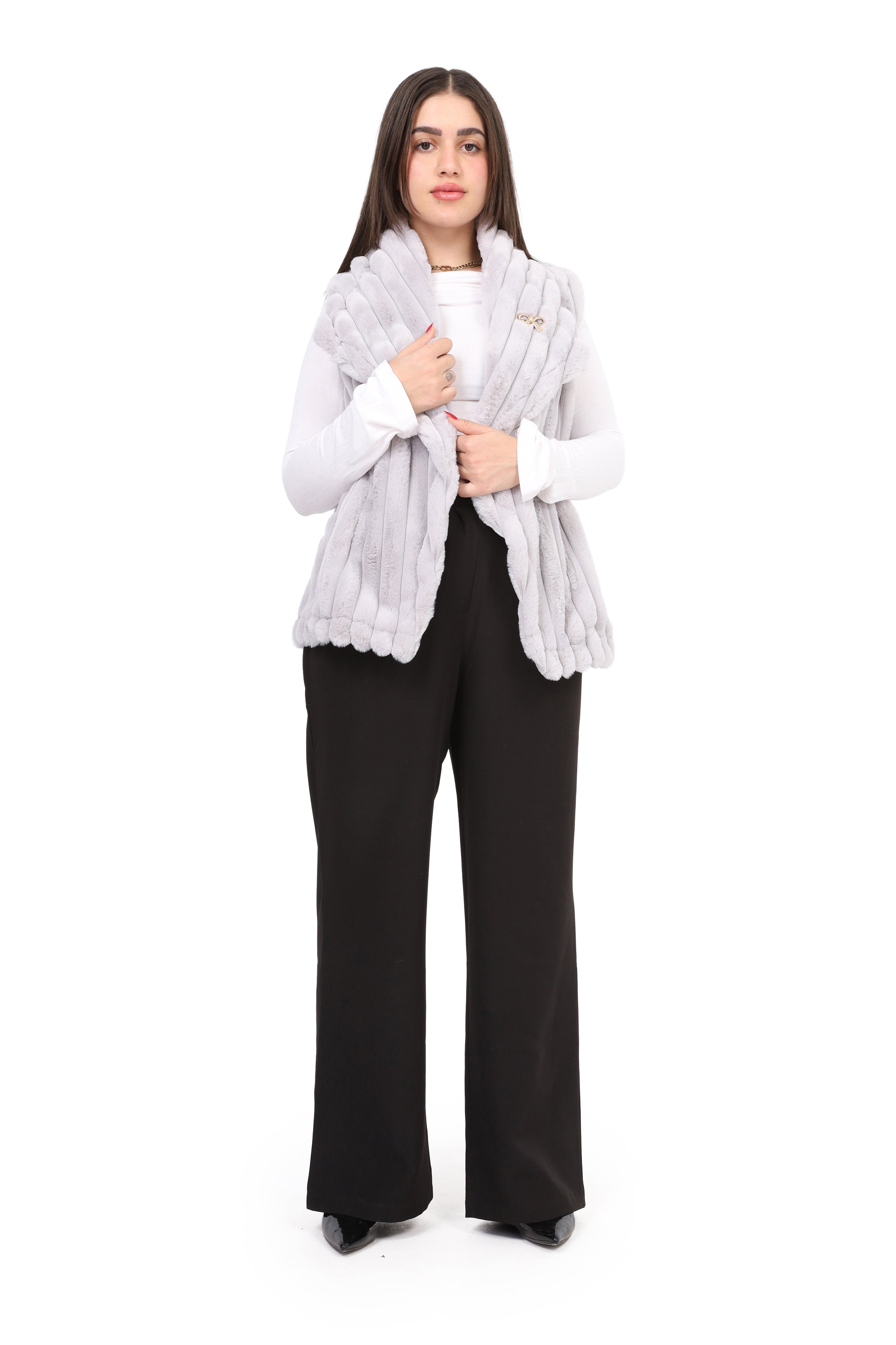 Faux Fur Jacket with Double-Side Belt Detail w1631/351