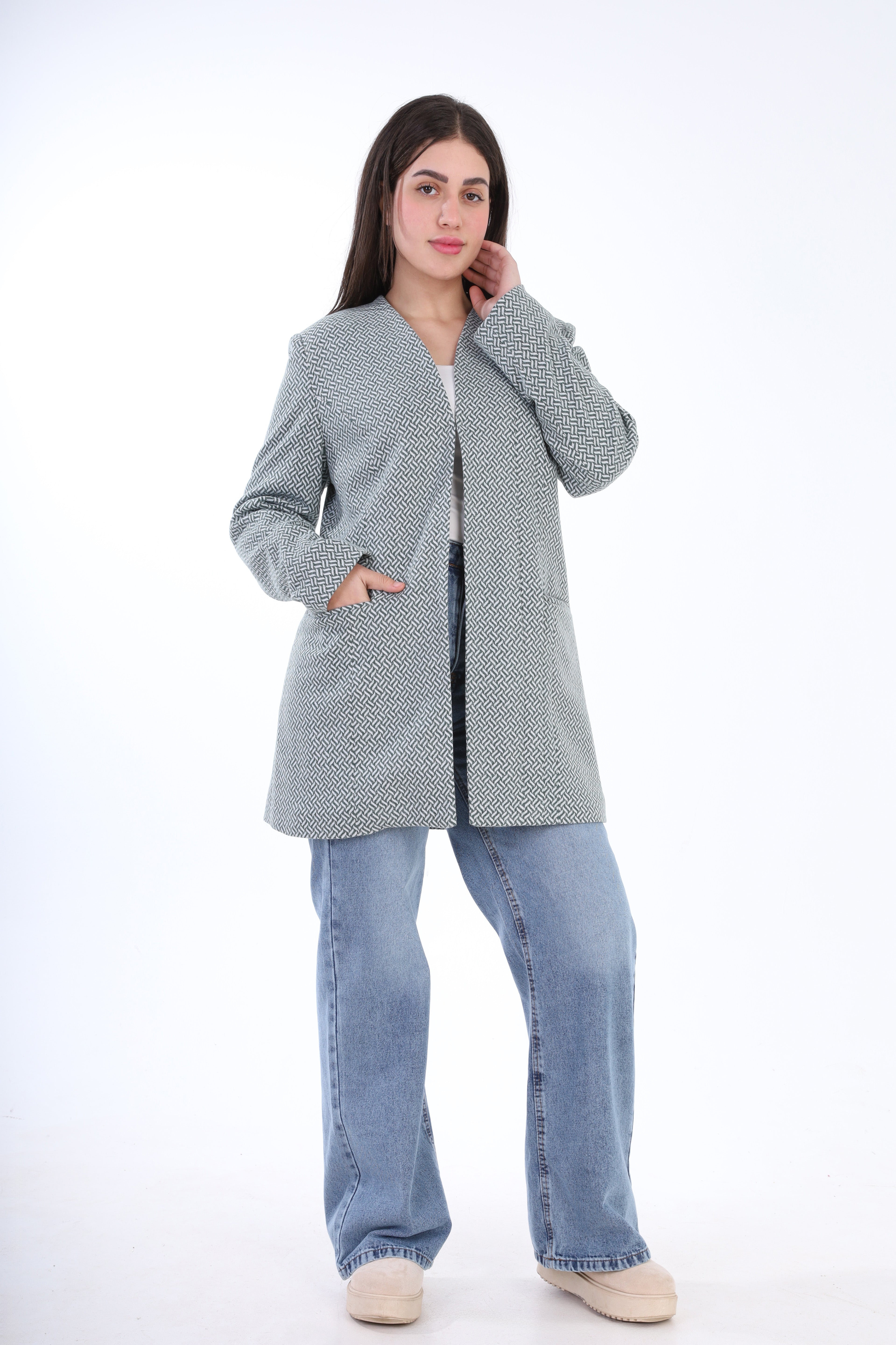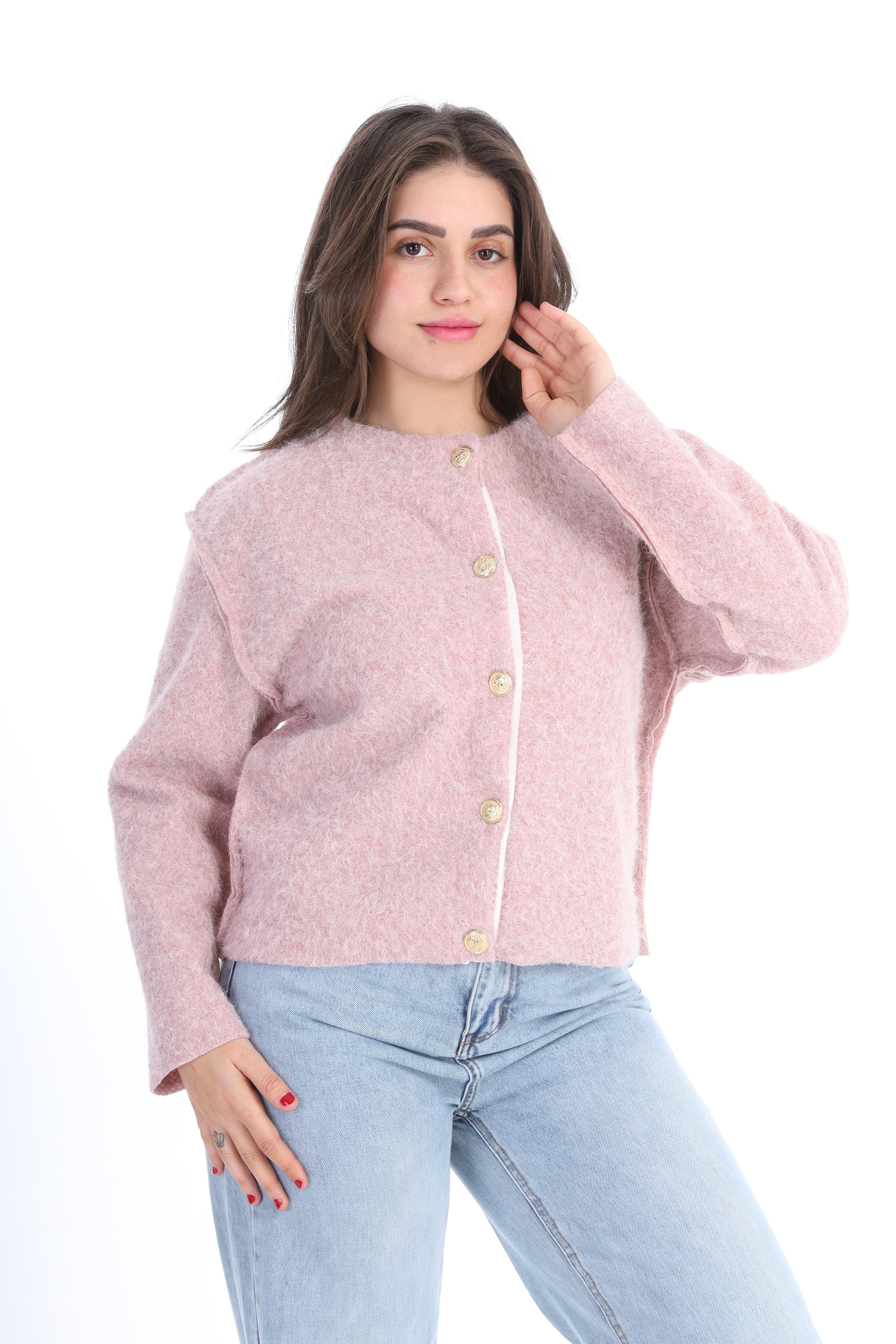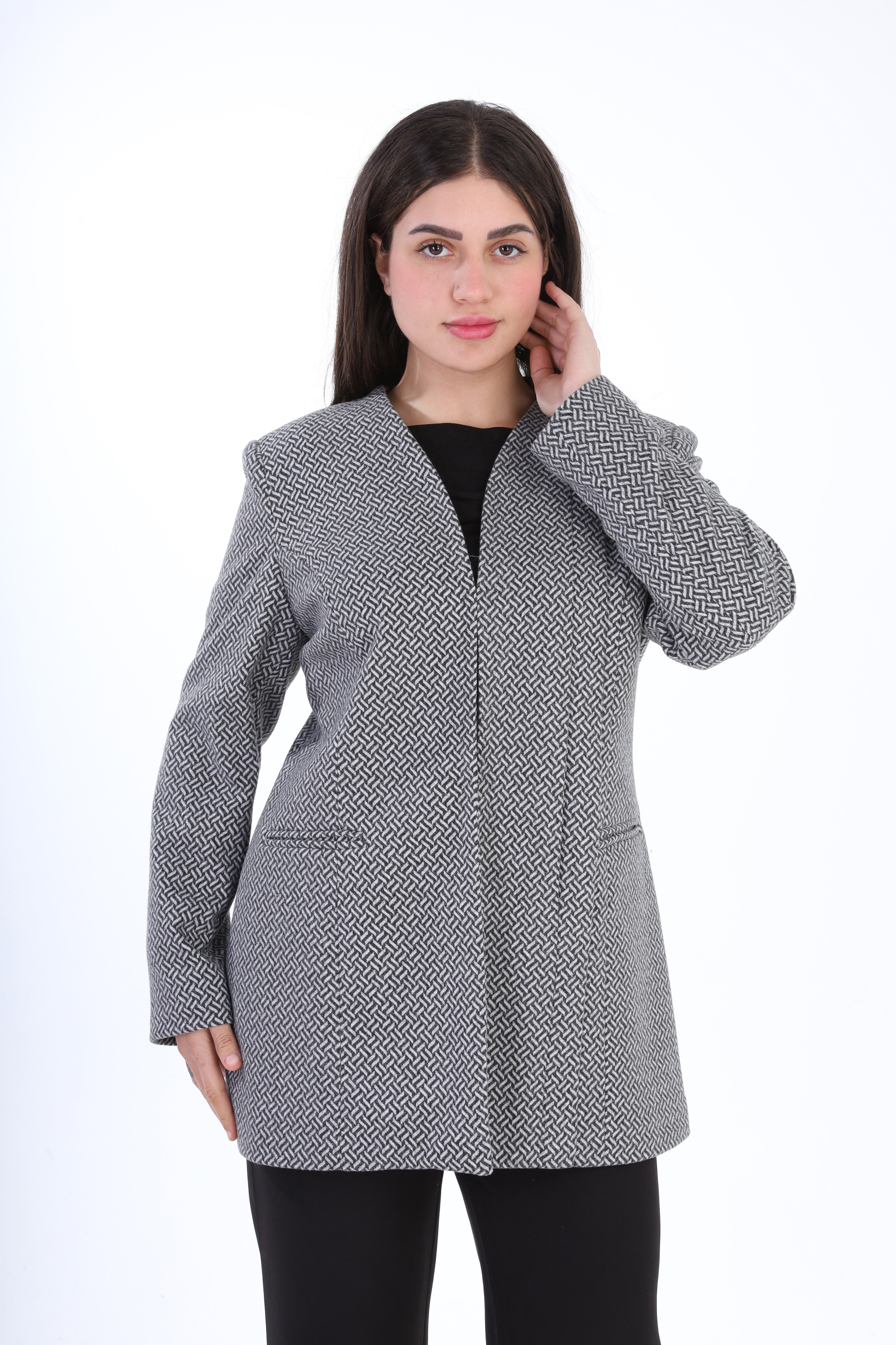 Textured Bouclé Wool Jacket with Front Buttons w1627/267