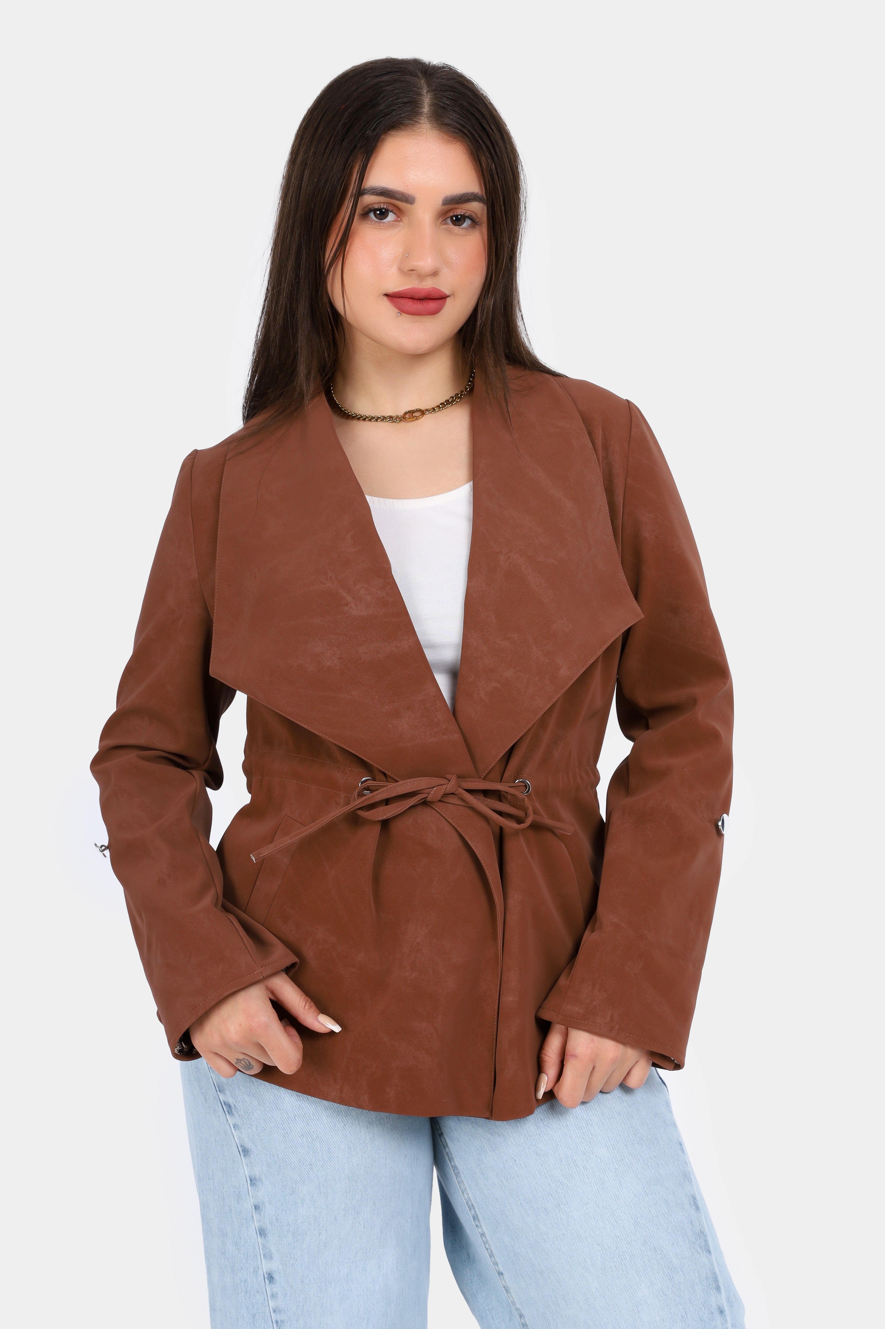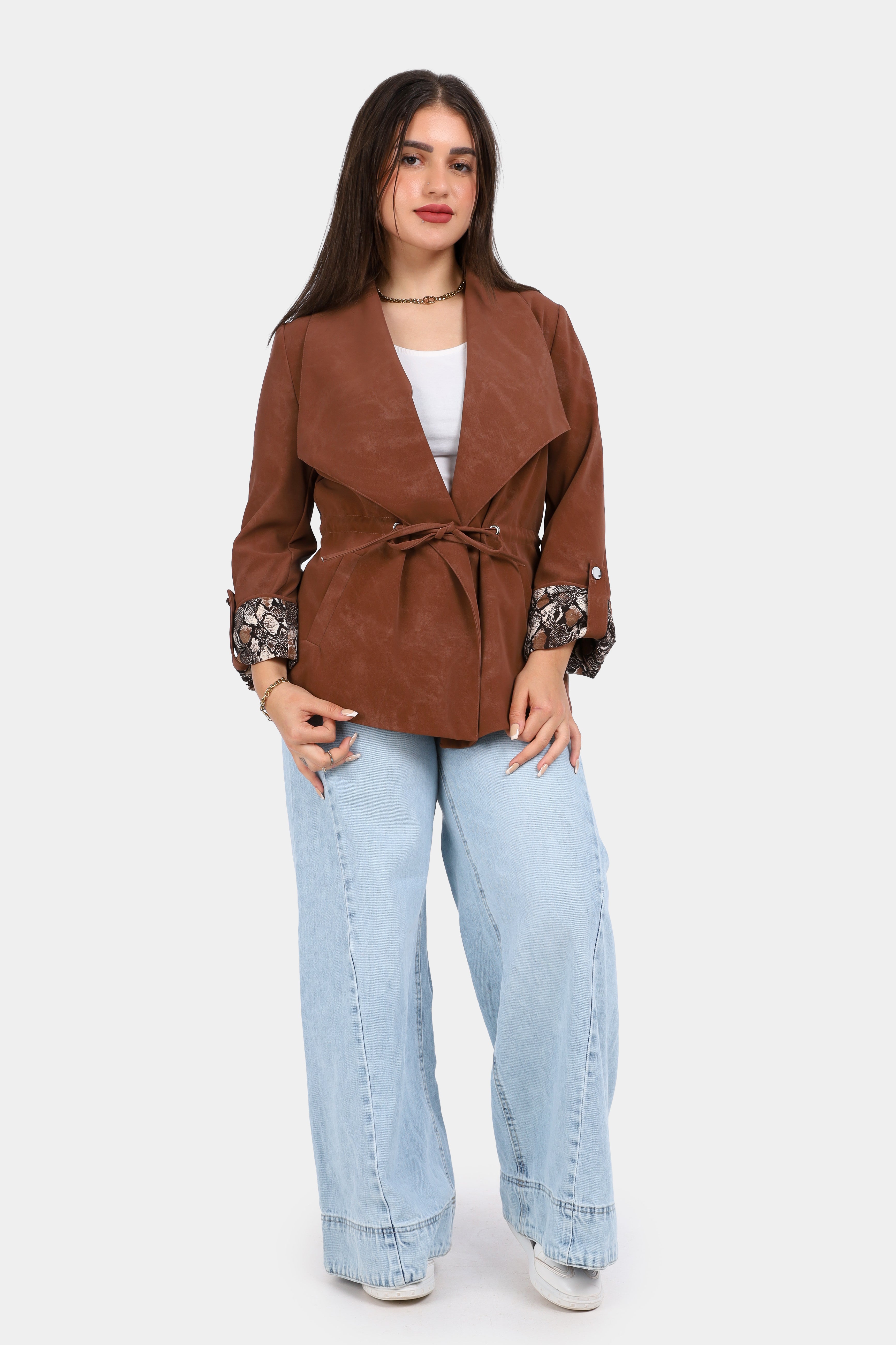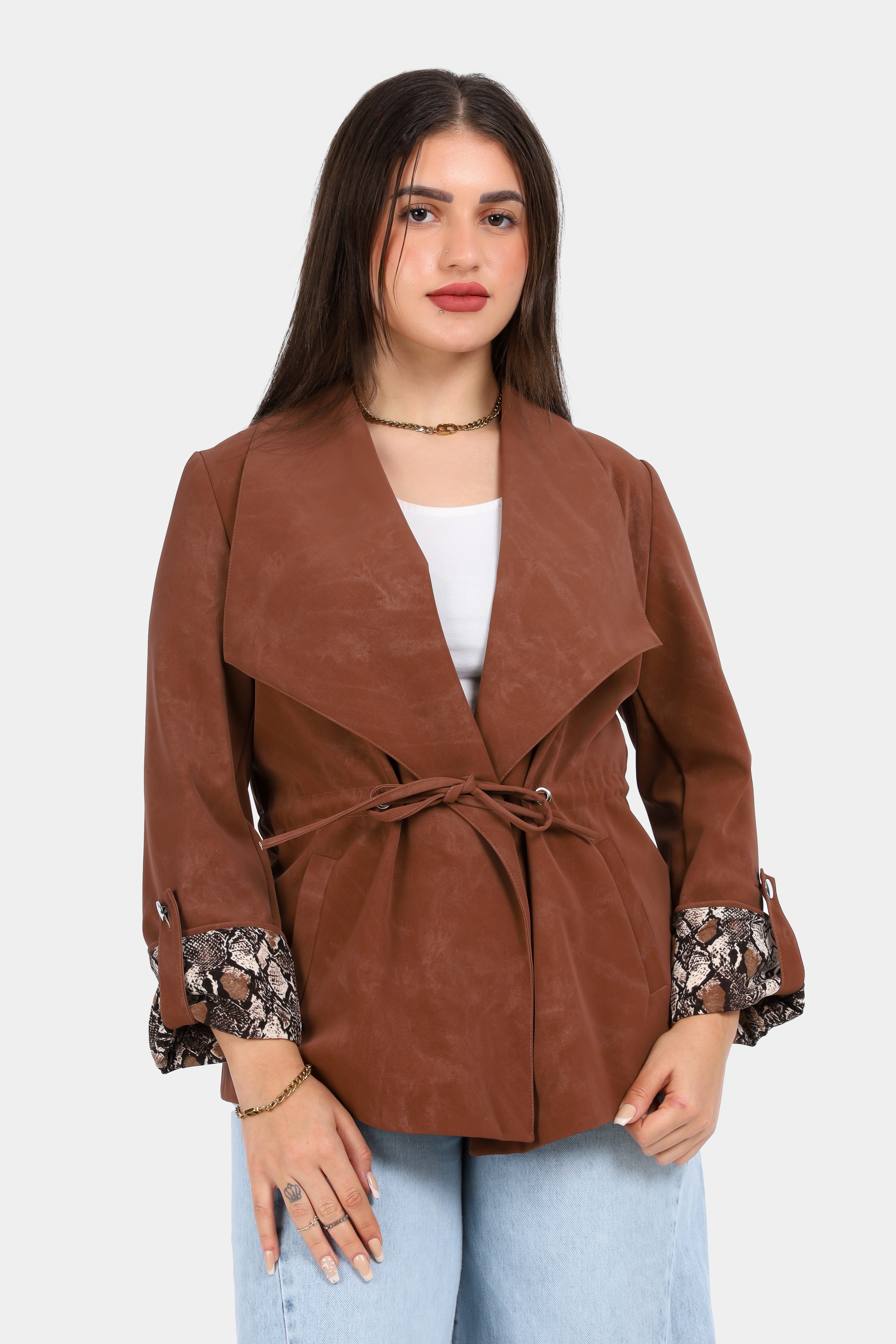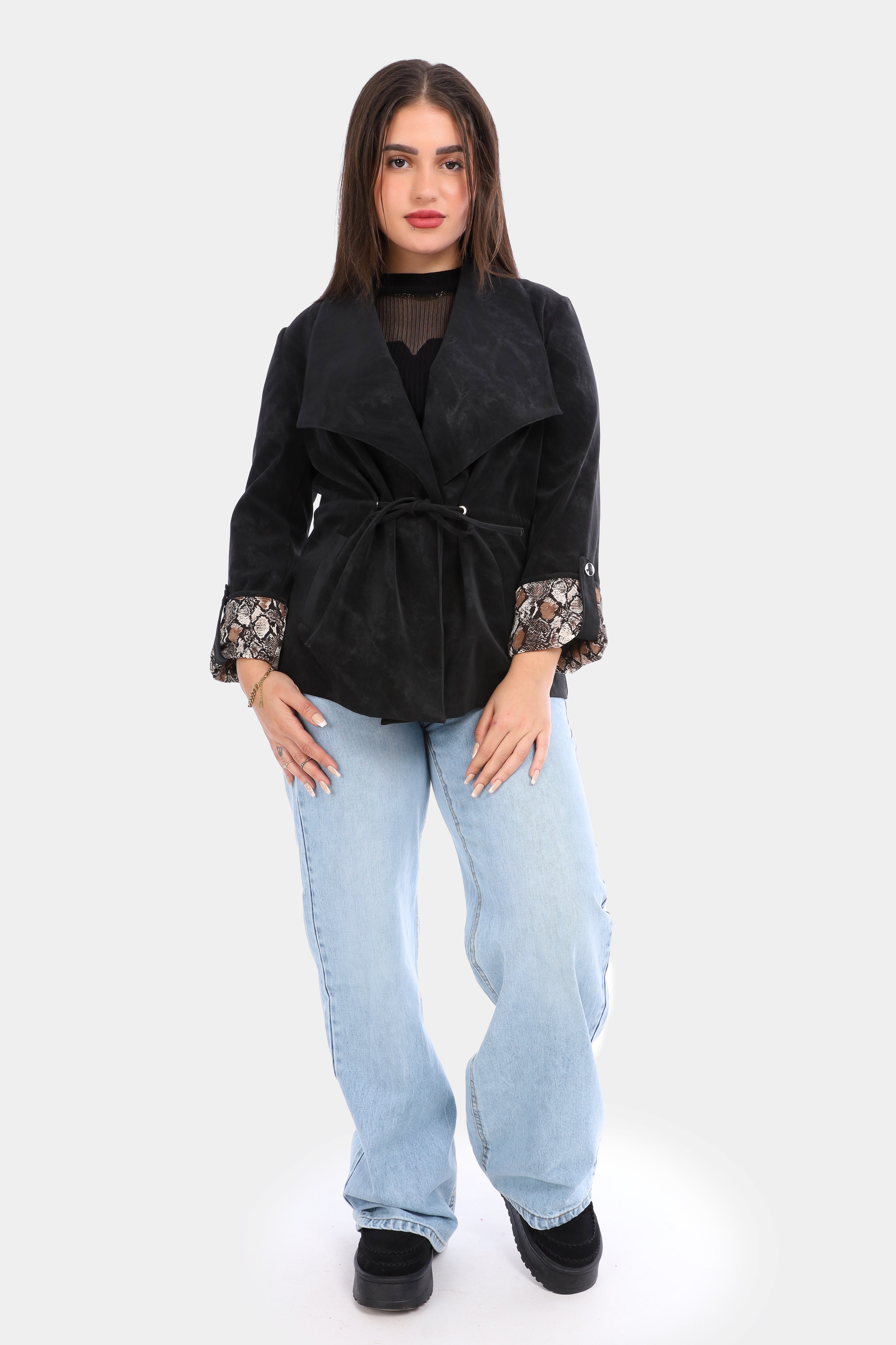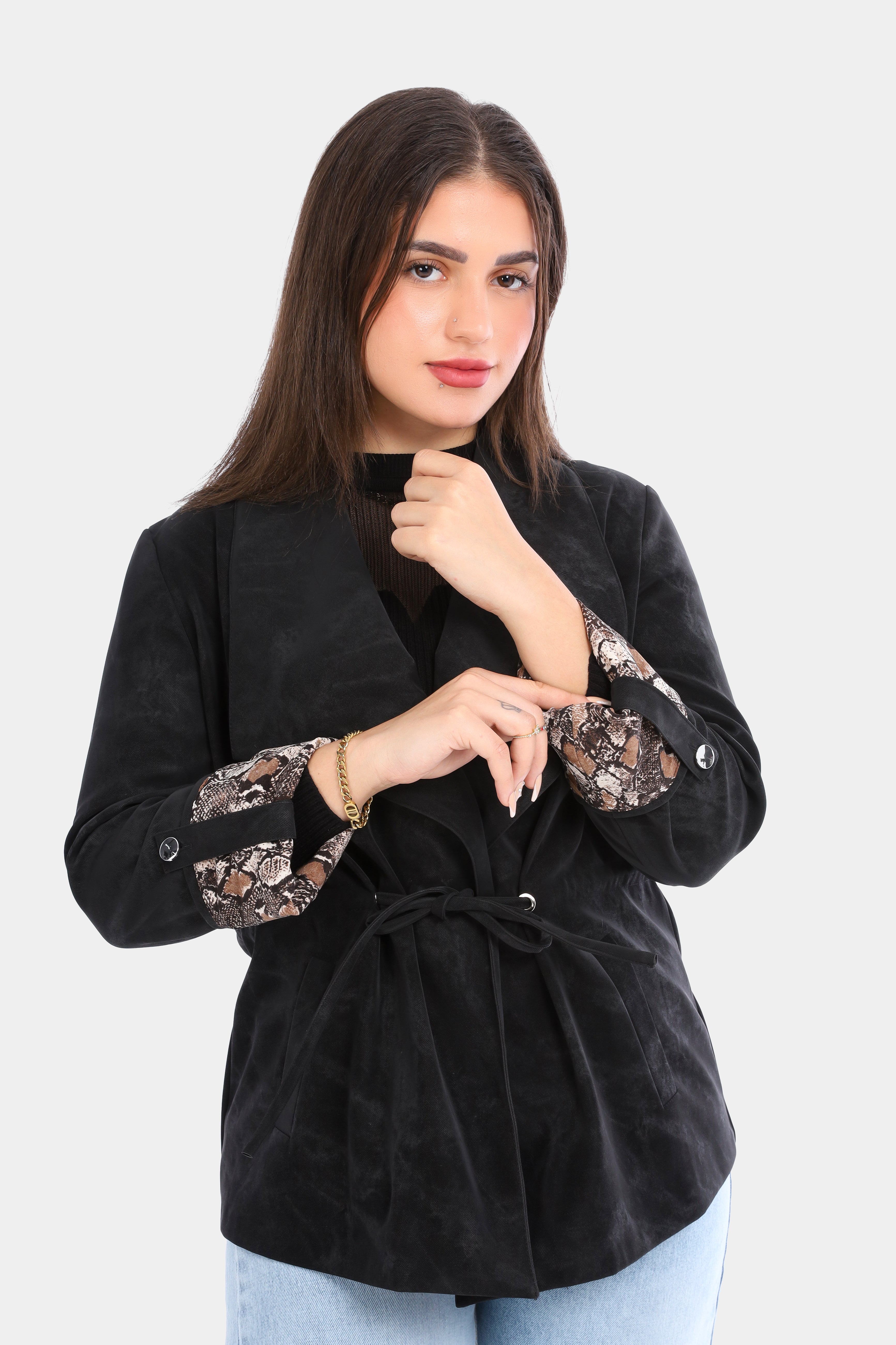 Suede Tie-Waist Blazer with Snake Print Cuffs w1629/102