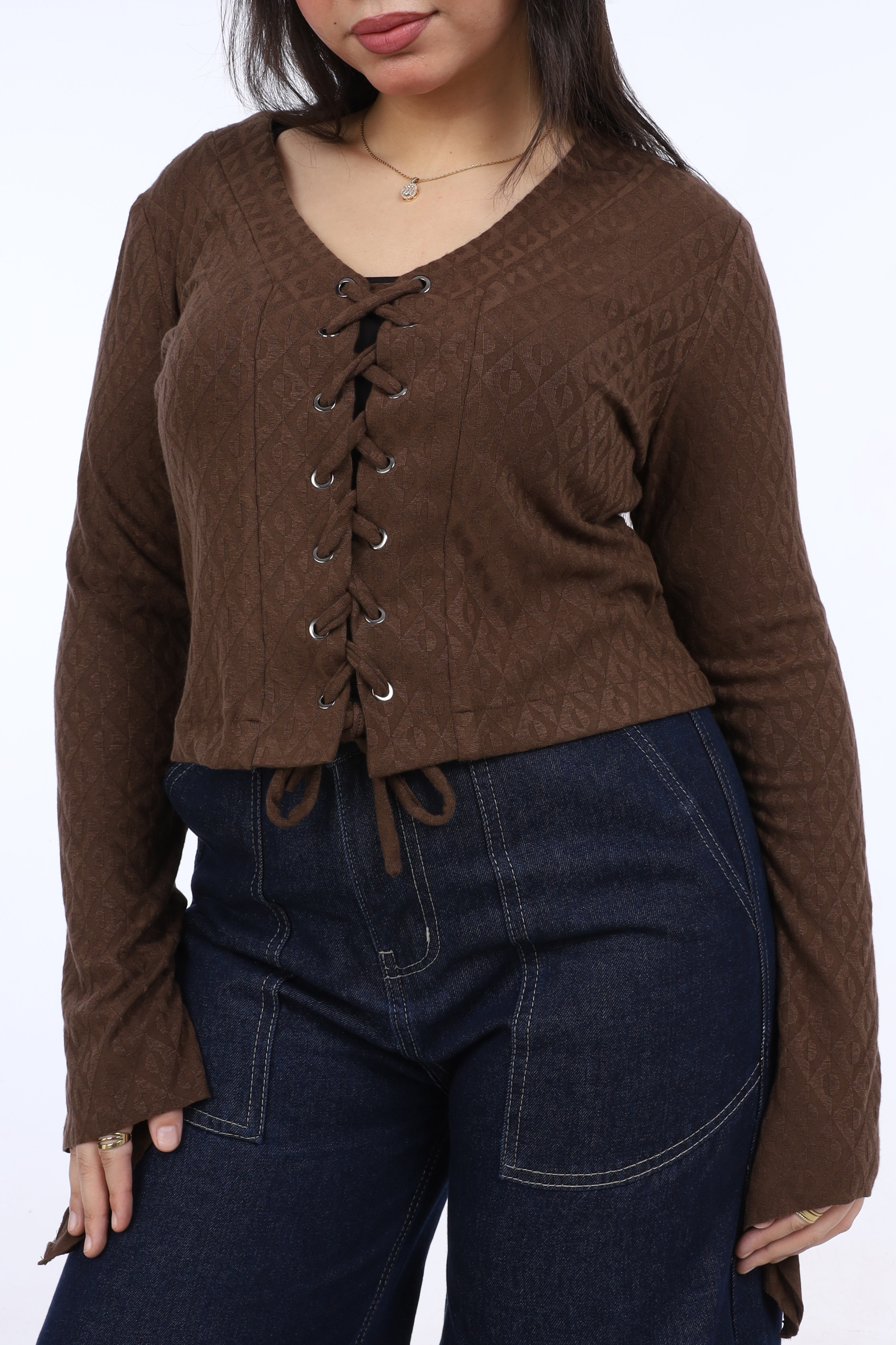 Ruffle Sleeve Top with Front Drawstring w163081/1