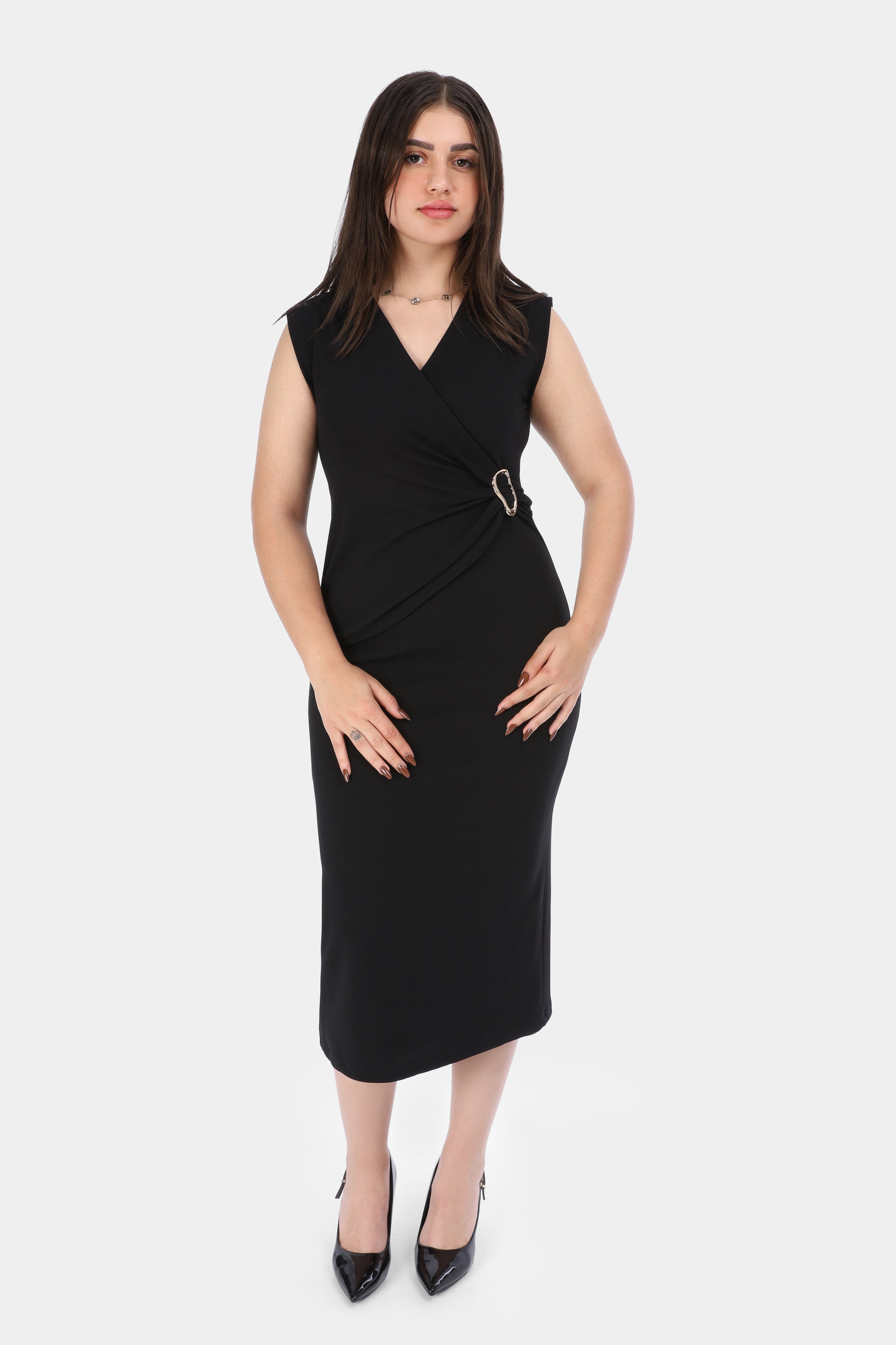 Elegance Sleeveless wrap Dress with ring waist w1631/298