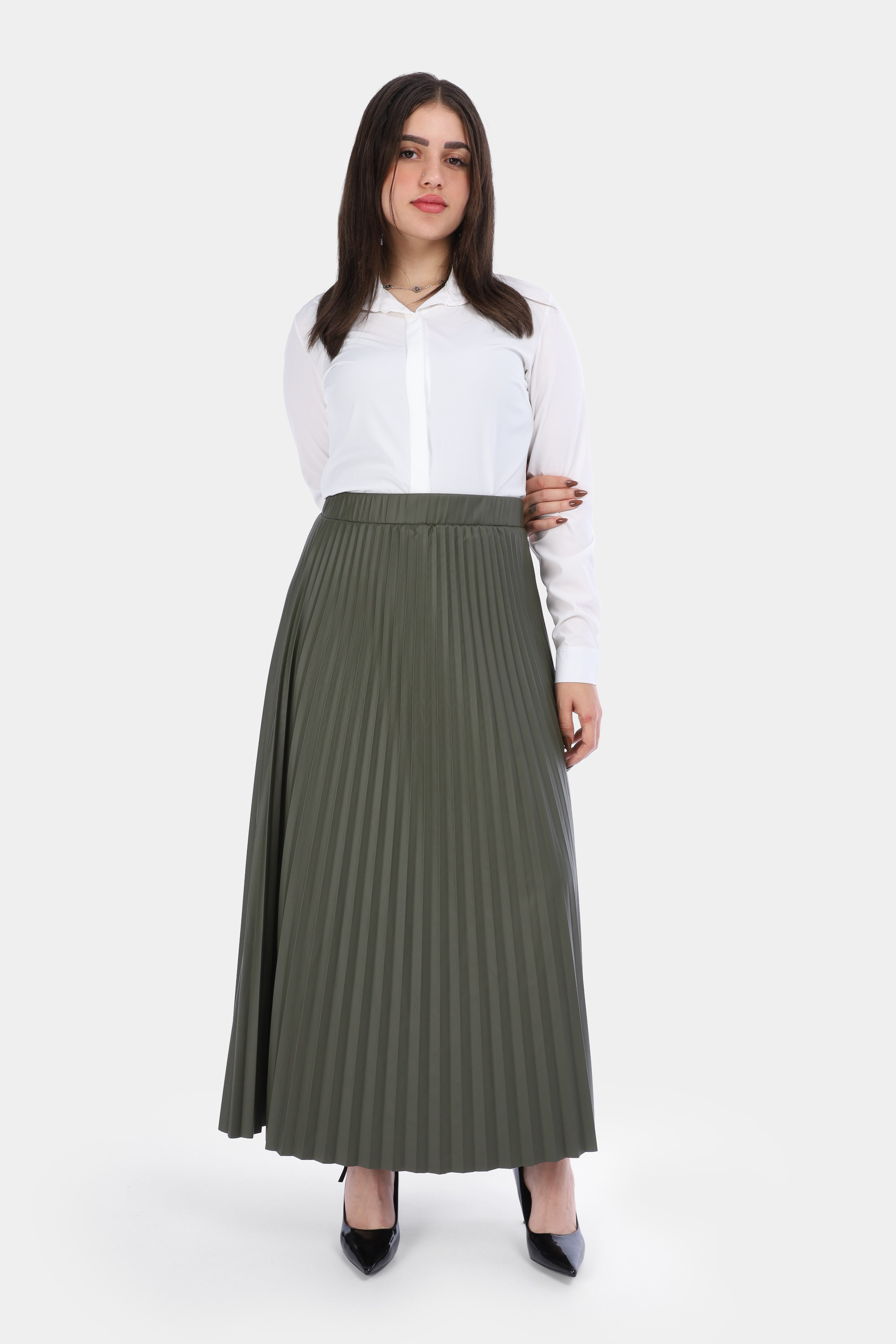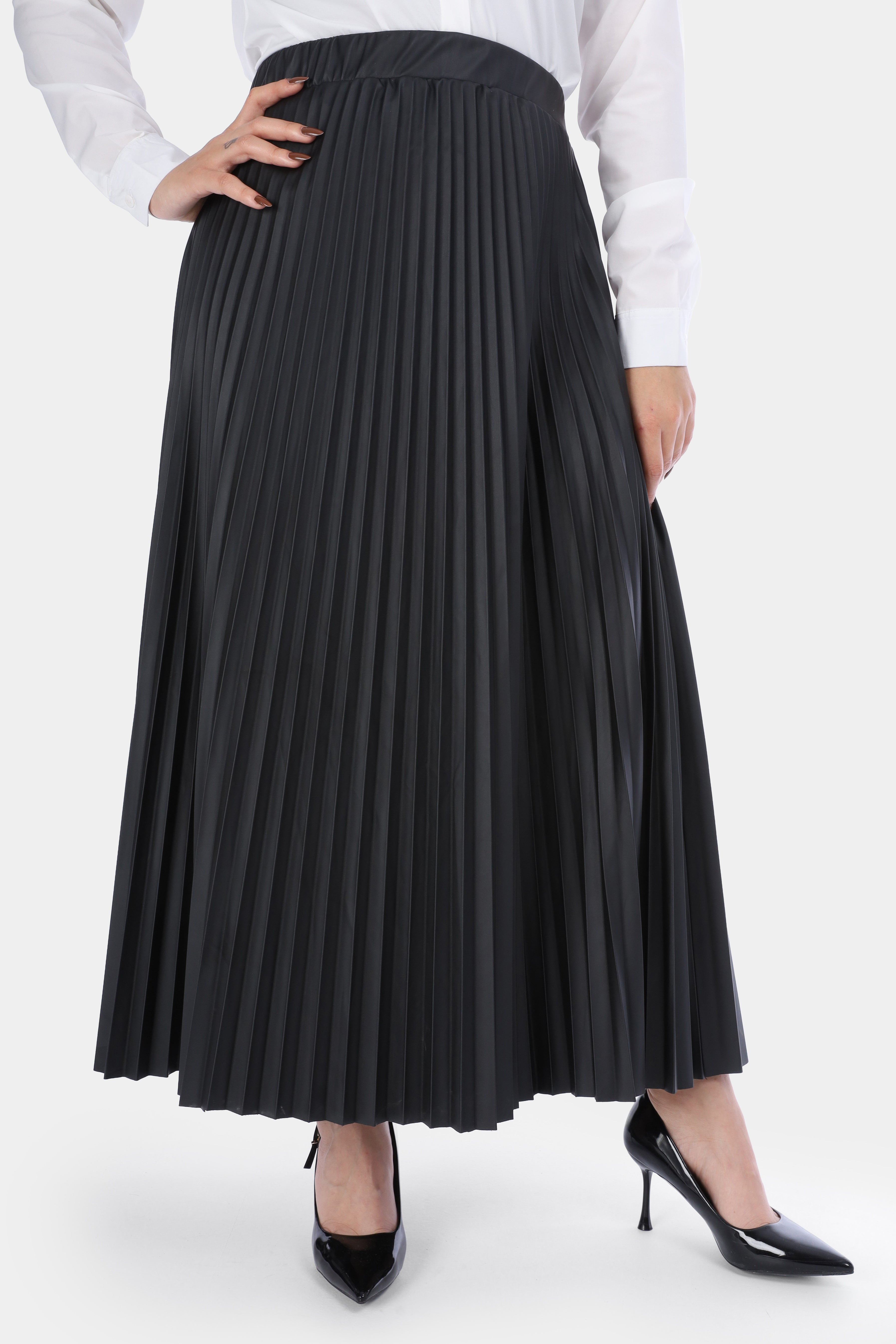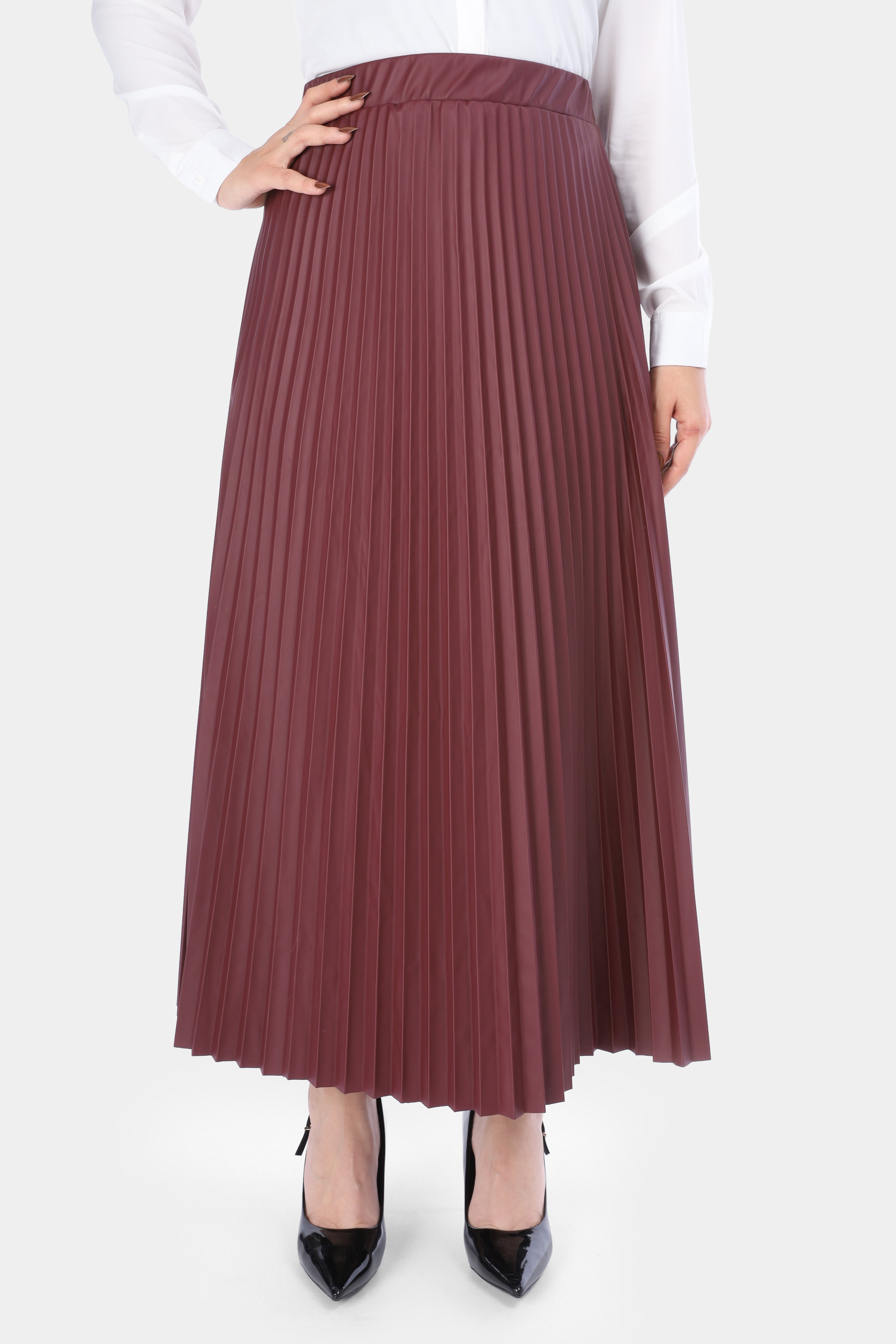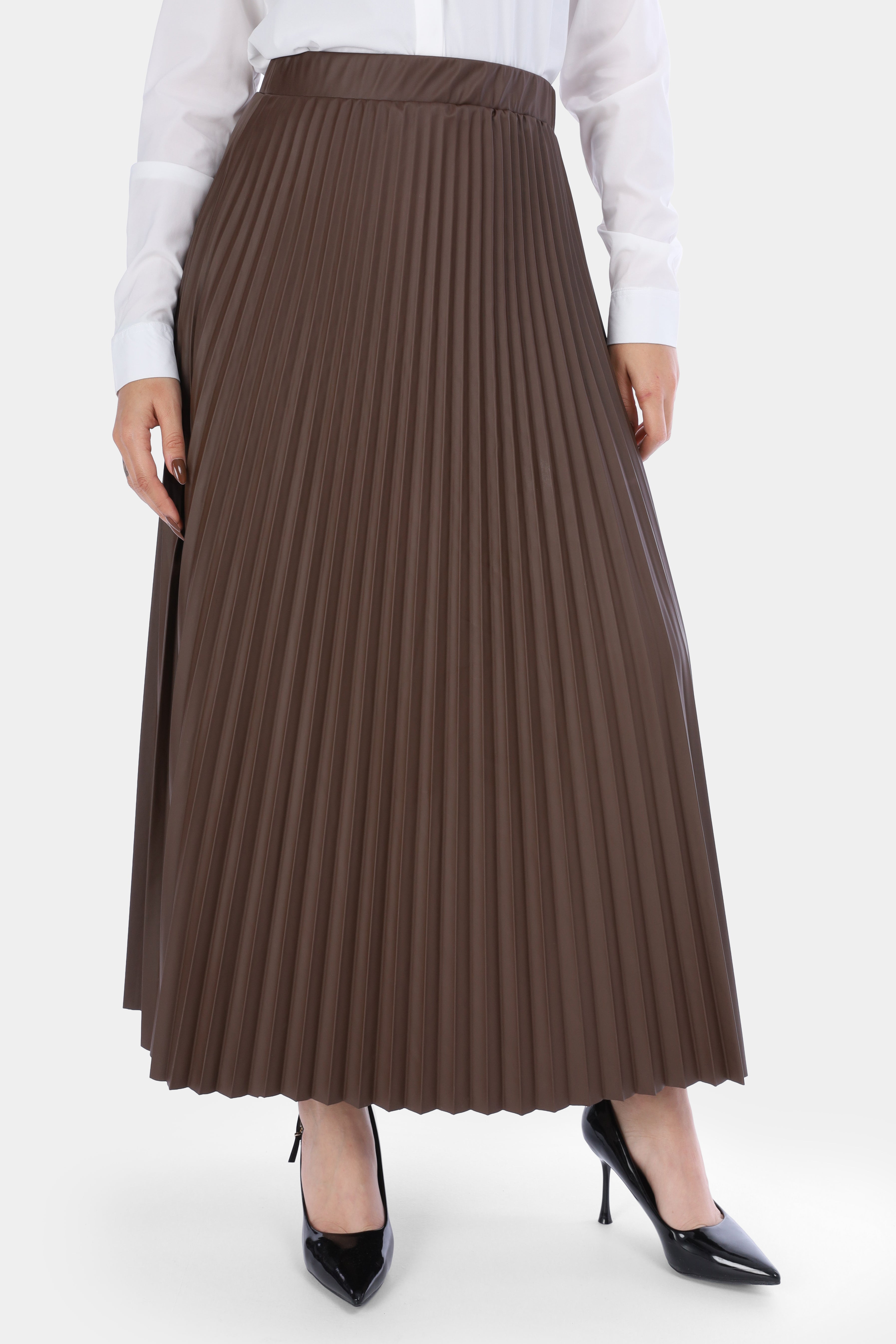 Pleated Faux Leather Skirt w1635/286