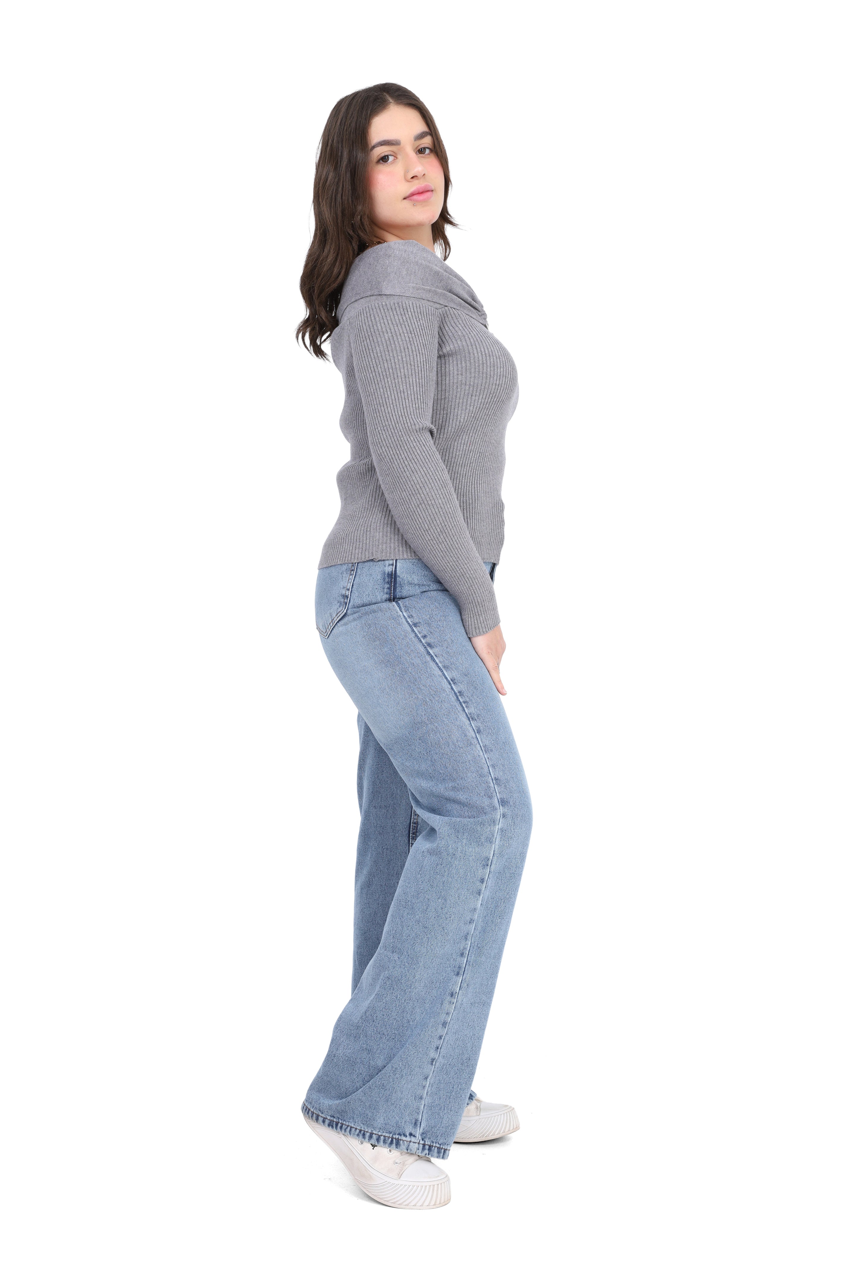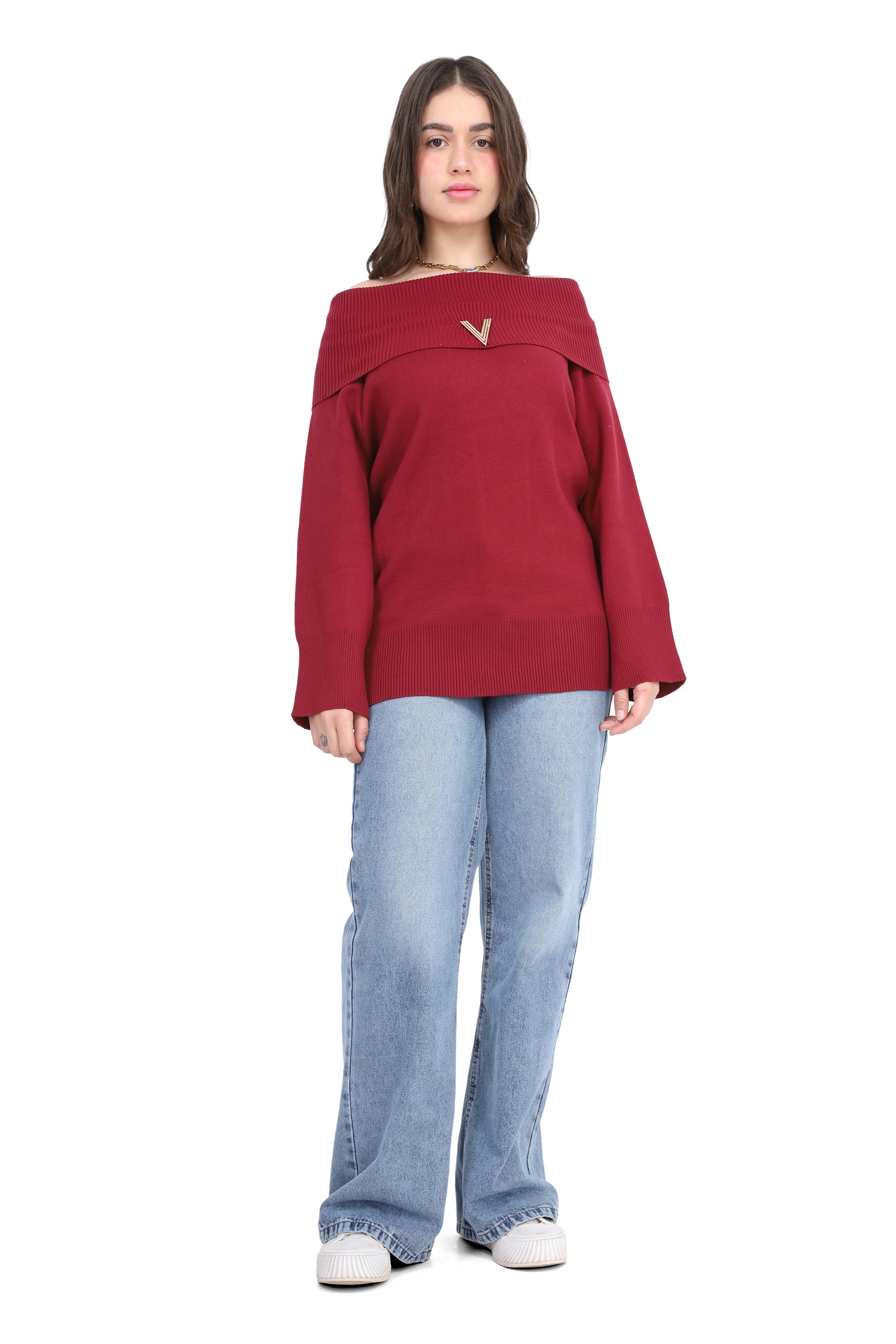 Collared V-Neck Cropped Knit Sweater w16252687/1