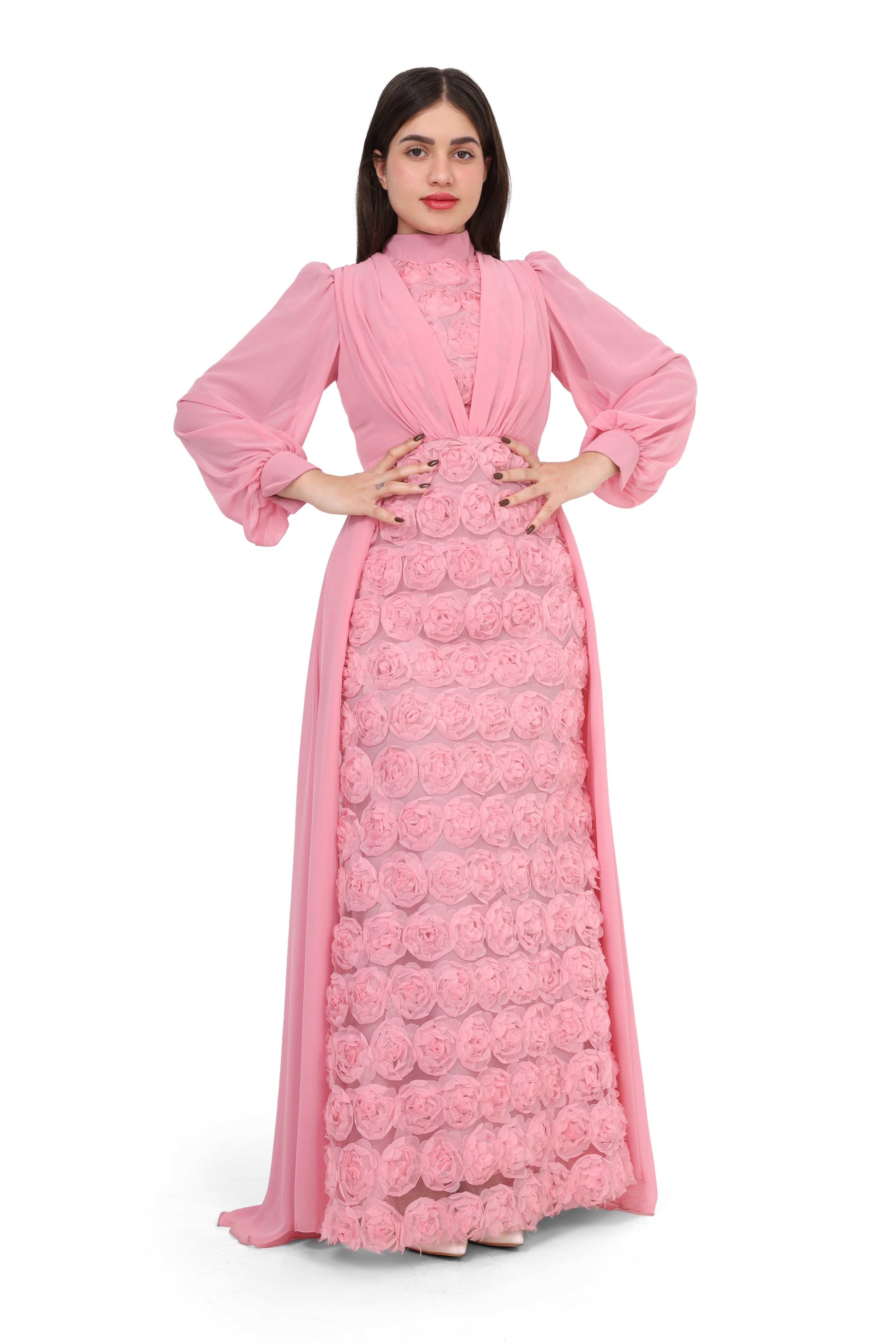 Elegant Off-Shoulder Rose Detail Dress w164883