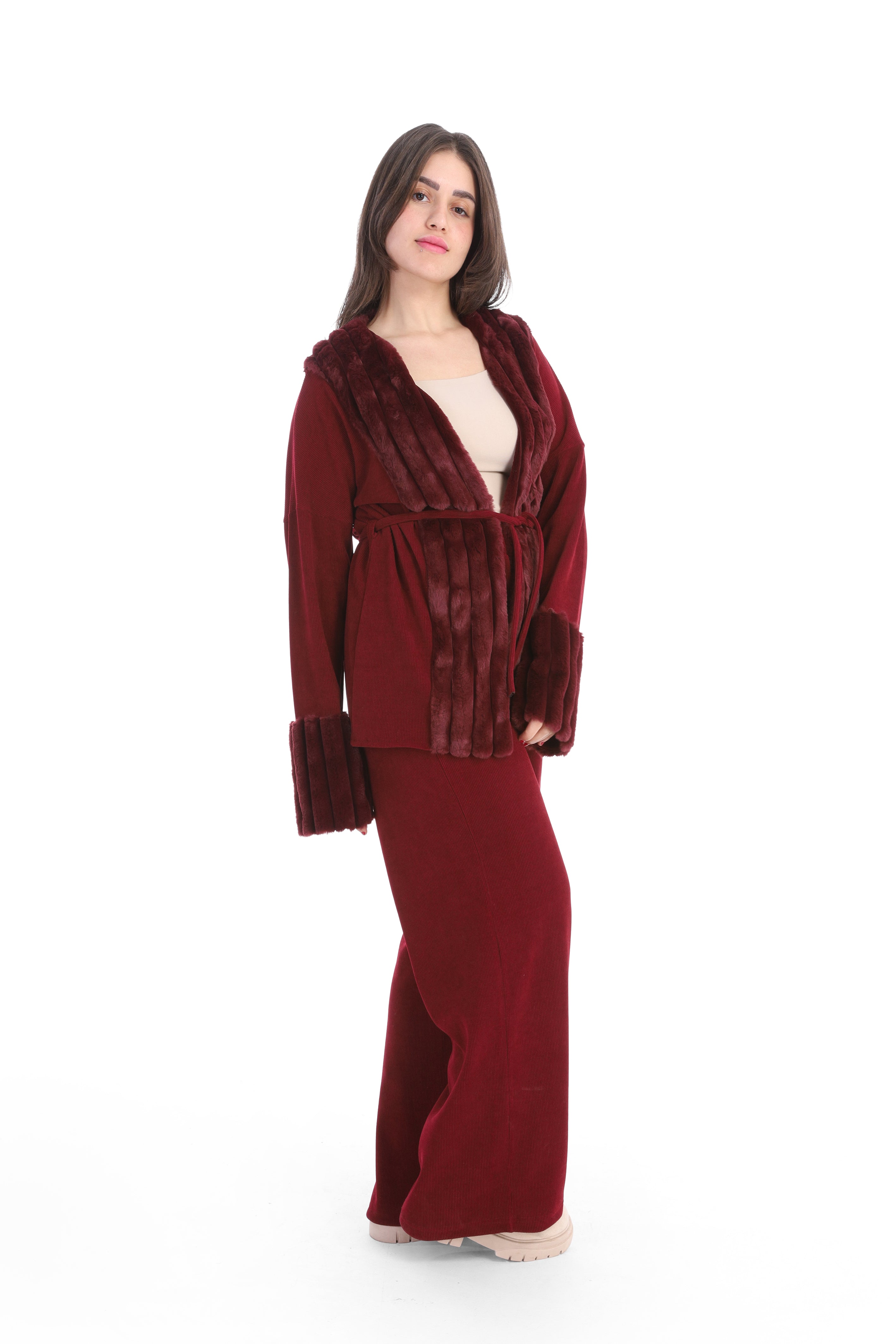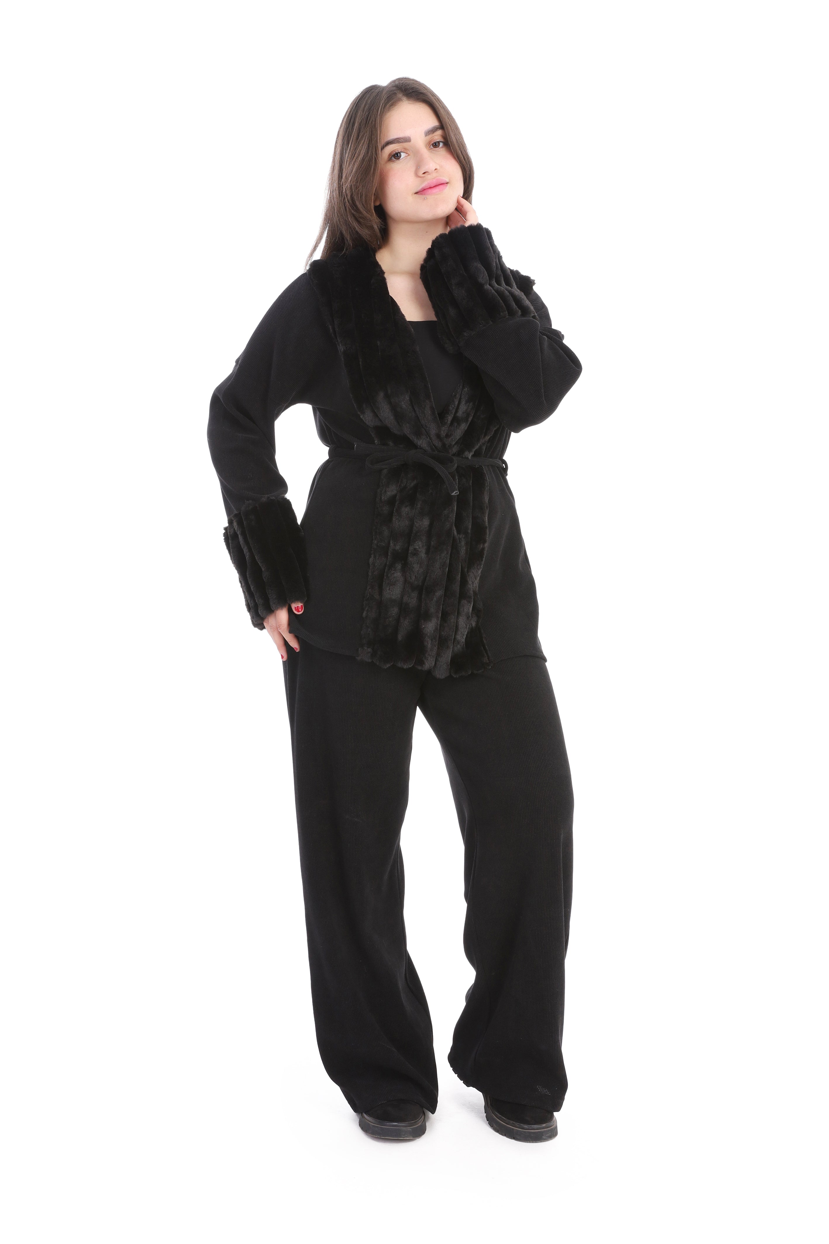 Faux Leather Cut Jacket with Fur Lining w1634/353