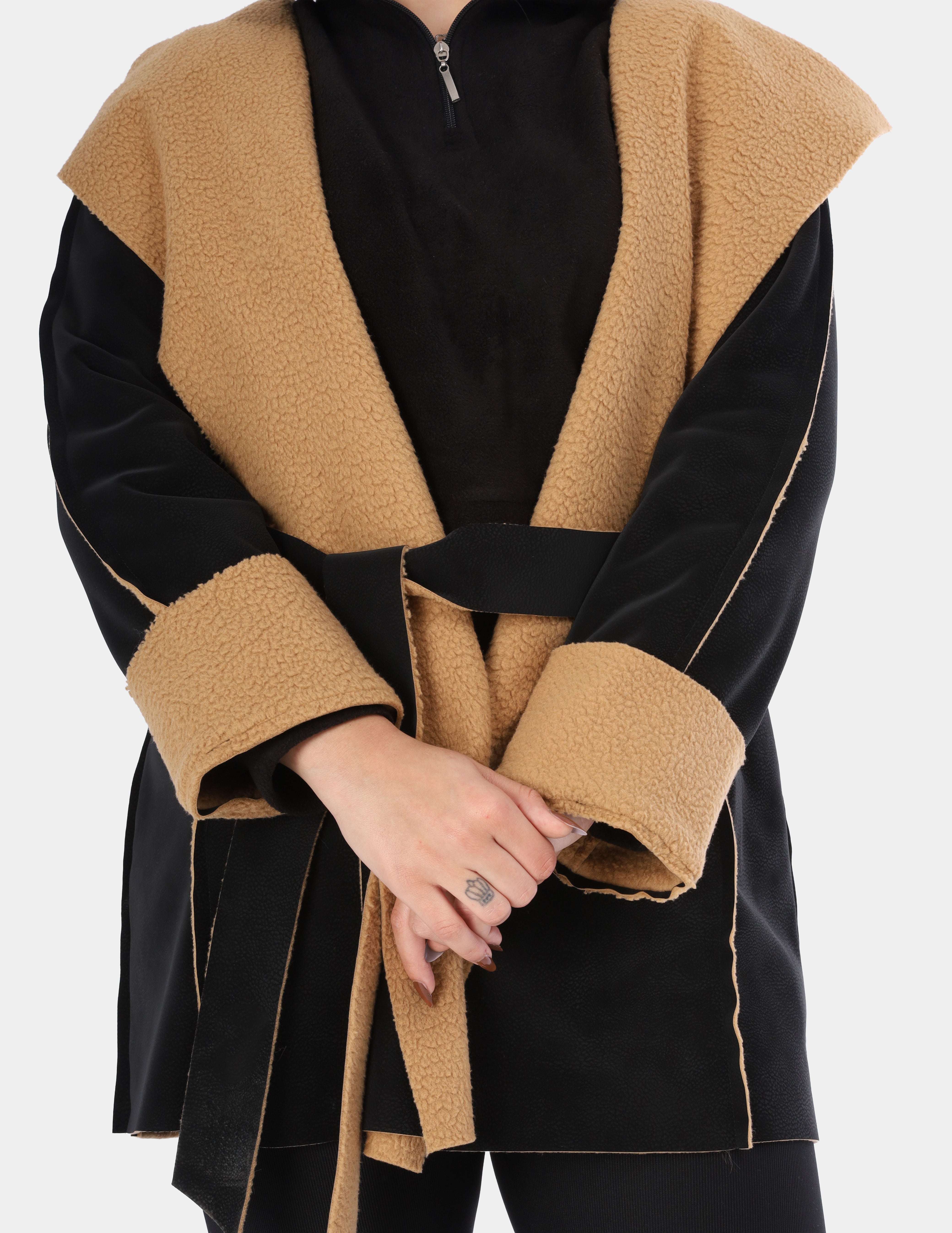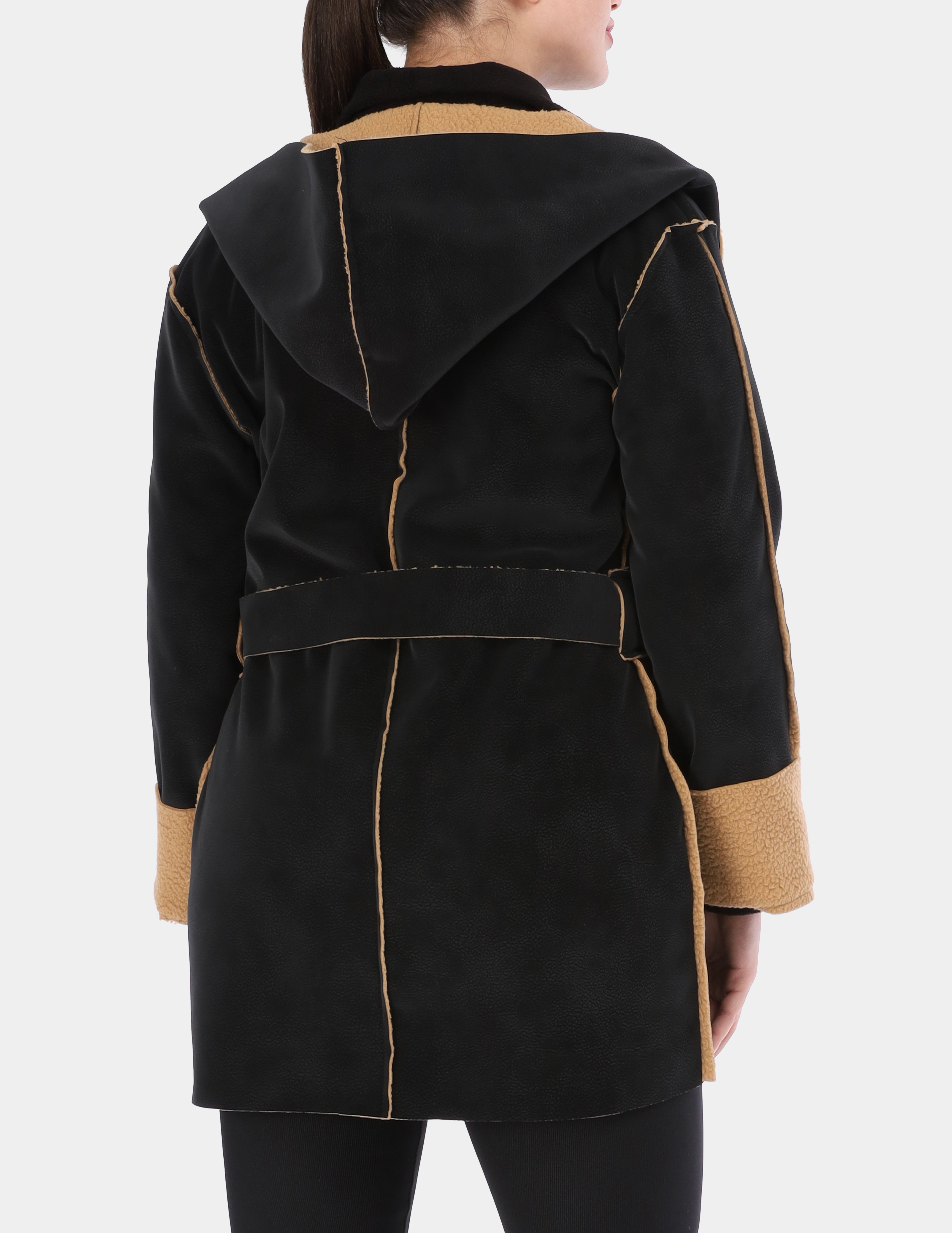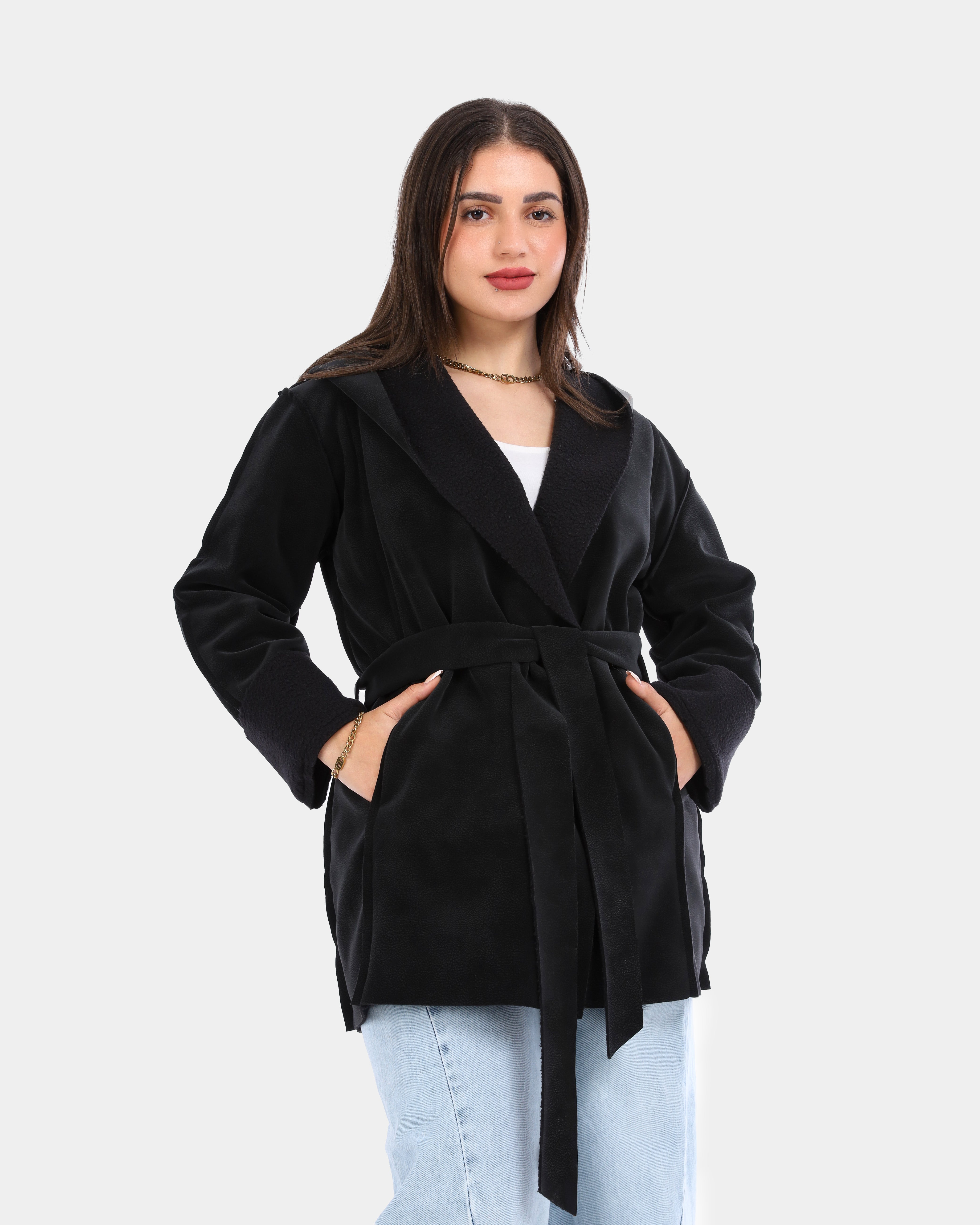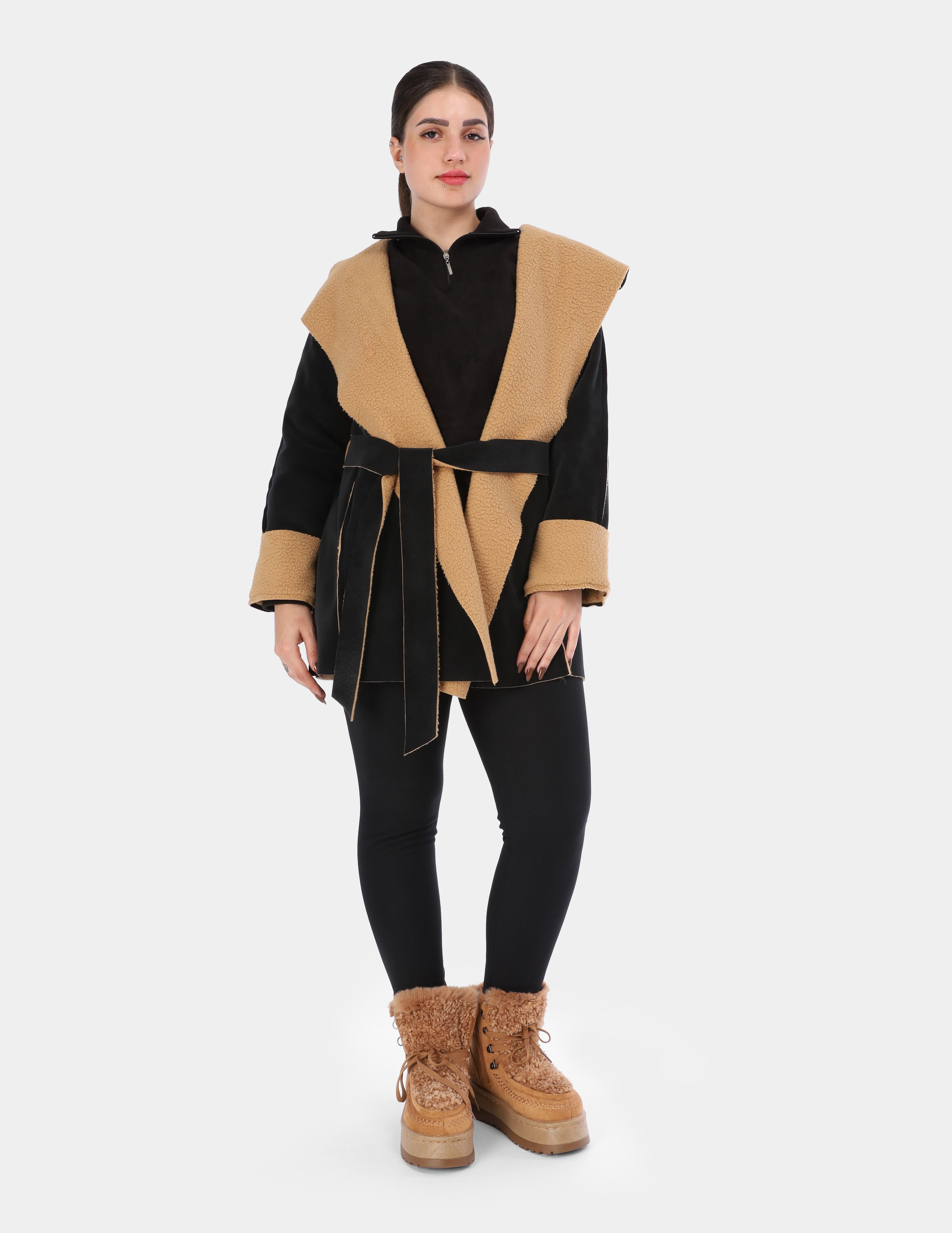 Faux Fur Jacket with Double-Side Belt Detail w1631/351