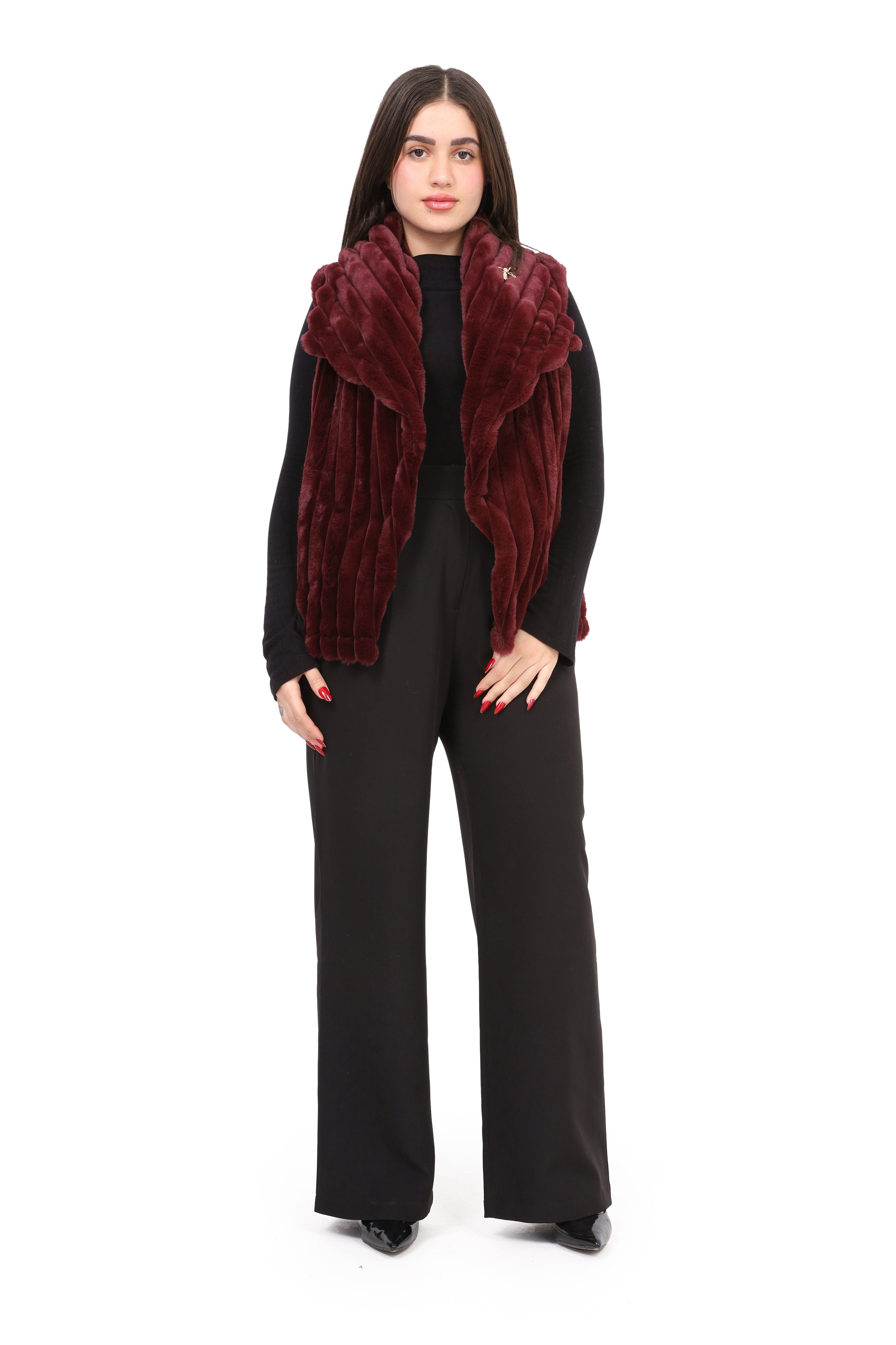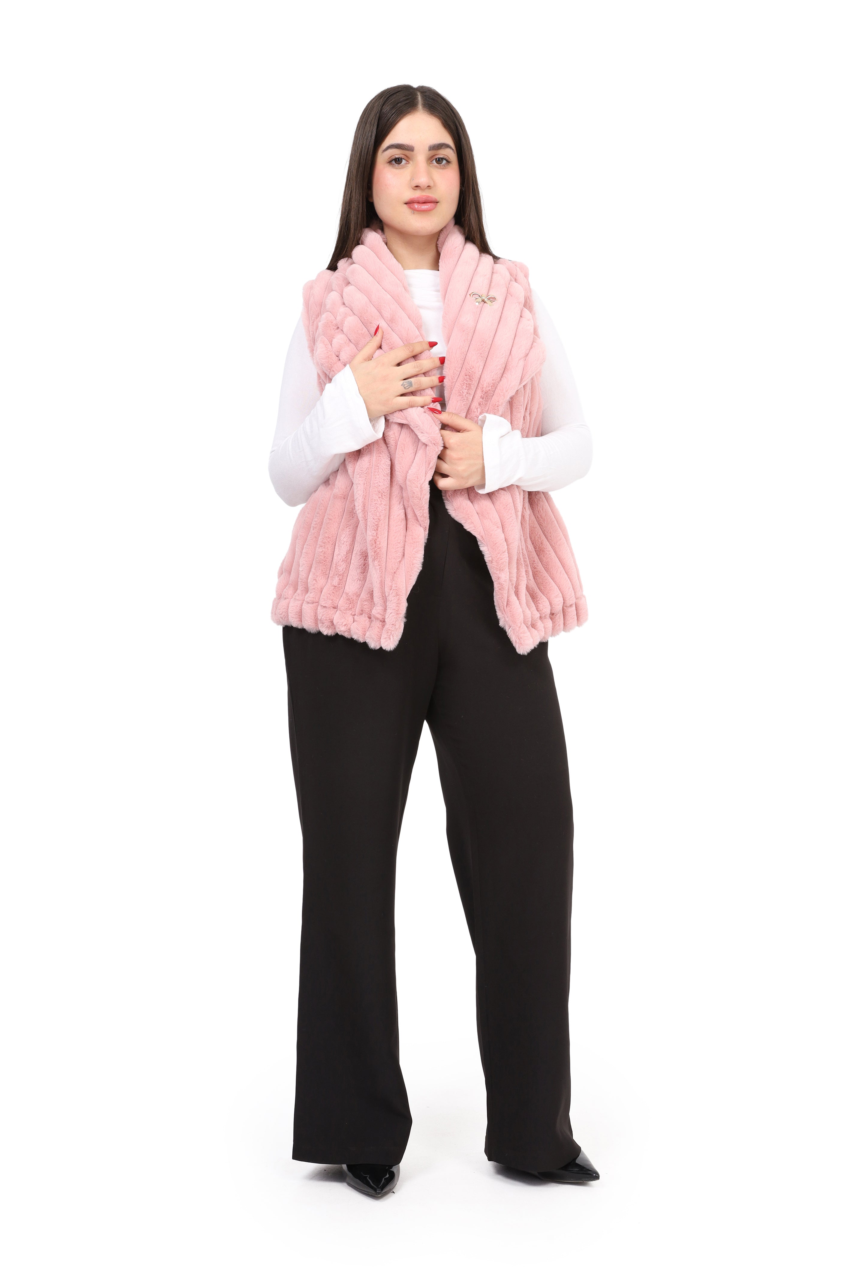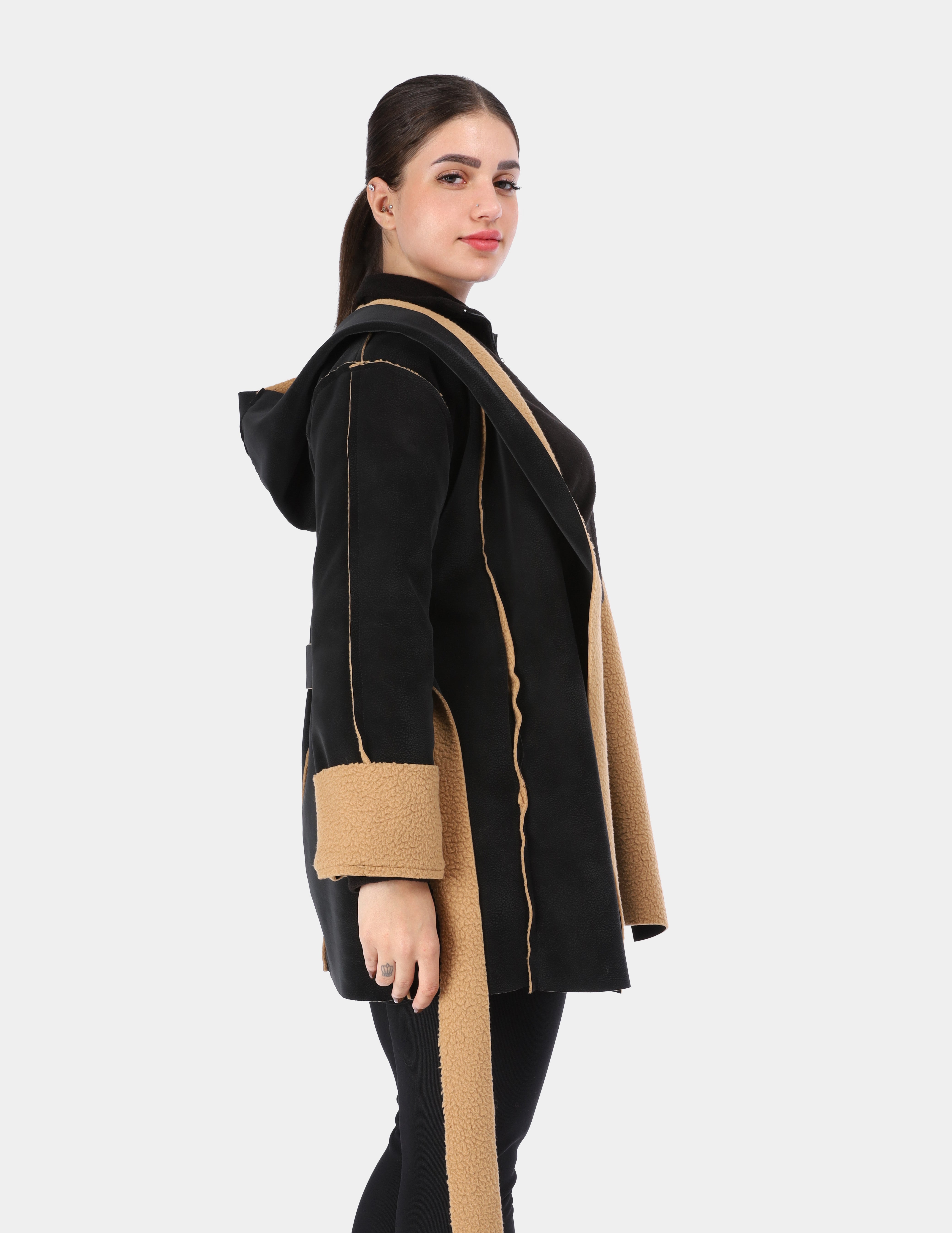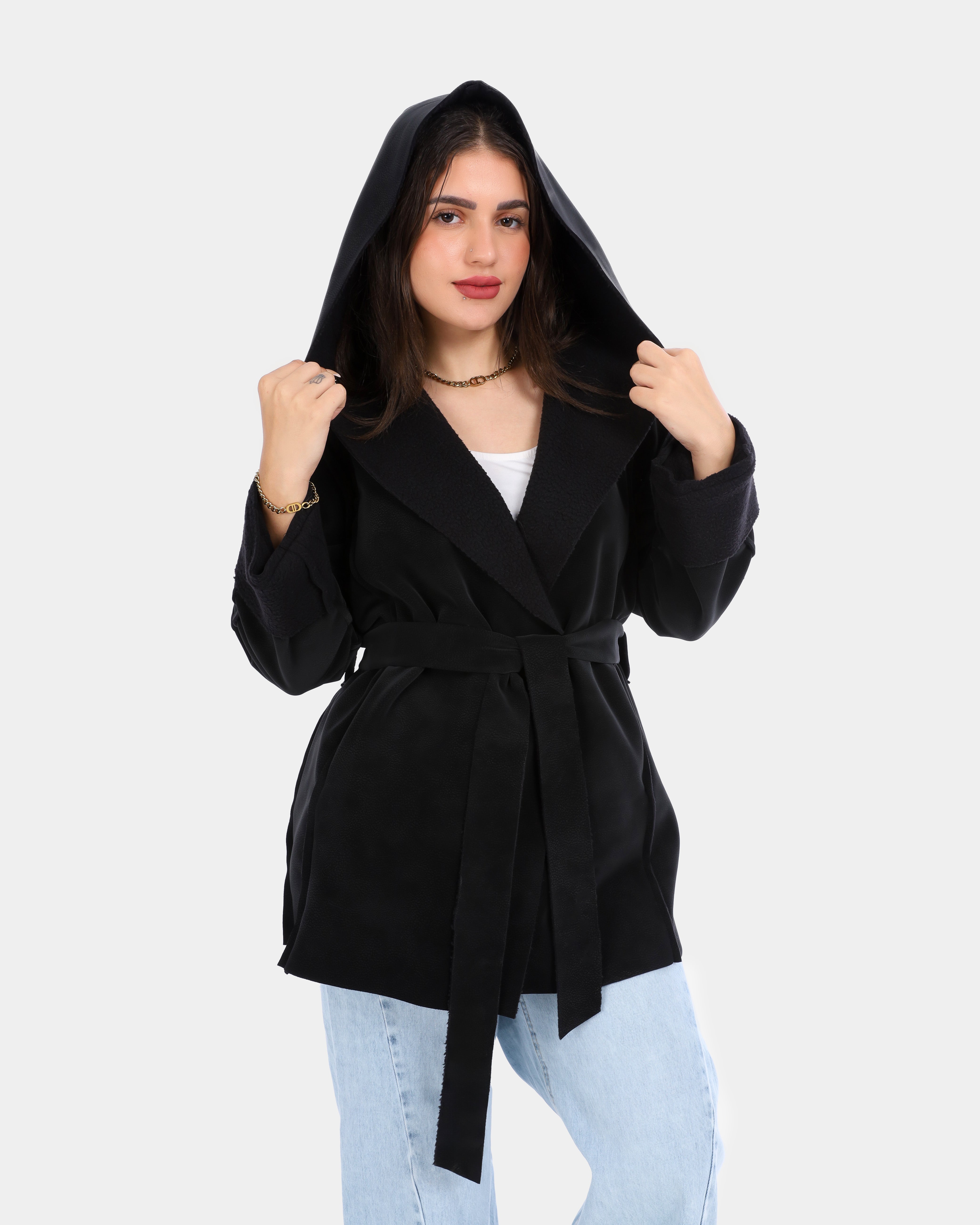 Faux Fur Jacket with Double-Side Belt Detail w1631/351