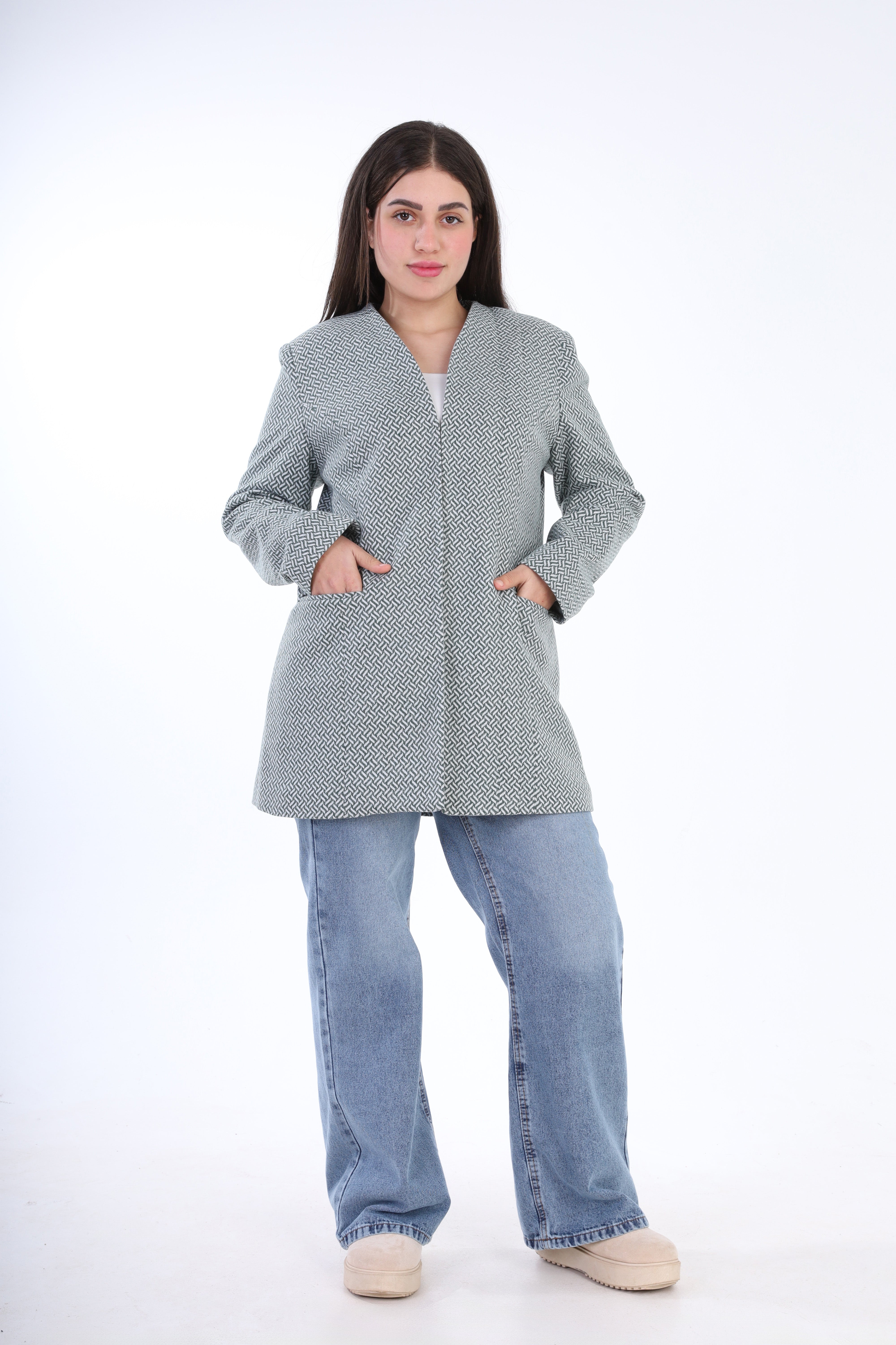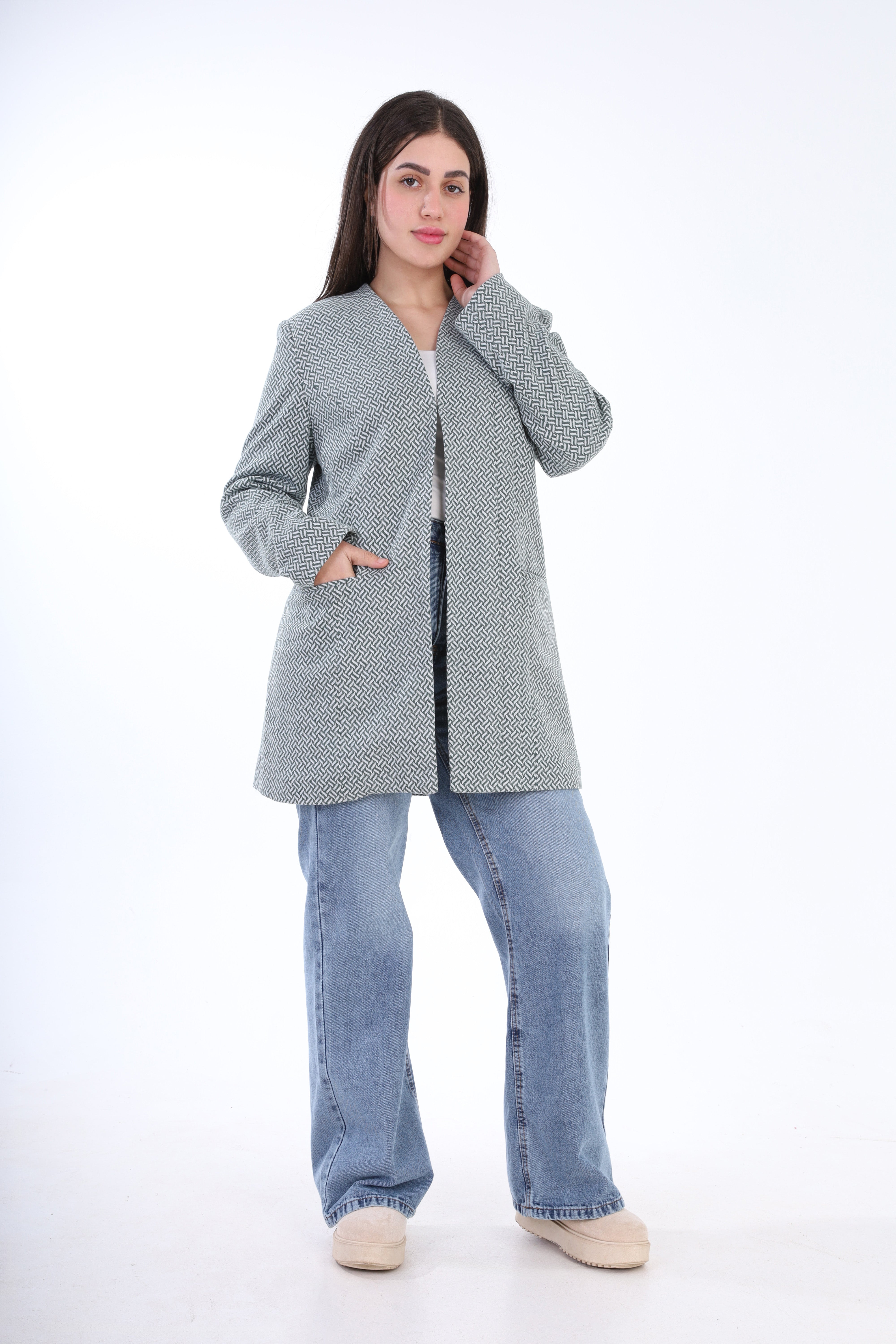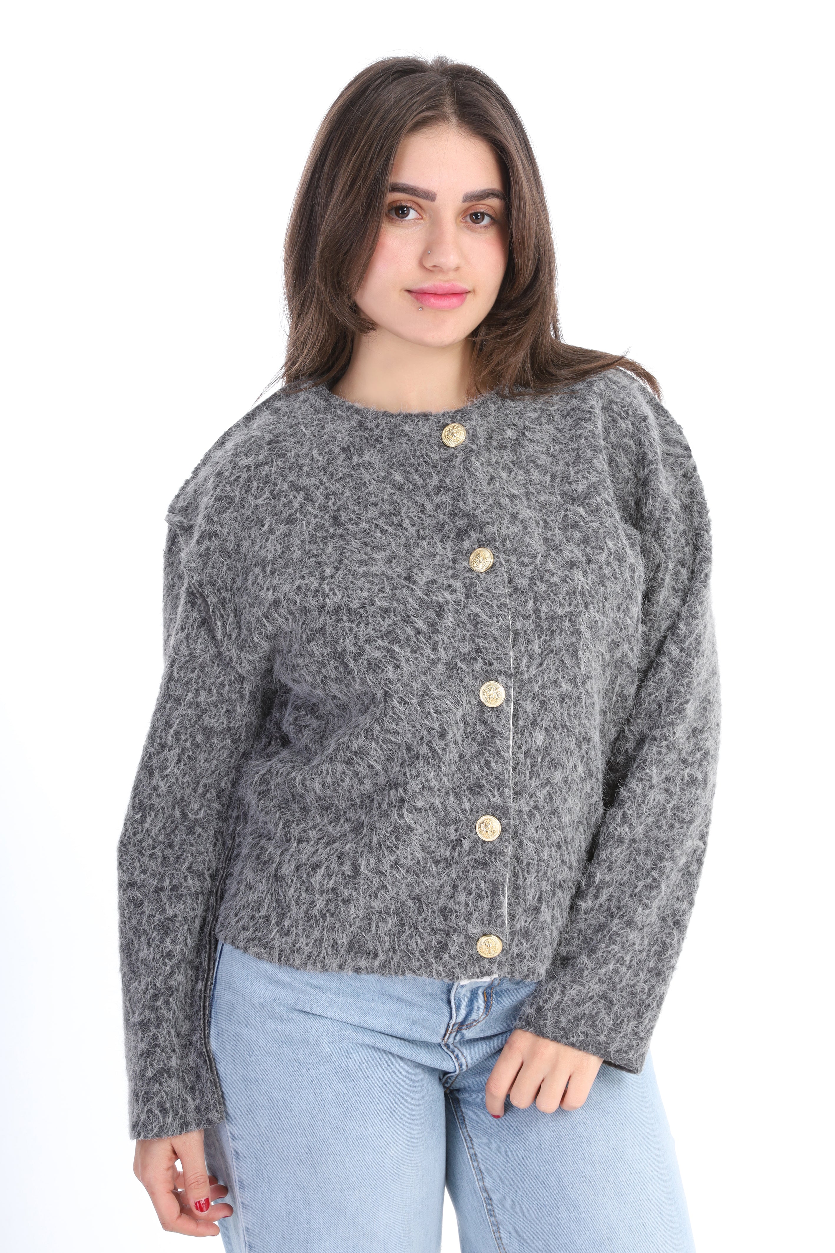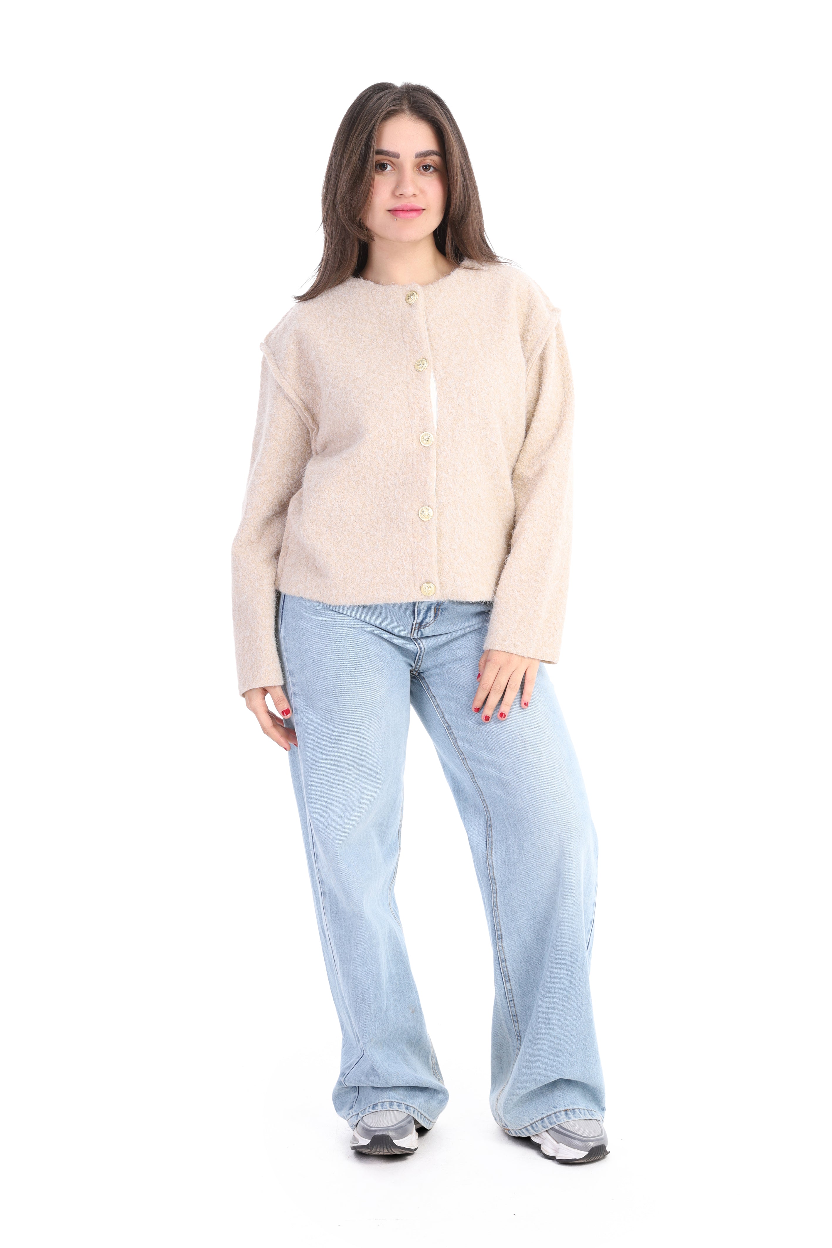 Textured Bouclé Wool Jacket with Front Buttons w1627/267