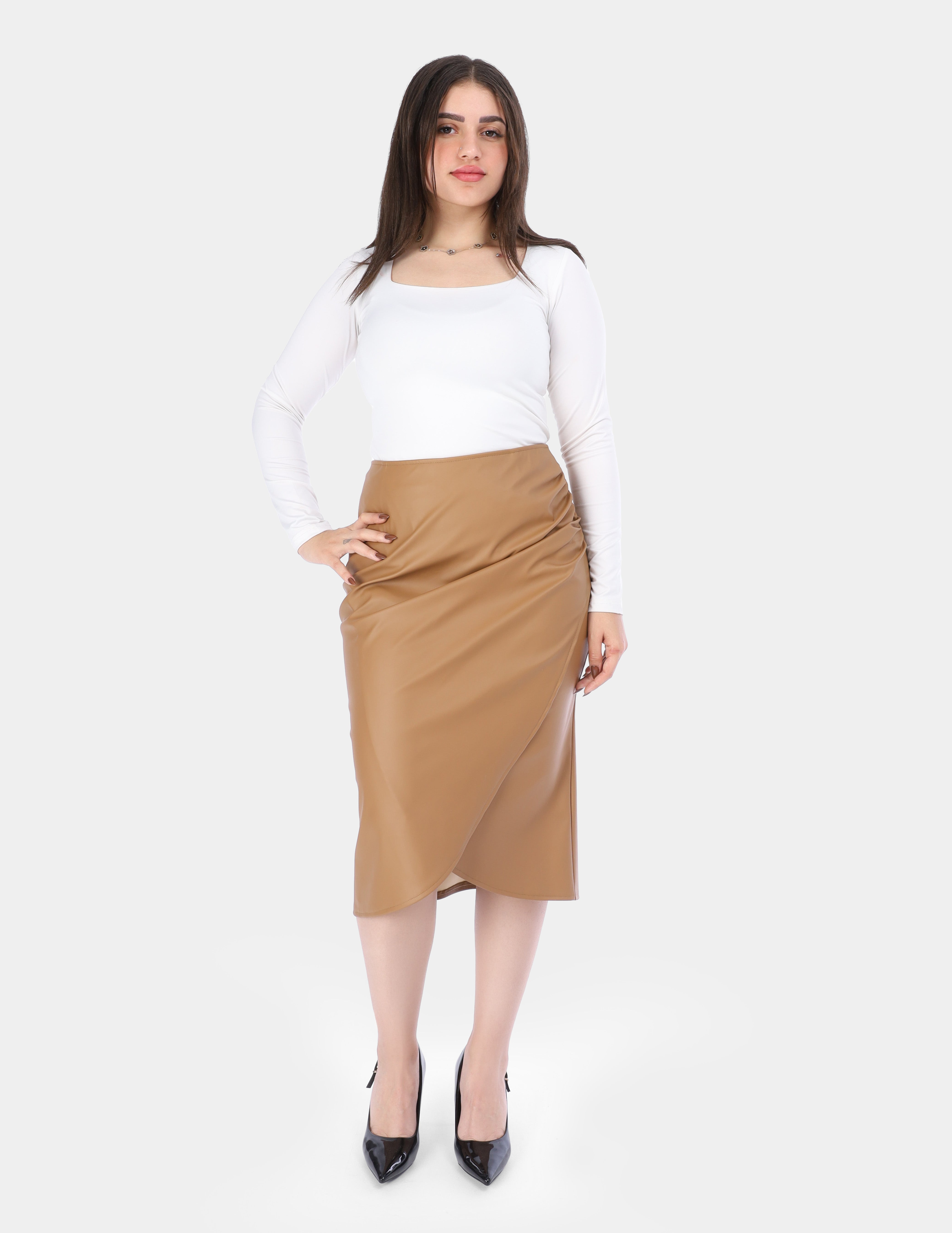 Wrap-Style Faux Leather Midi Skirt w1630/80