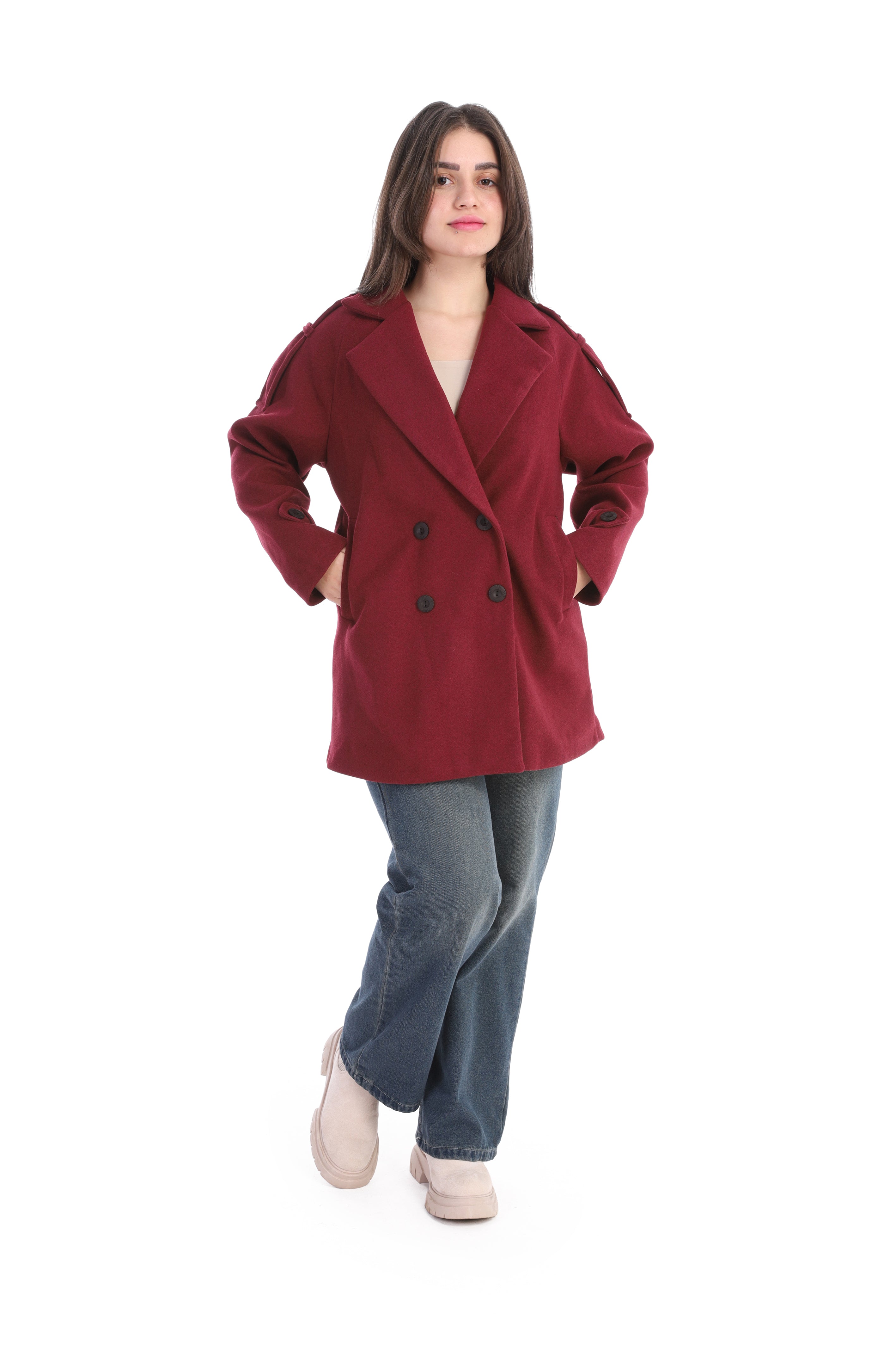 Double-Breasted Wool Blend Mid-Length Coat w1631/355