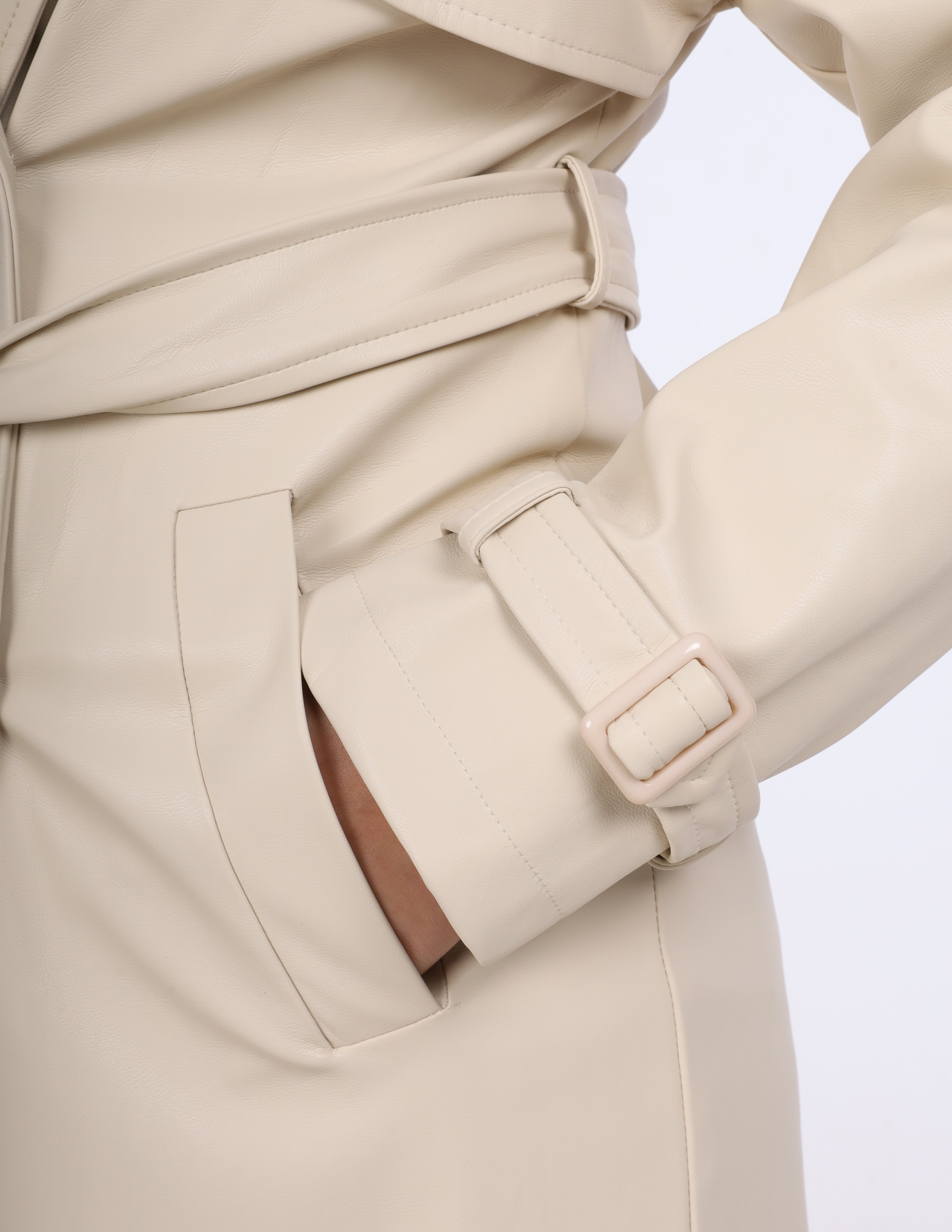 Faux Leather Midi Skirt with X-Button Detail w163040