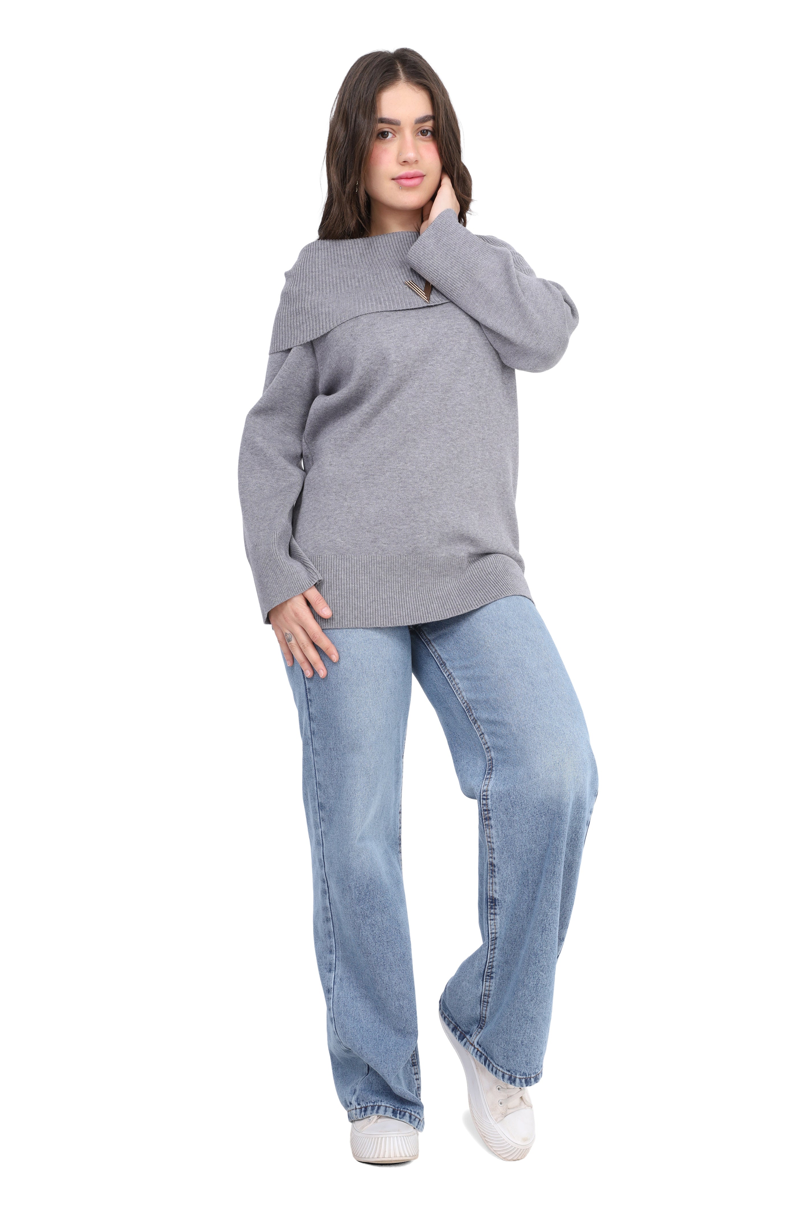 Collared V-Neck Cropped Knit Sweater w16252687/1