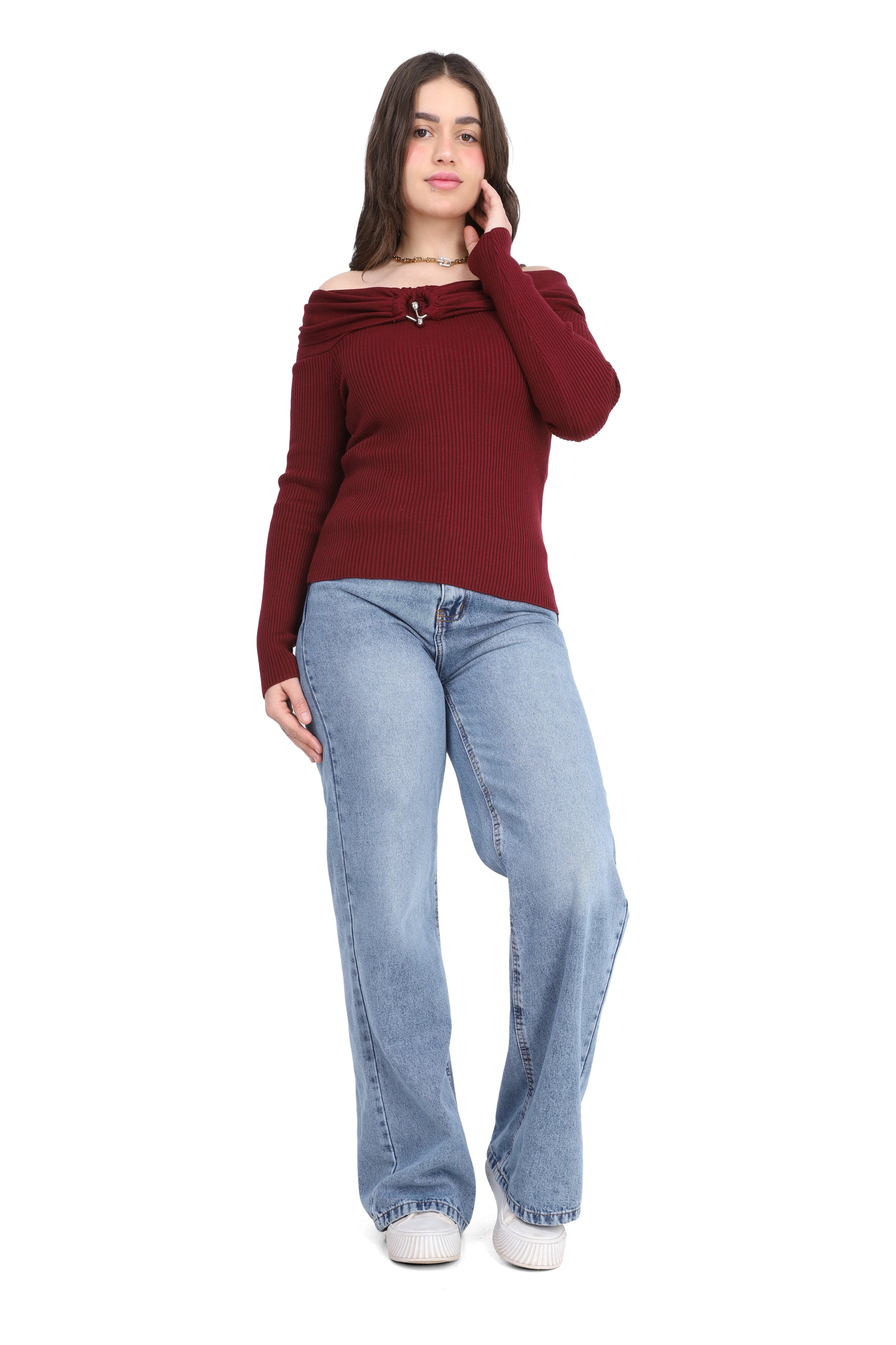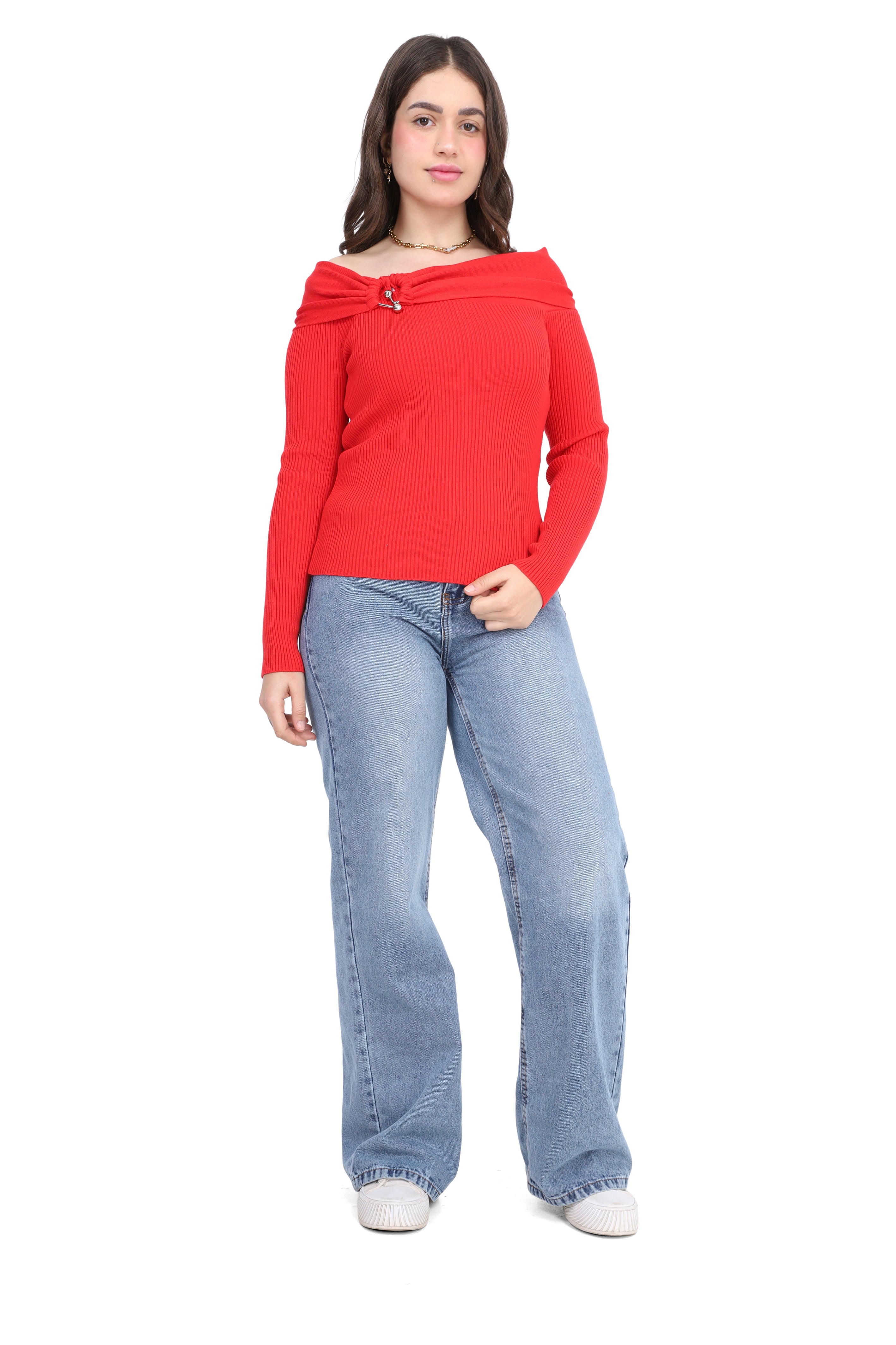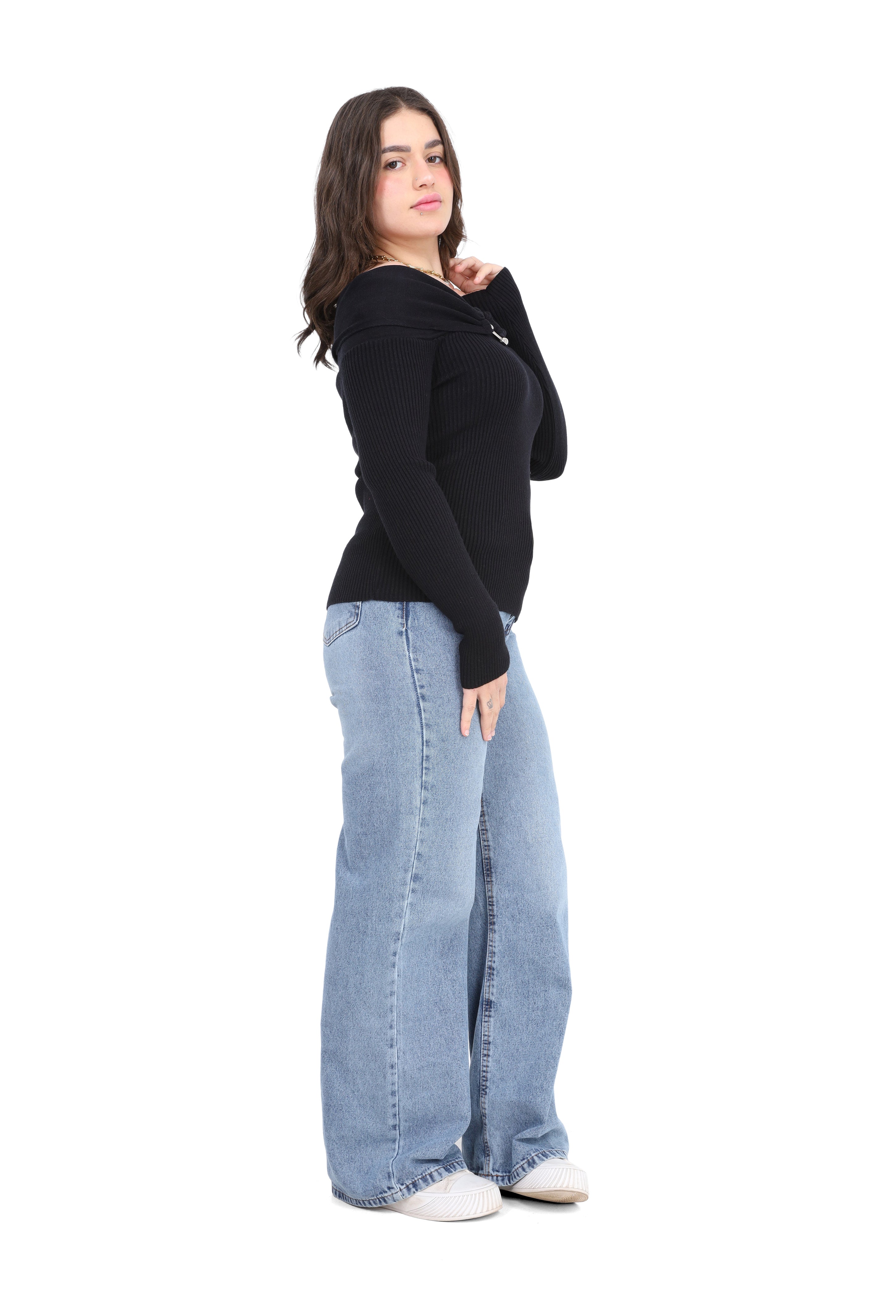 Contrast Trim Knit Blouse with Tie Sleeves w163273