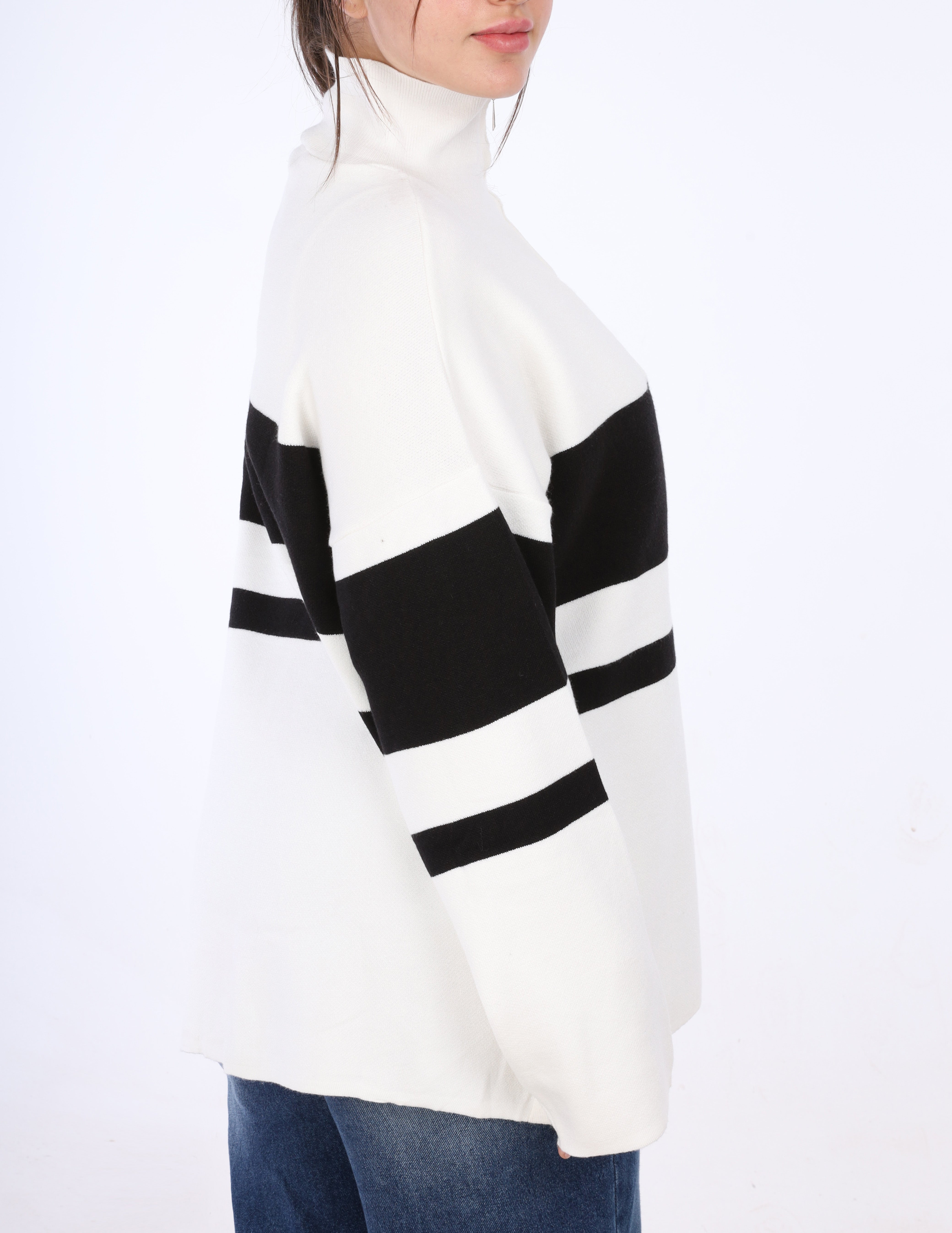 Soft striped knit pullover with a cozy feel and relaxed fit , perfect for everyday winter style.