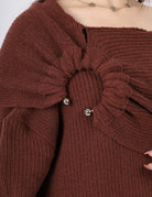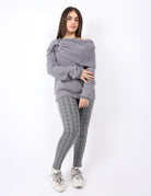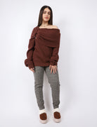 A chic off-shoulder knitted sweater featuring a soft, stretchy knit and a flattering relaxed fit