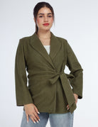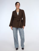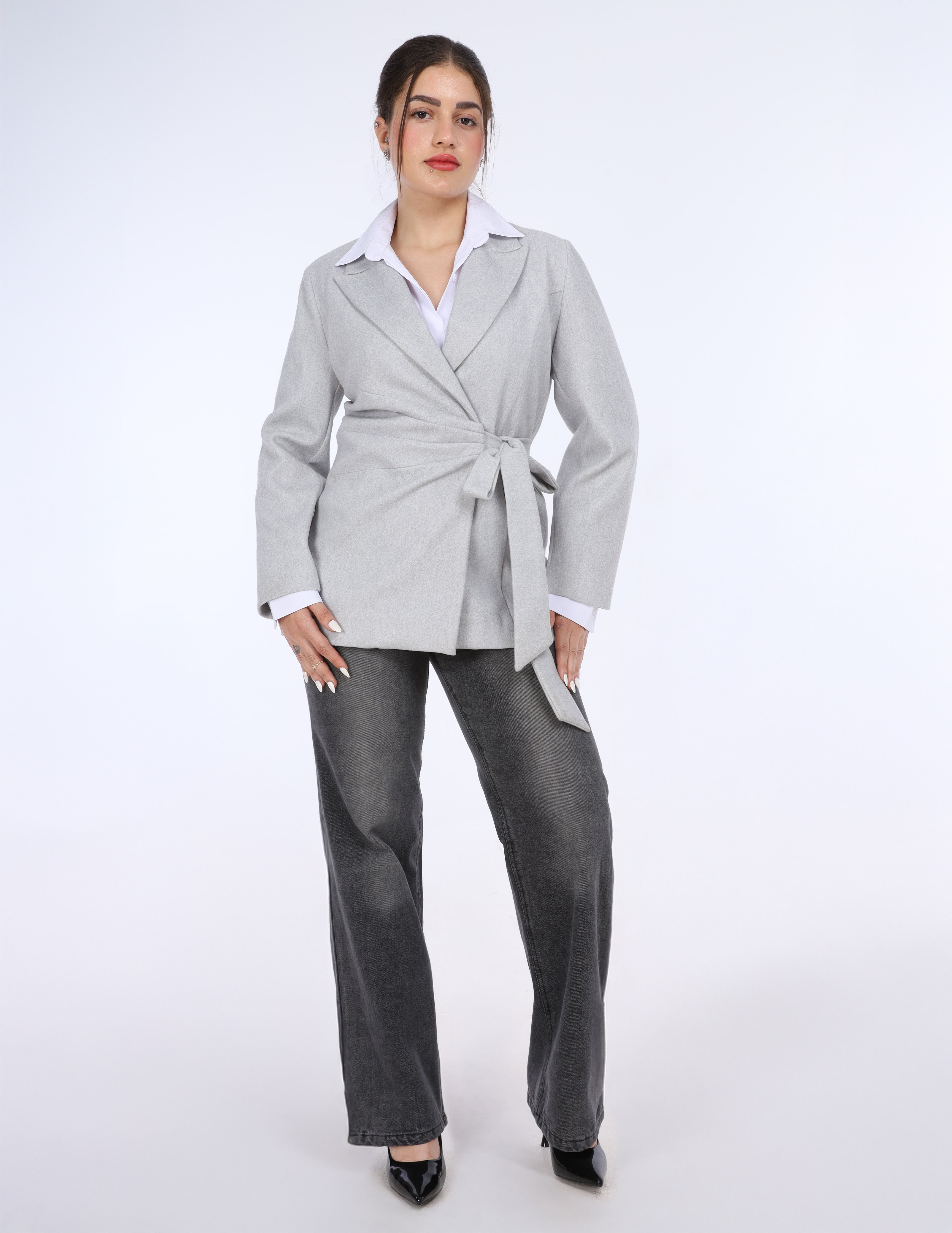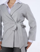 Wool wrap blazer with a tie-front design for a chic, elegant look.