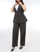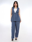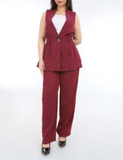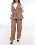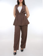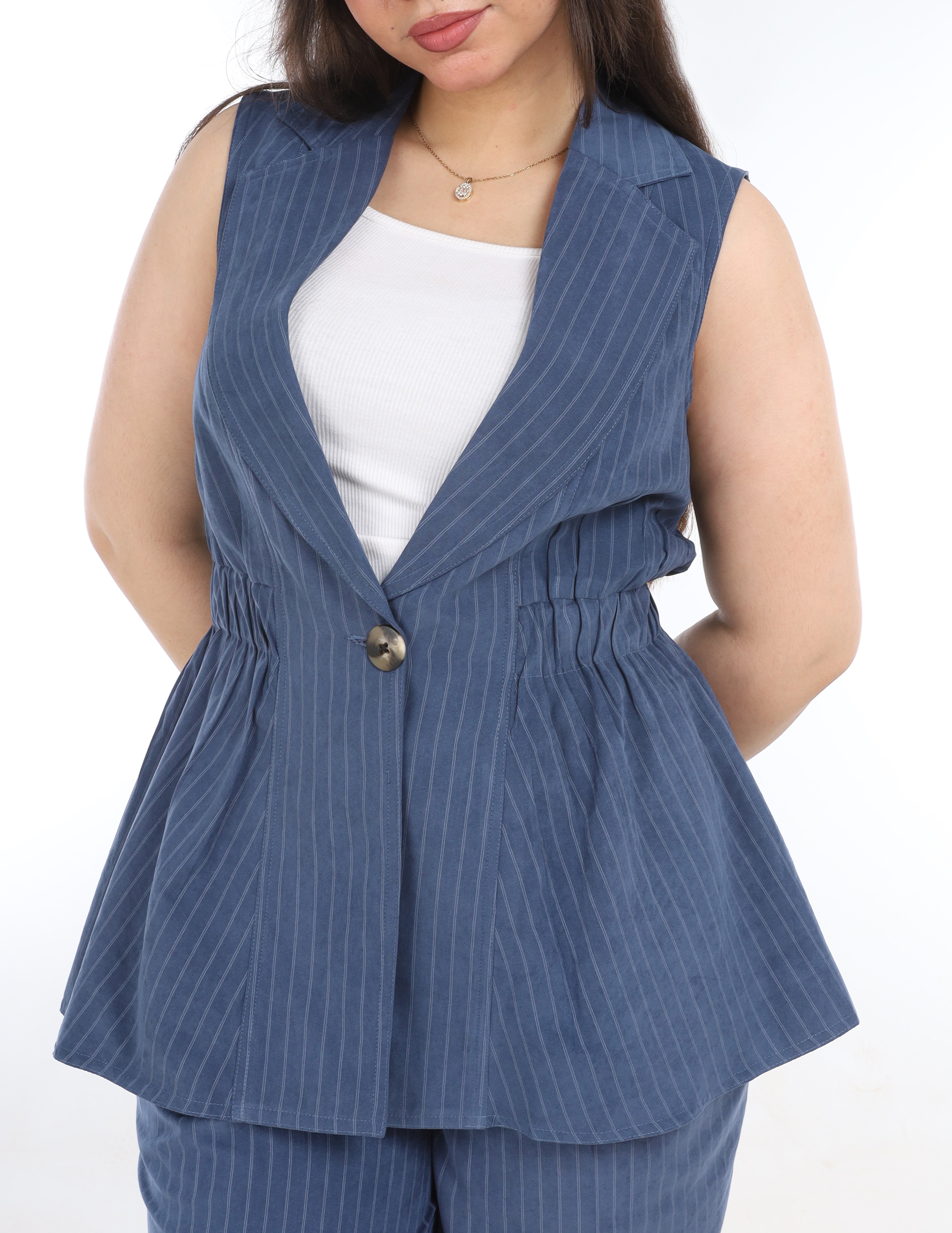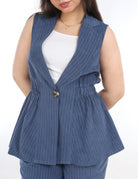 Elegant sleeveless peplum blazer with a tailored fit, defined waist, and versatile styling for work or chic everyday looks.
