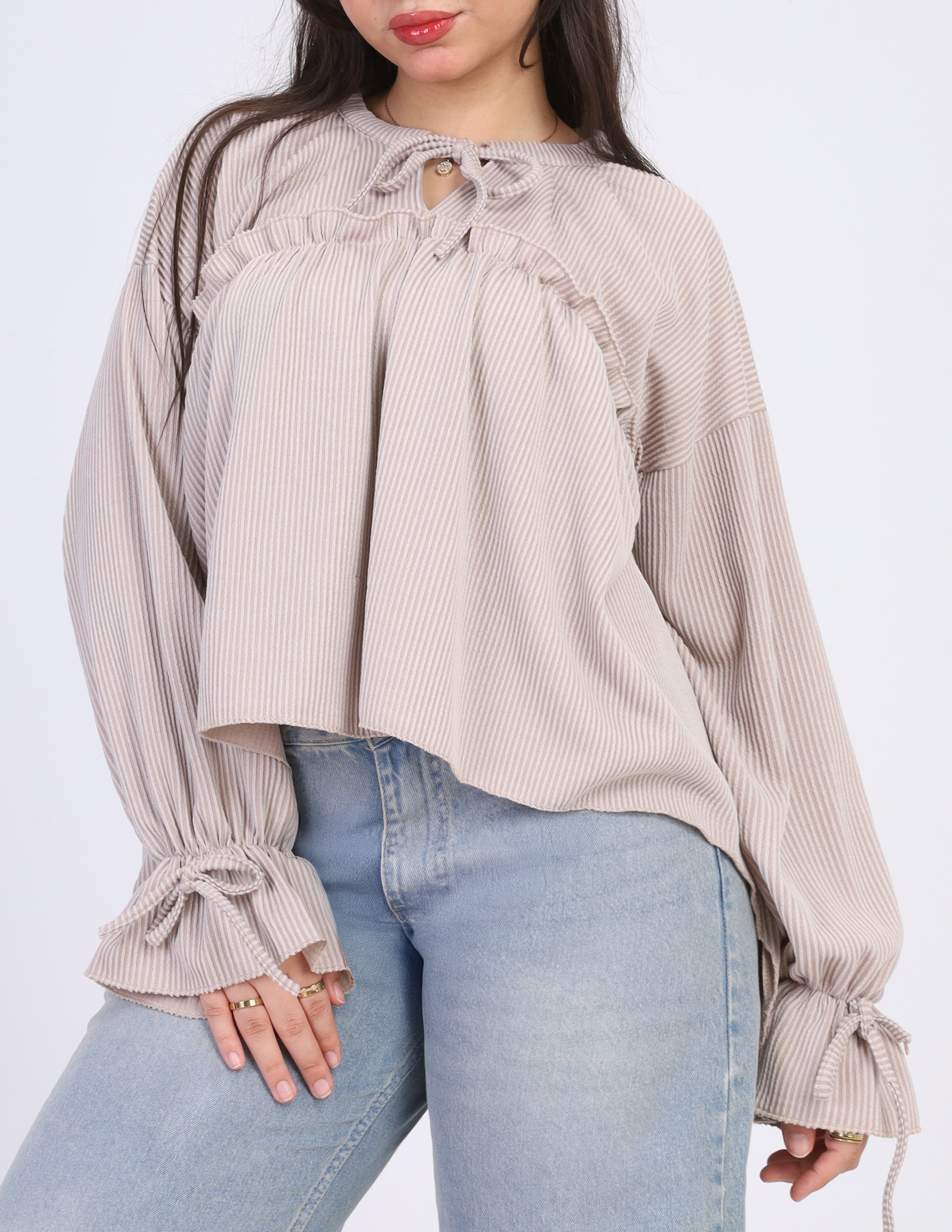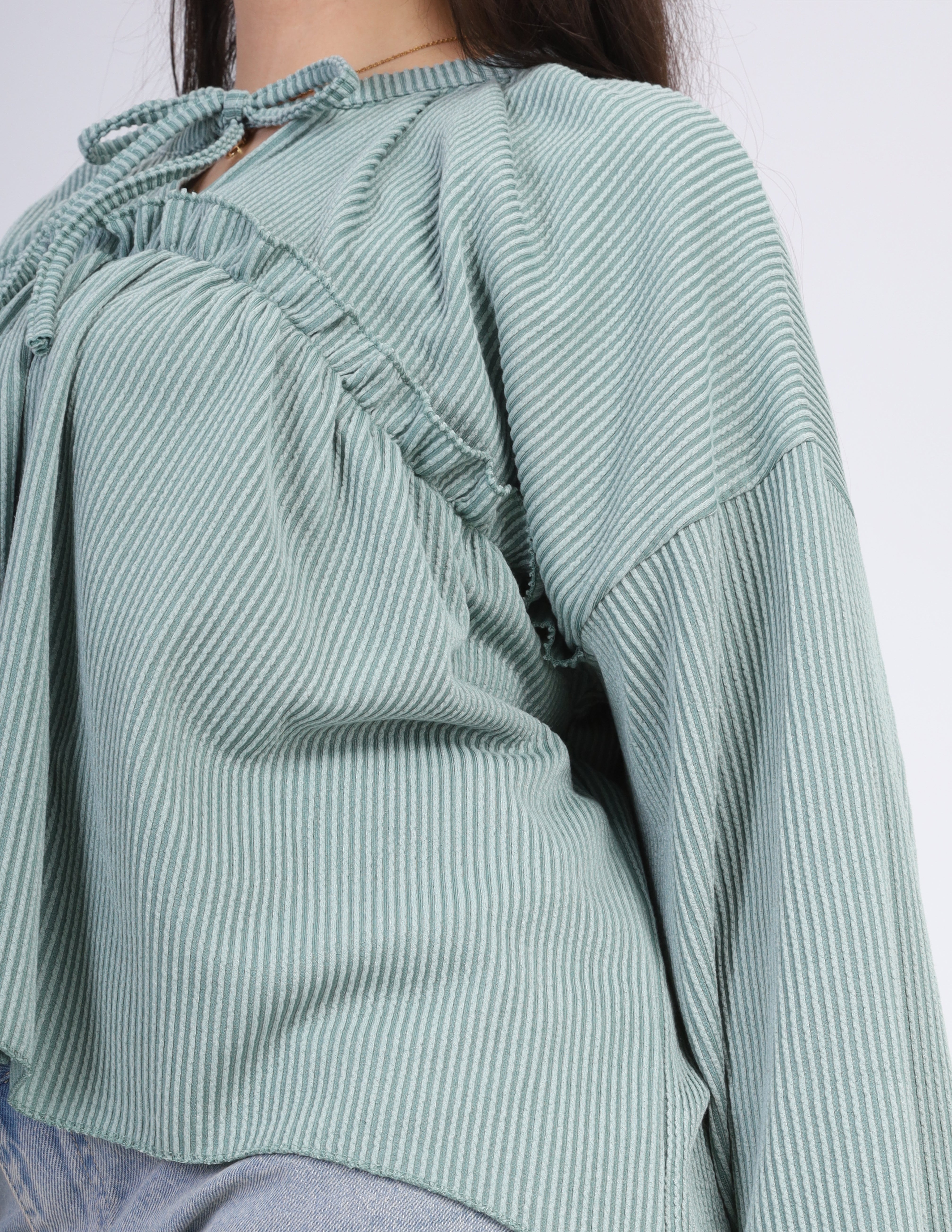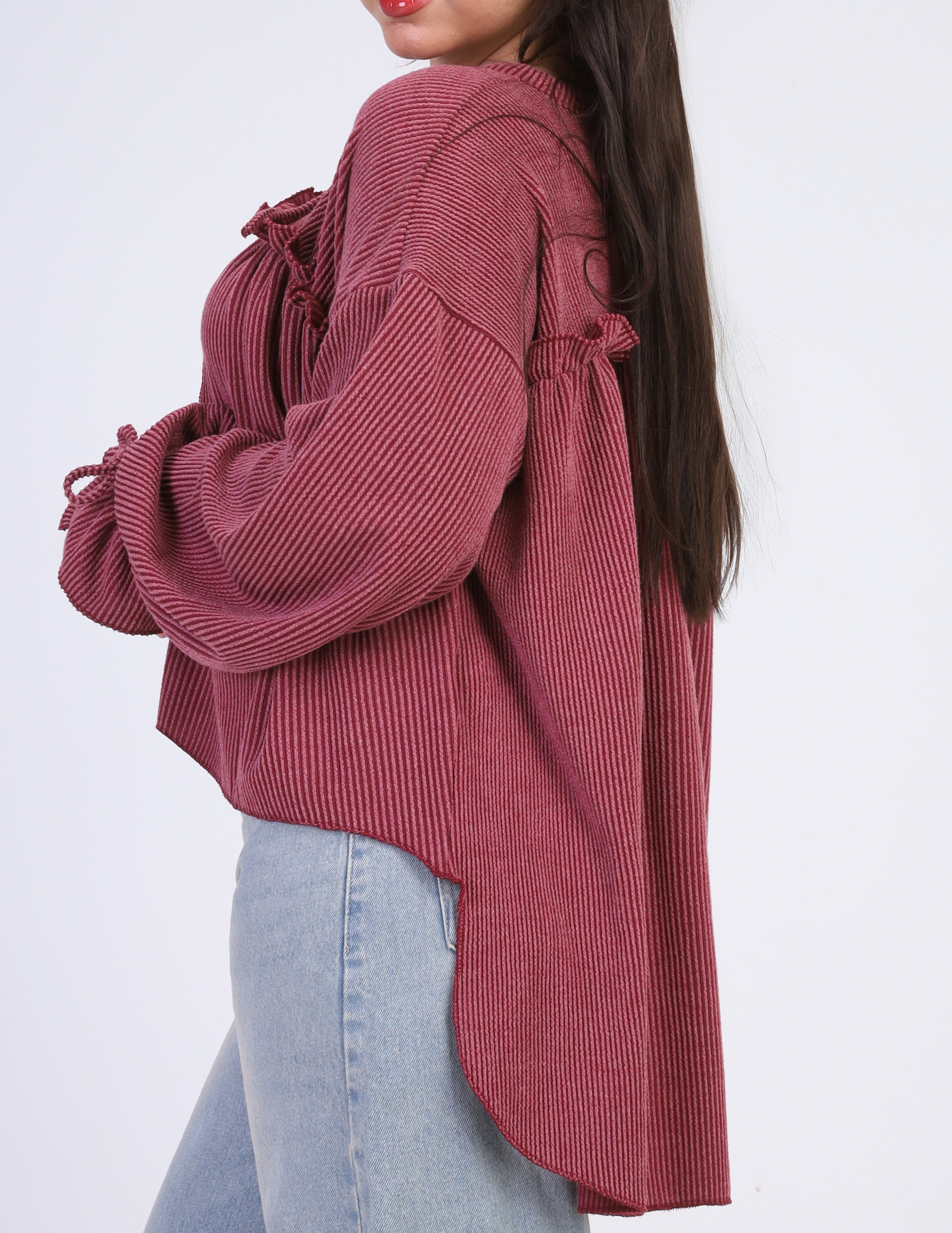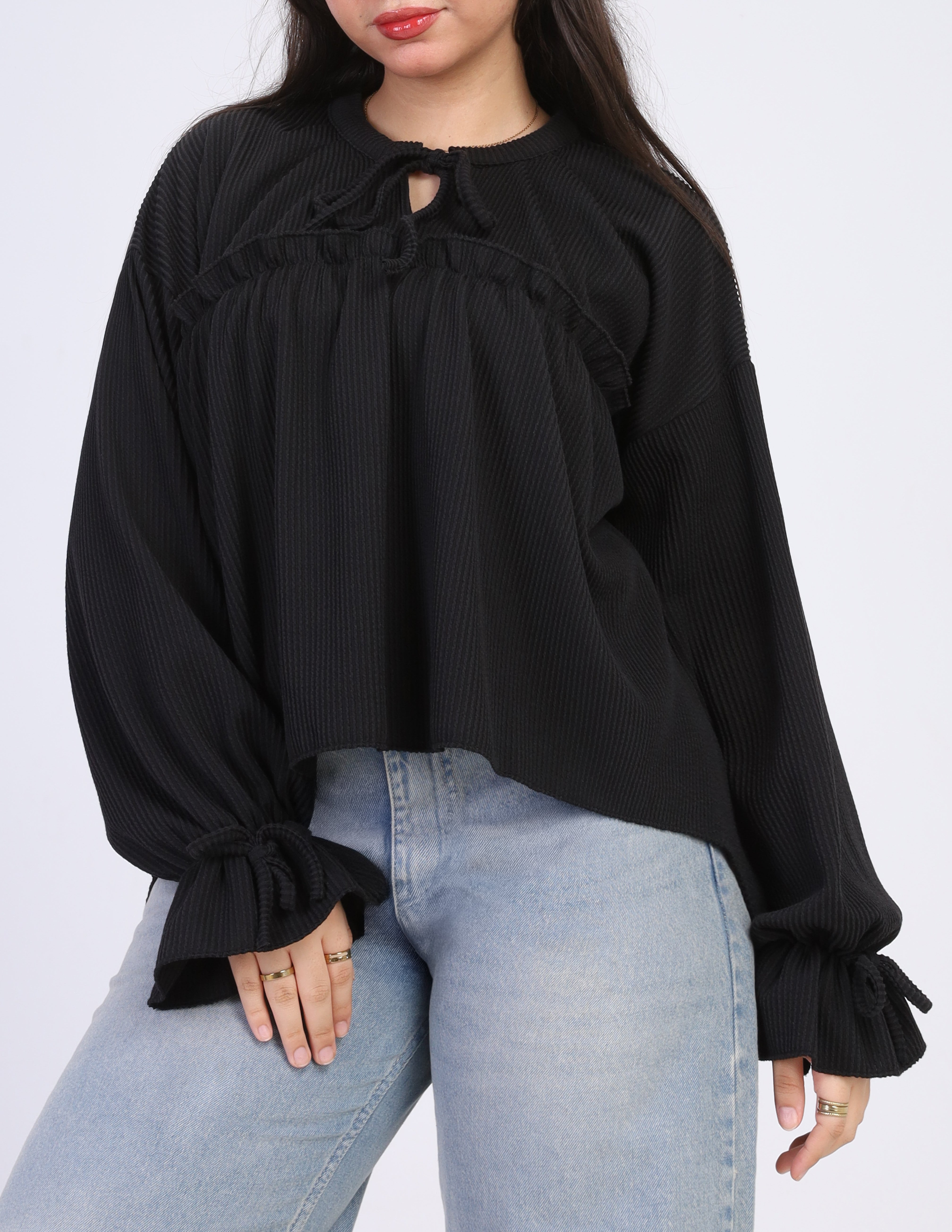 Ribbed Blouse with Ruffle Details w164794