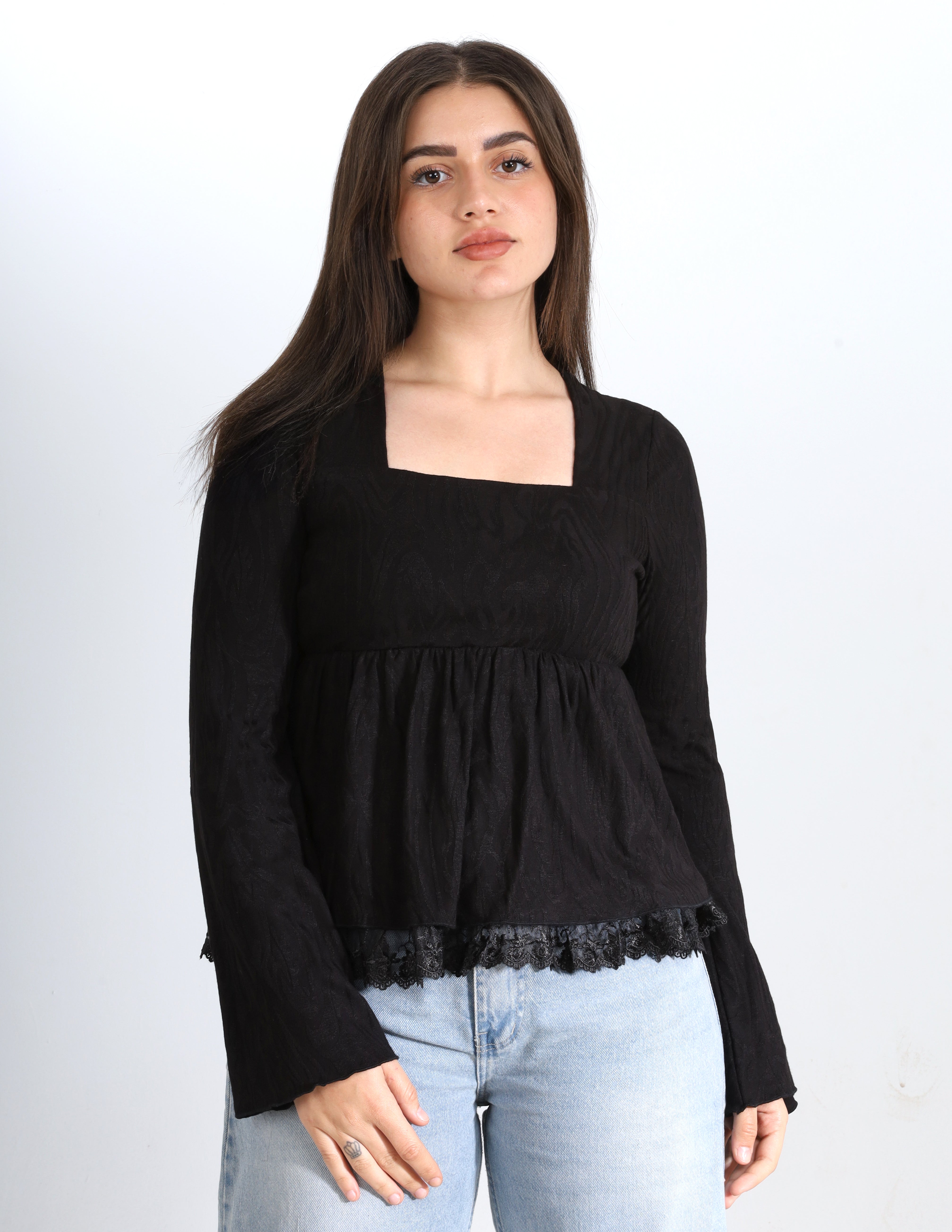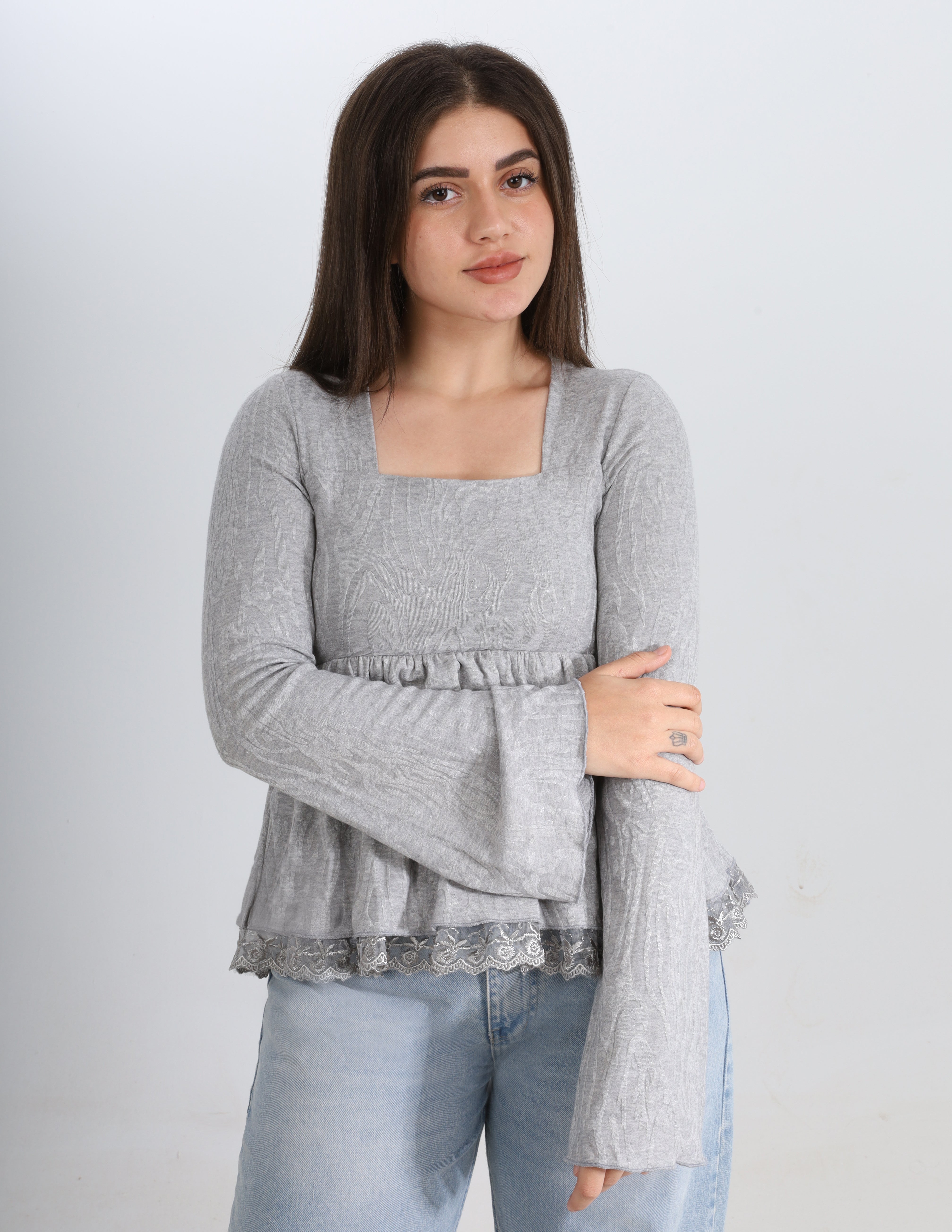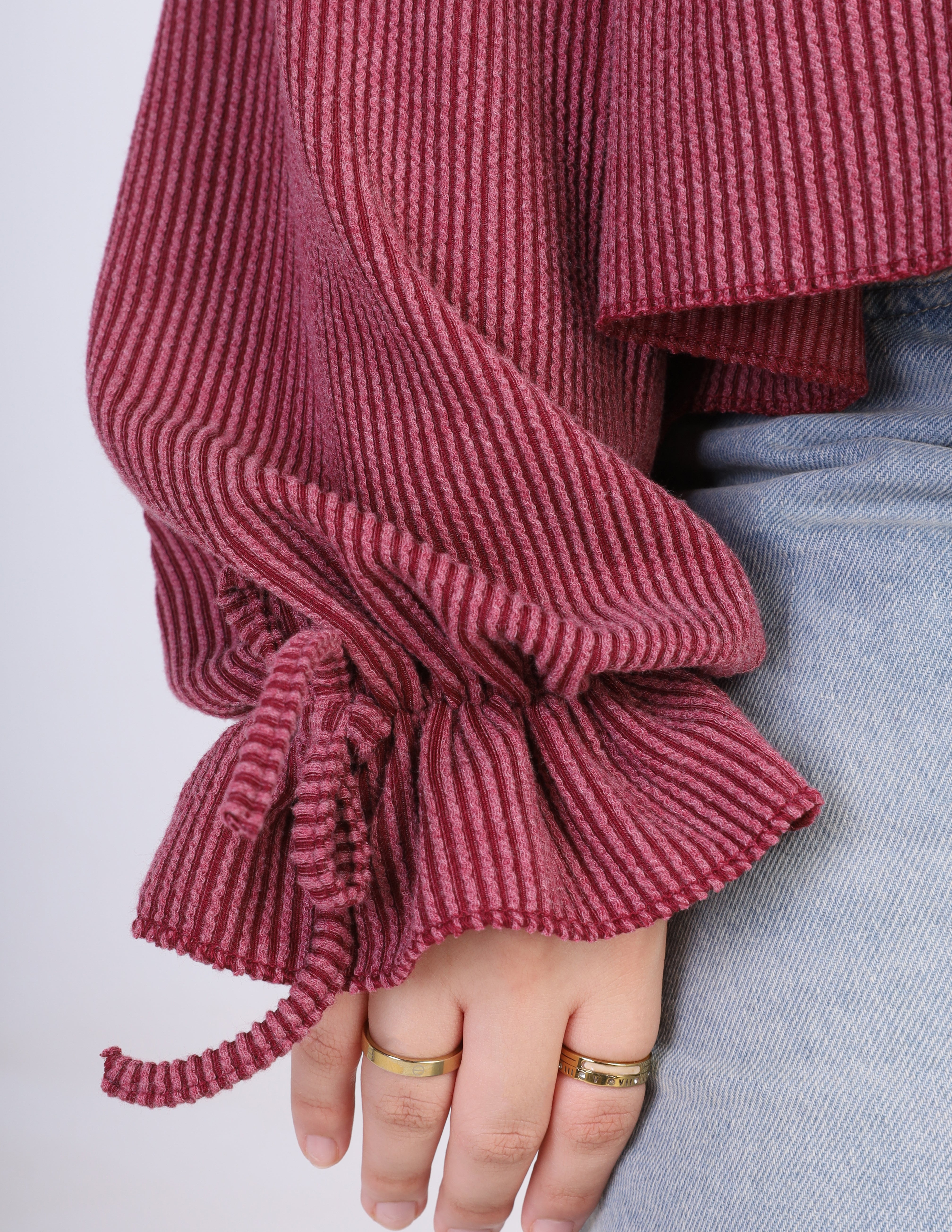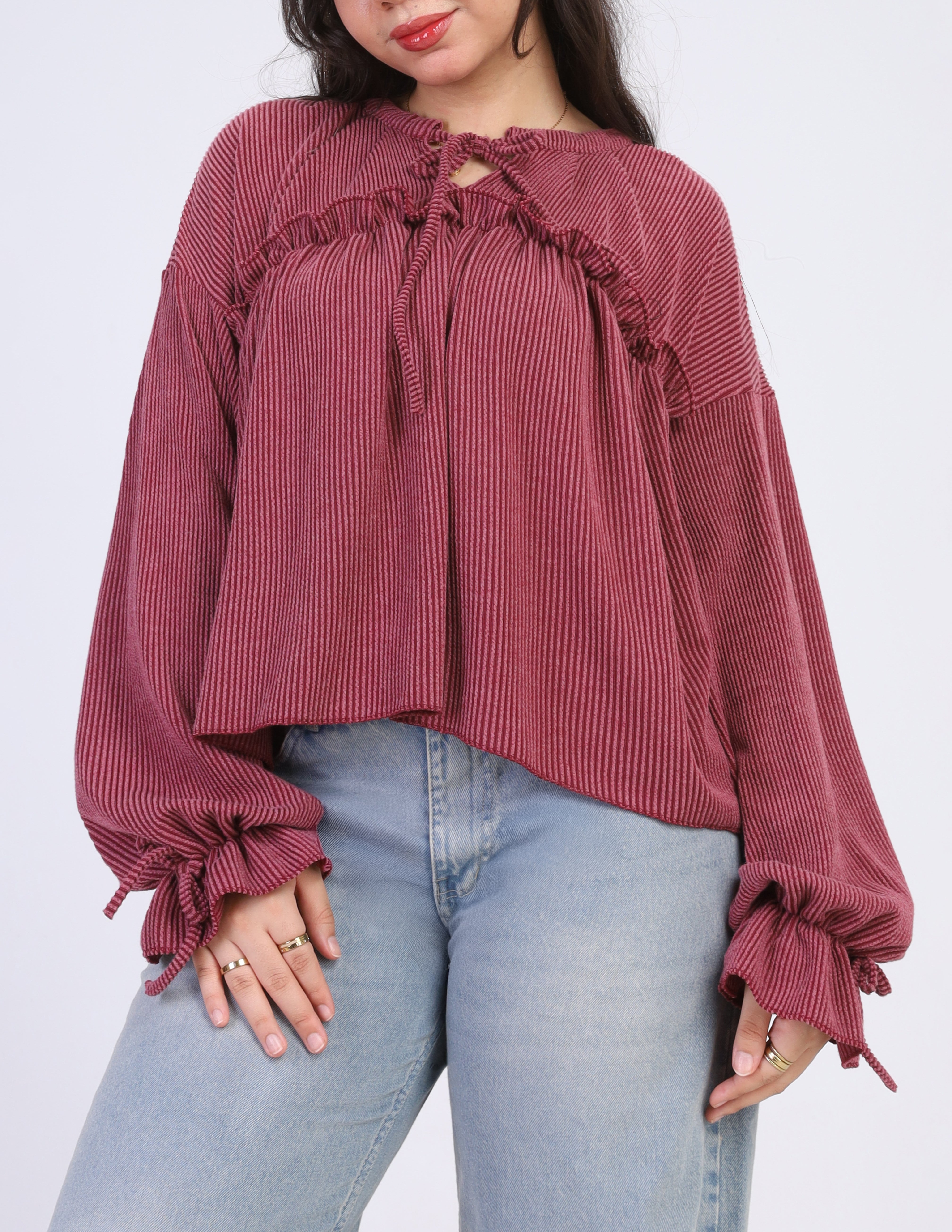 Ribbed Blouse with Ruffle Details w164794