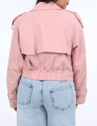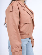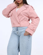 A cropped double-breasted jacket in an elegant shade, featuring a classic lapel collar and a tailored fit that highlights the waist. Perfect for chic casual and smart everyday looks.