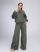 Comfy two-piece set featuring a soft sweatshirt and matching wide-leg pants