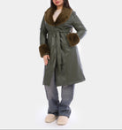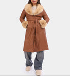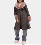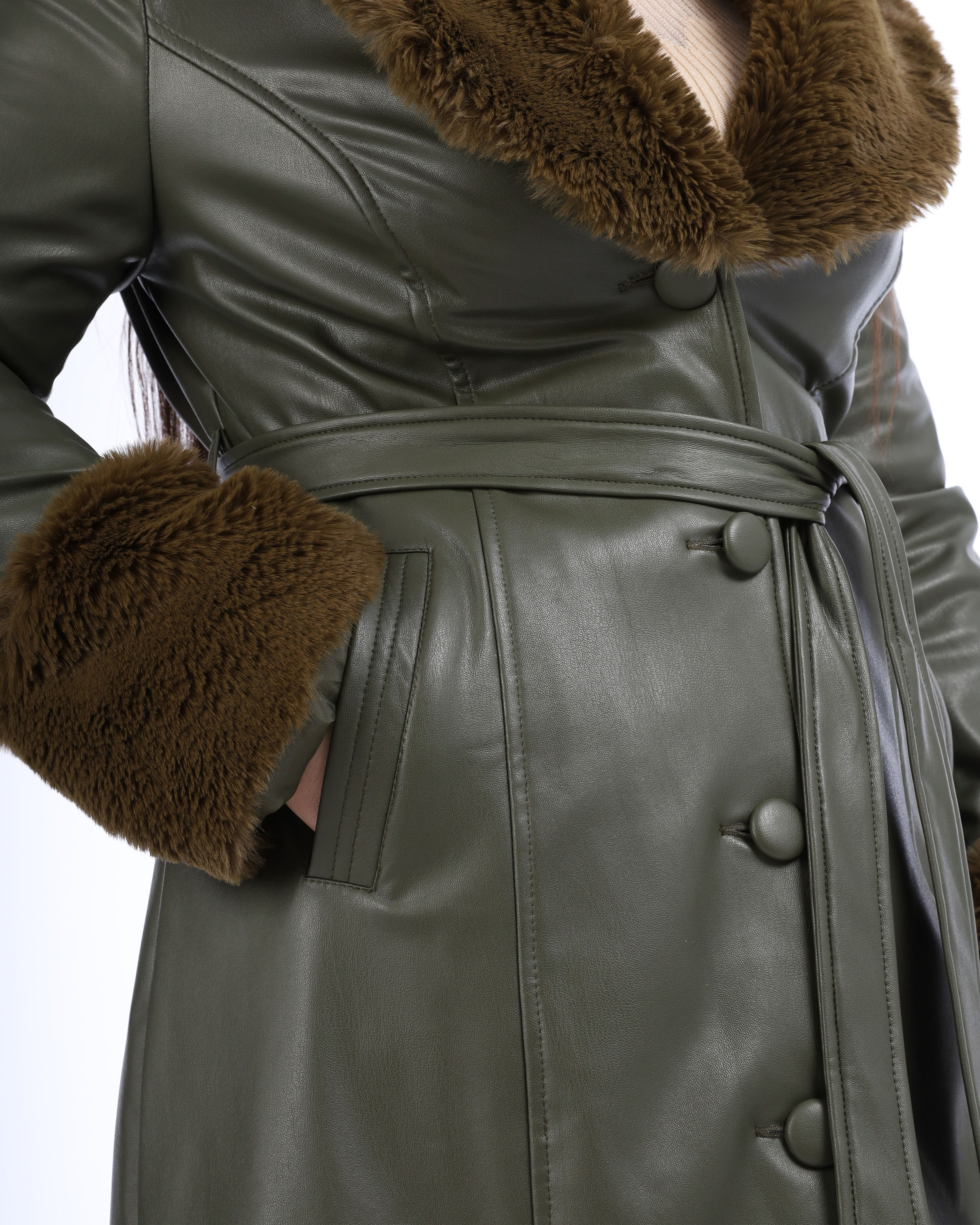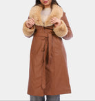 A long Leather coat with fur collar and trim for an elegant and extra warmth.