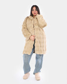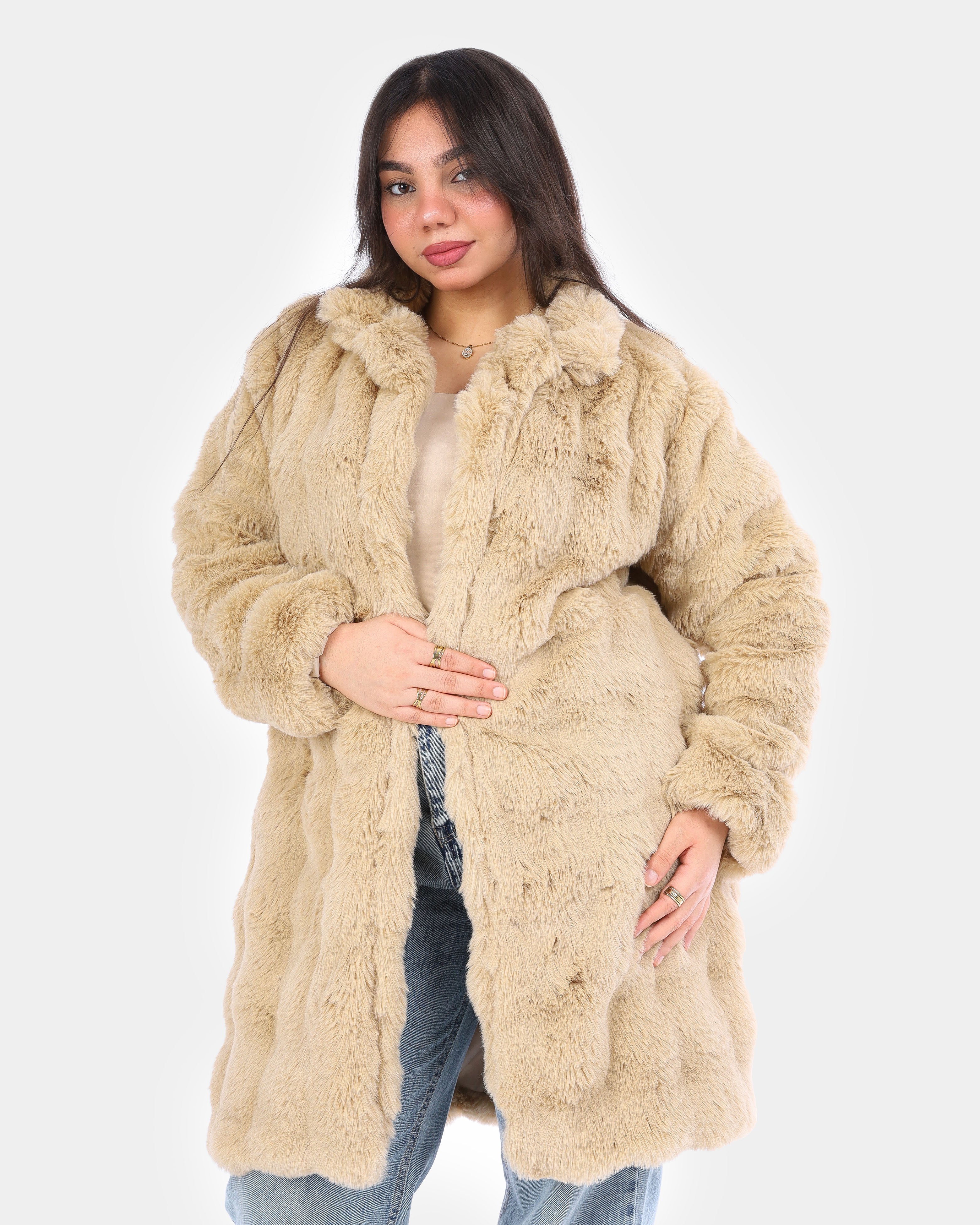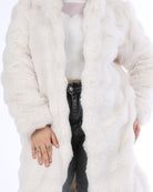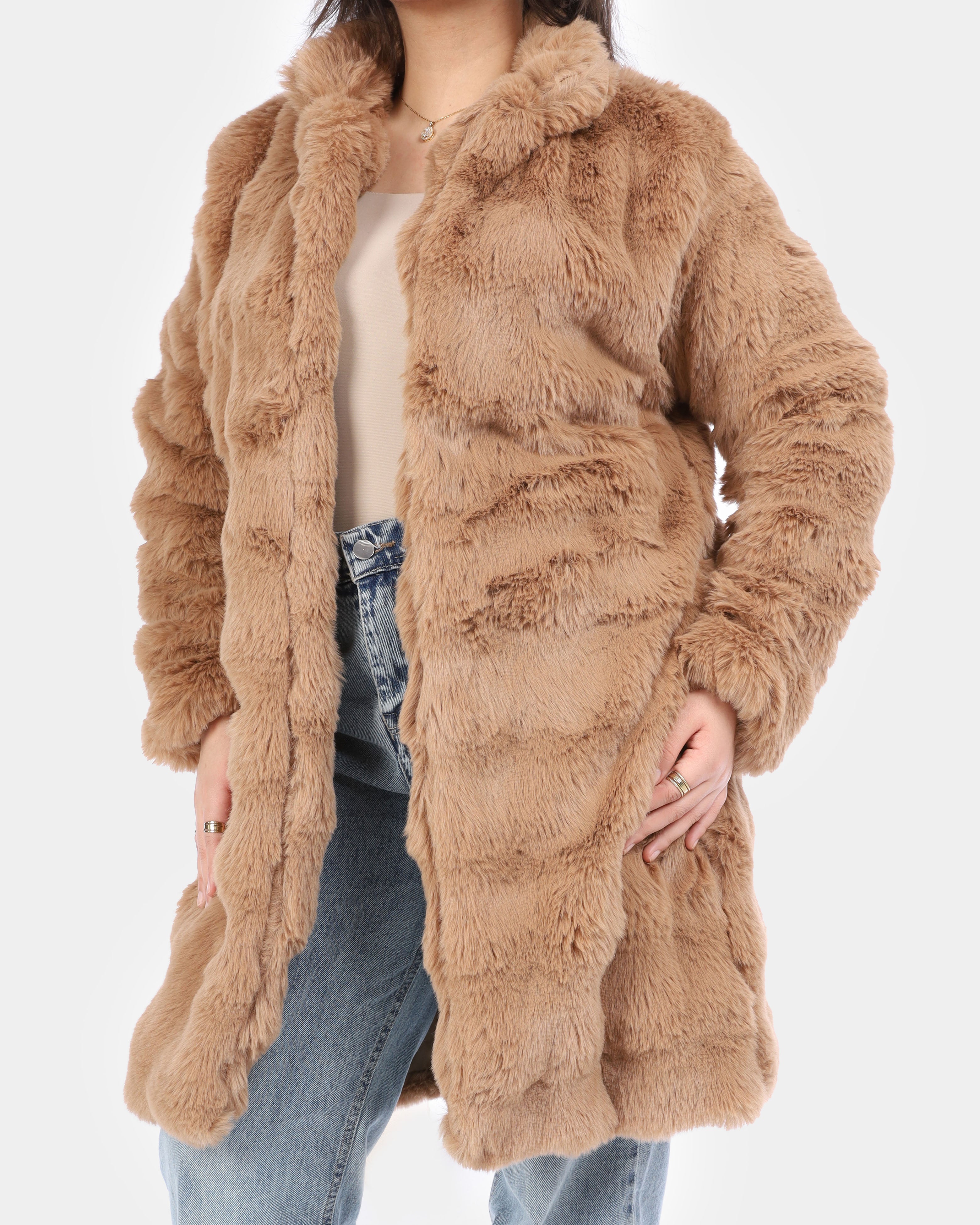 Soft long faux fur jacket features a beautifully textured giving it a chic, winter-ready look.