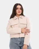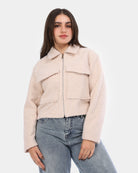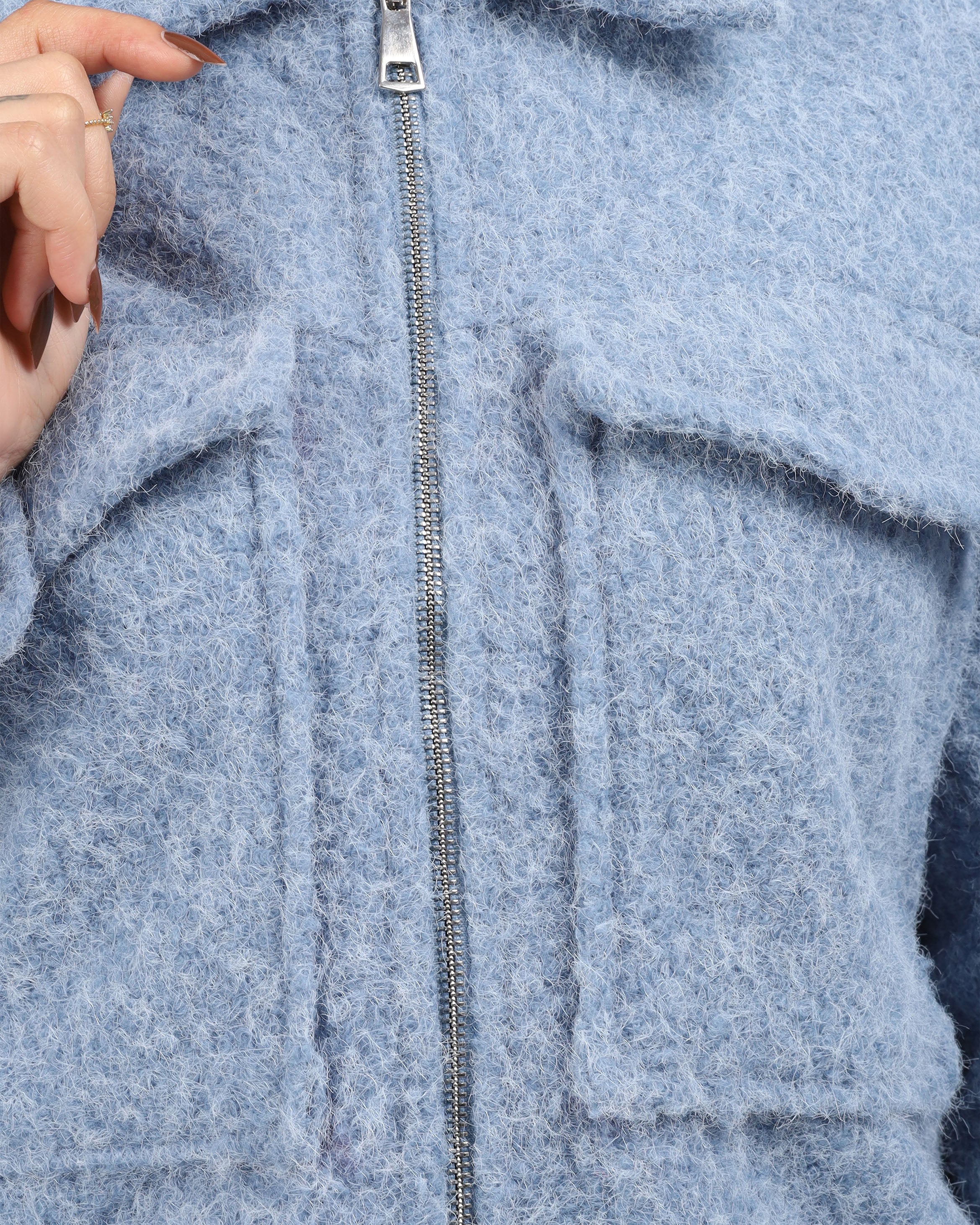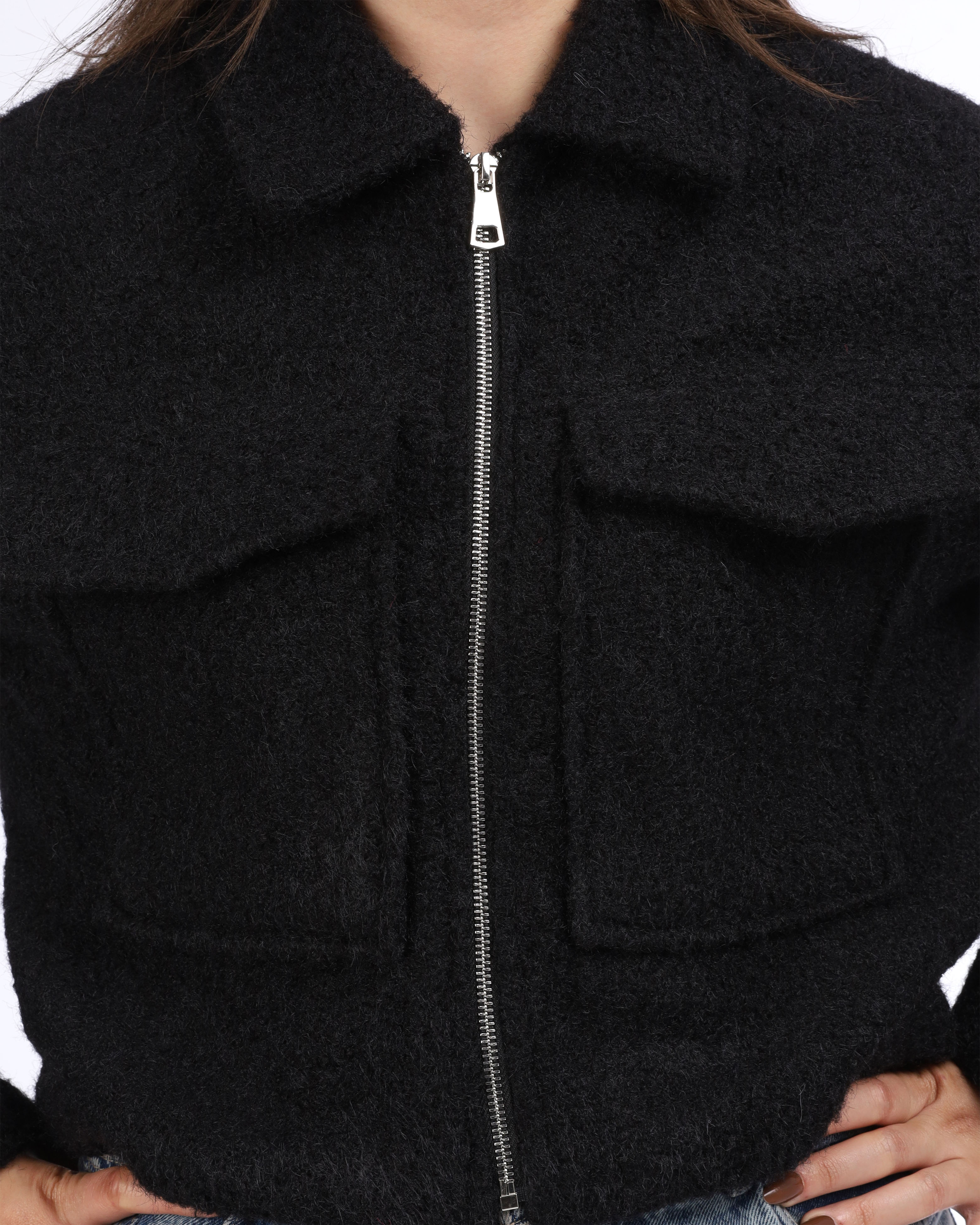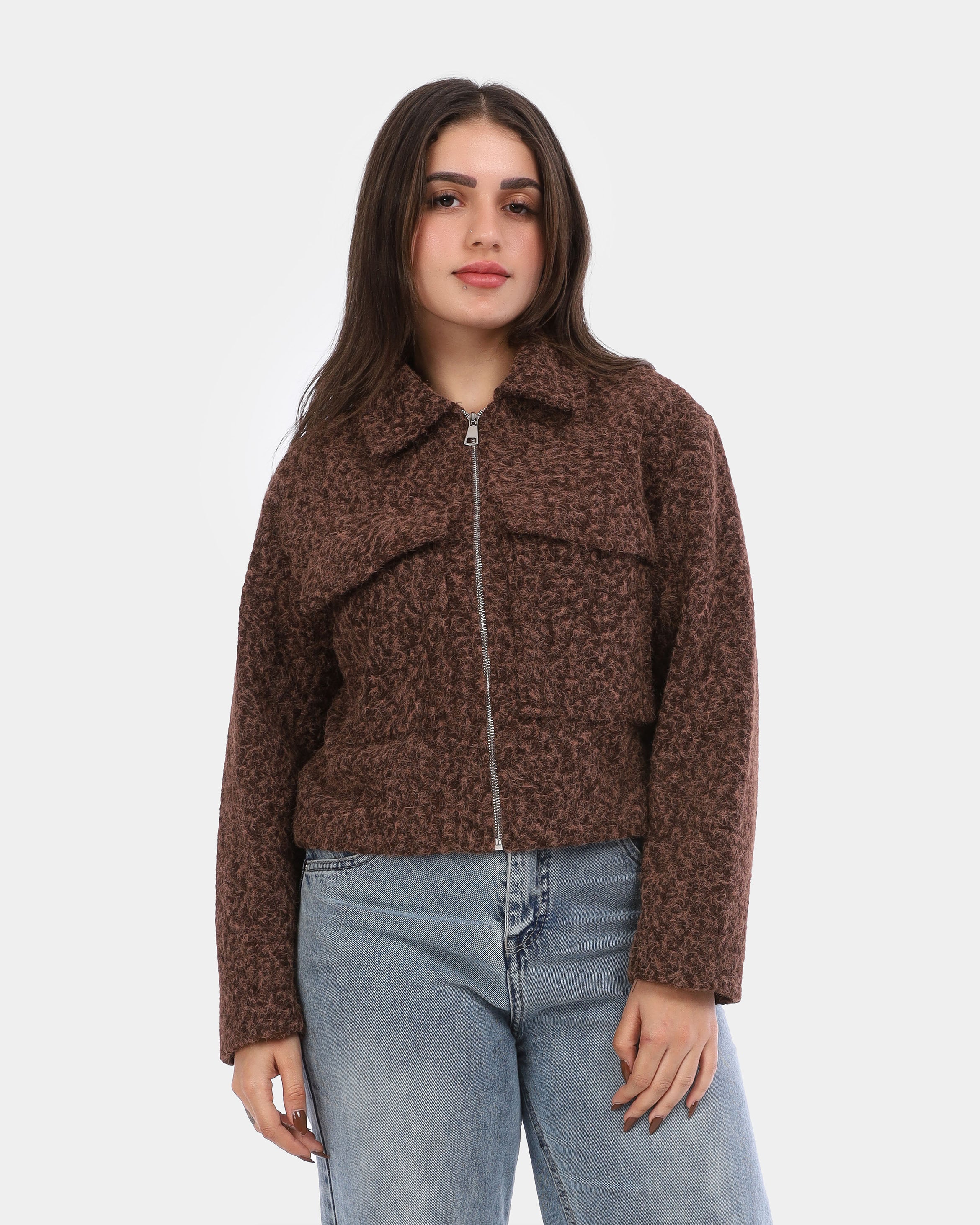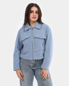 A cropped textured wool jacket featuring soft fleece-like fibers for a warm and stylish look.
