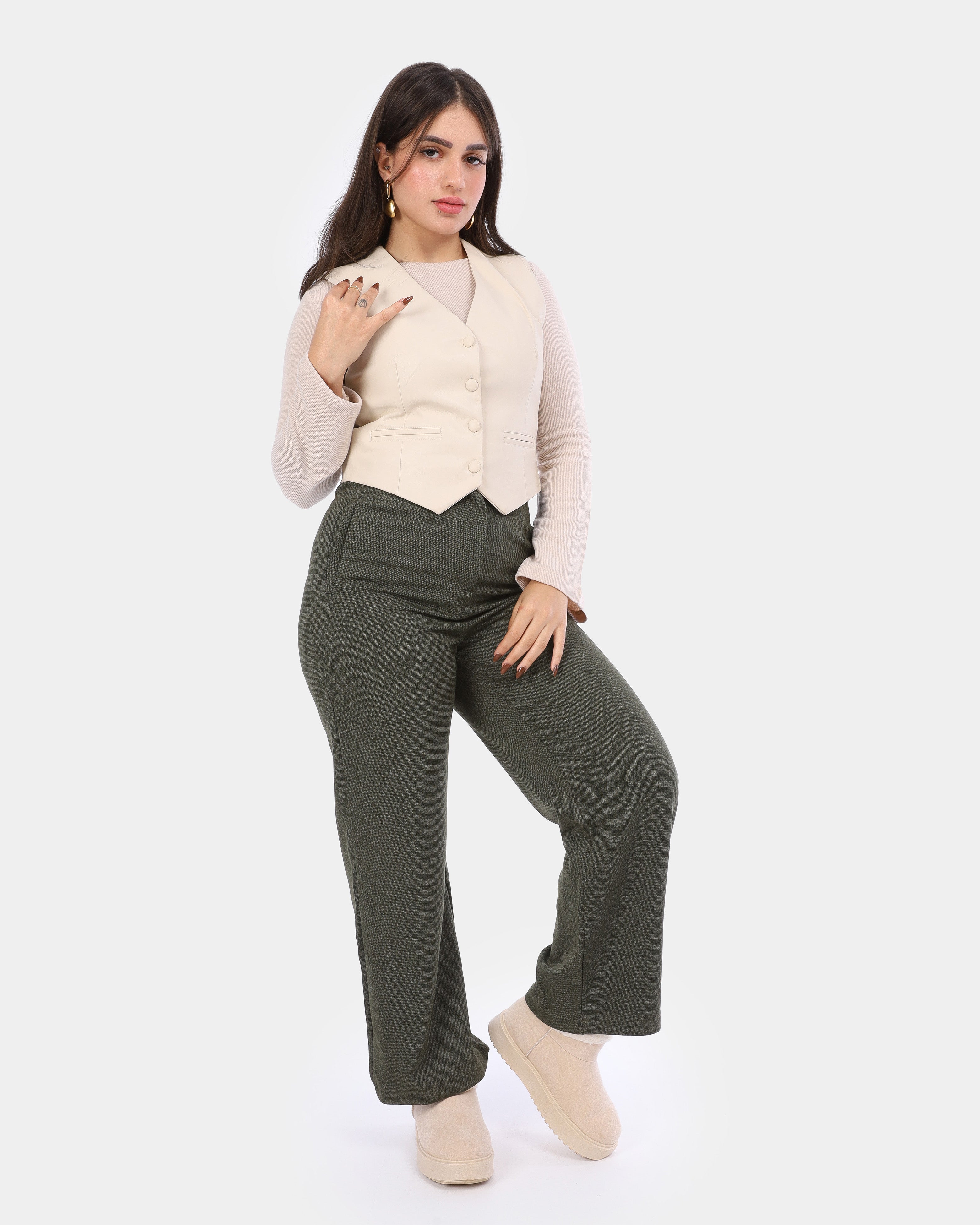 Leather Wrap Vest & Wide-Leg Pants Suit w162641