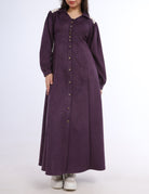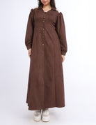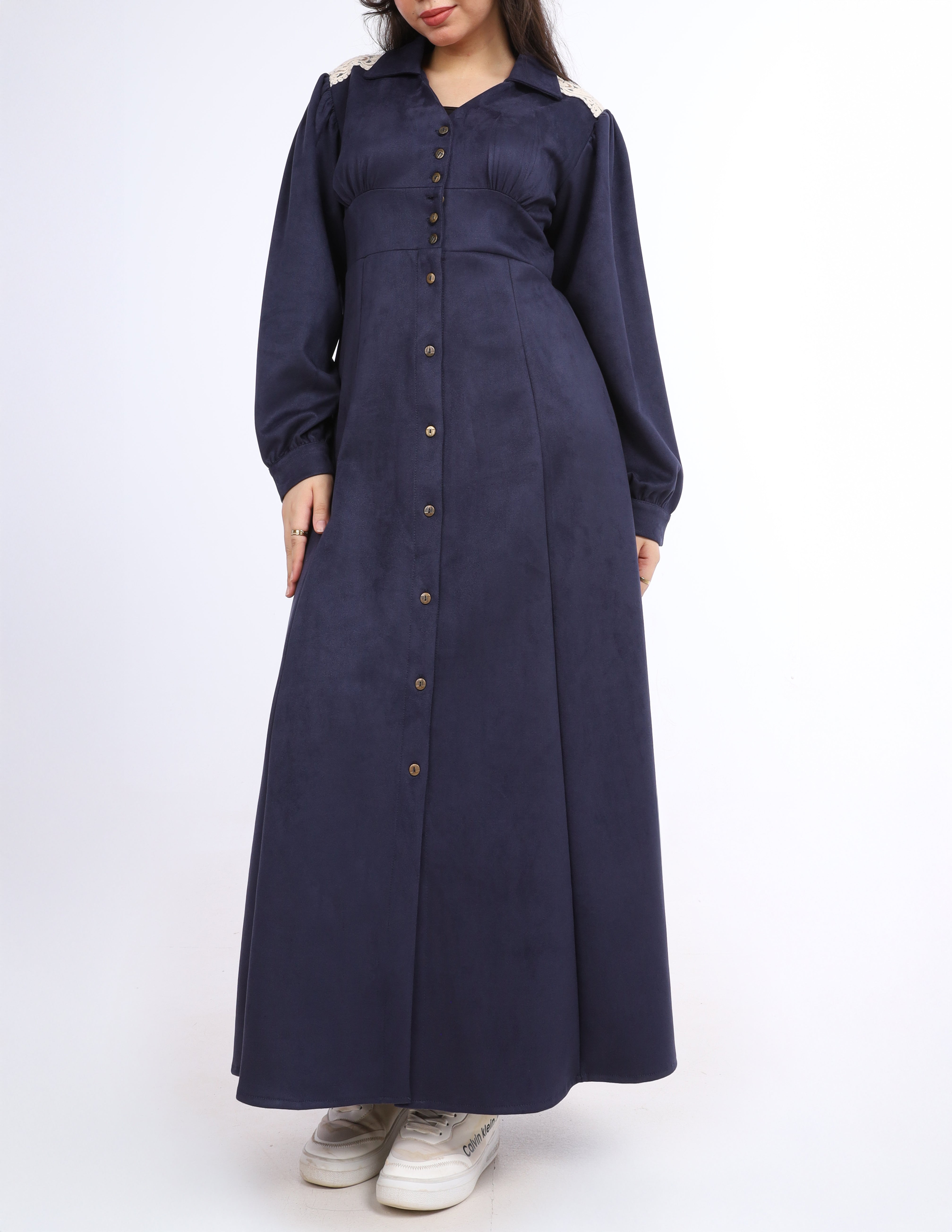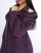 Maxi suede dress with a button-down front, offering a chic and elegant look