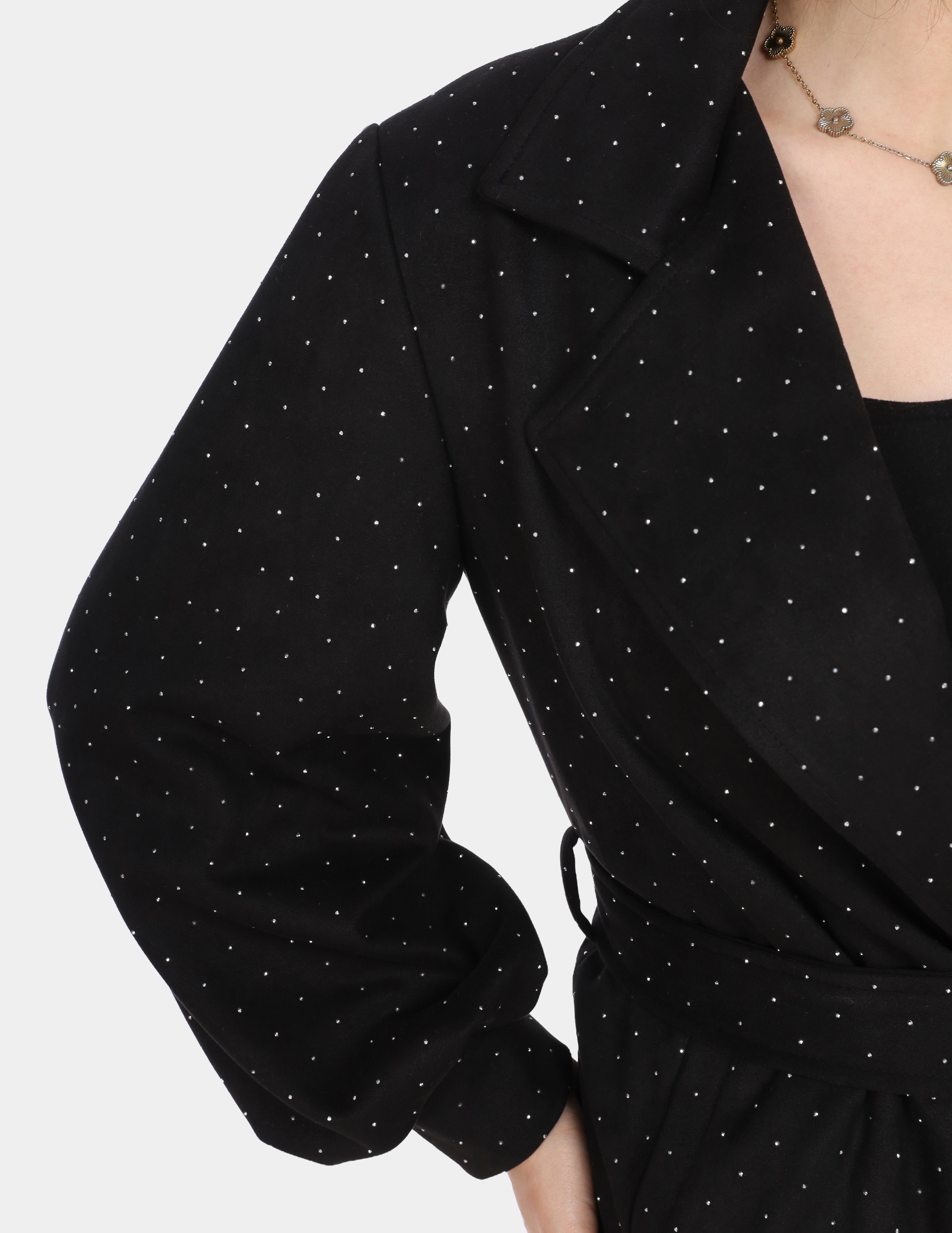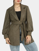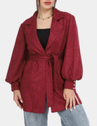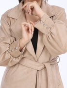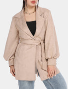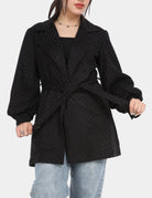 Elegant structured trench coat features a classic design with a defined silhouette and an adjustable belt for a flattering fit.