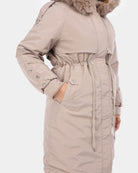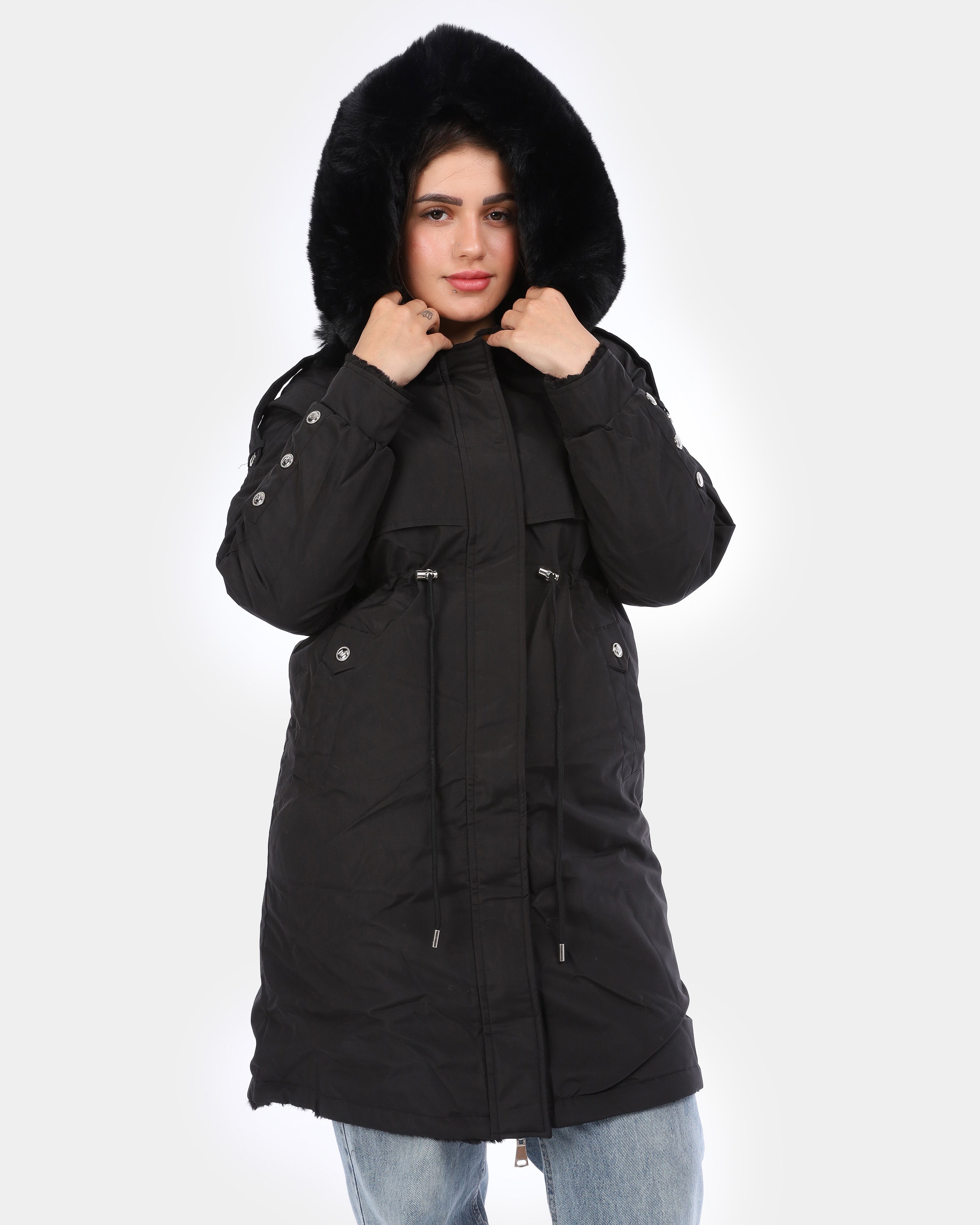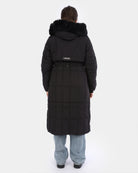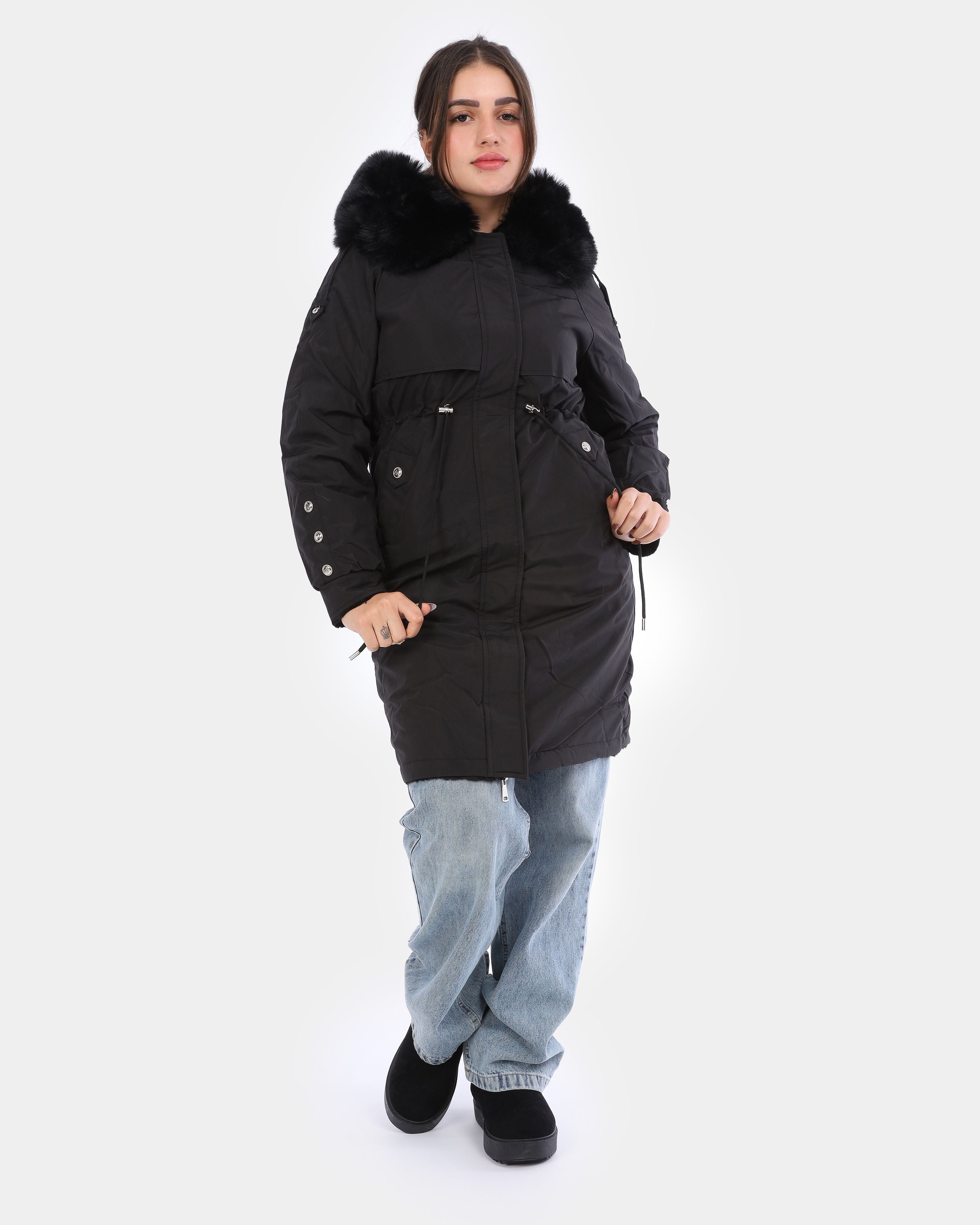 Stay warm in style with this long puffer jacket featuring a plush faux fur collar.